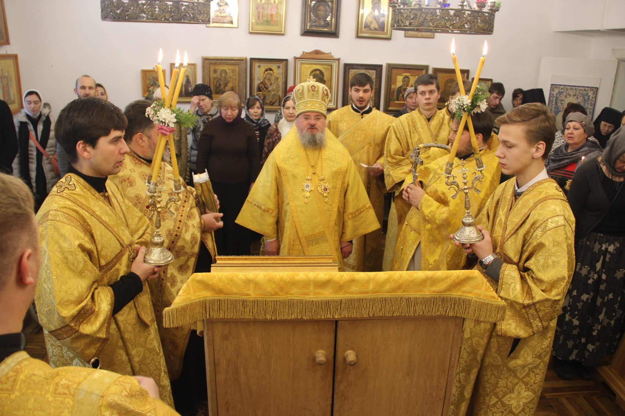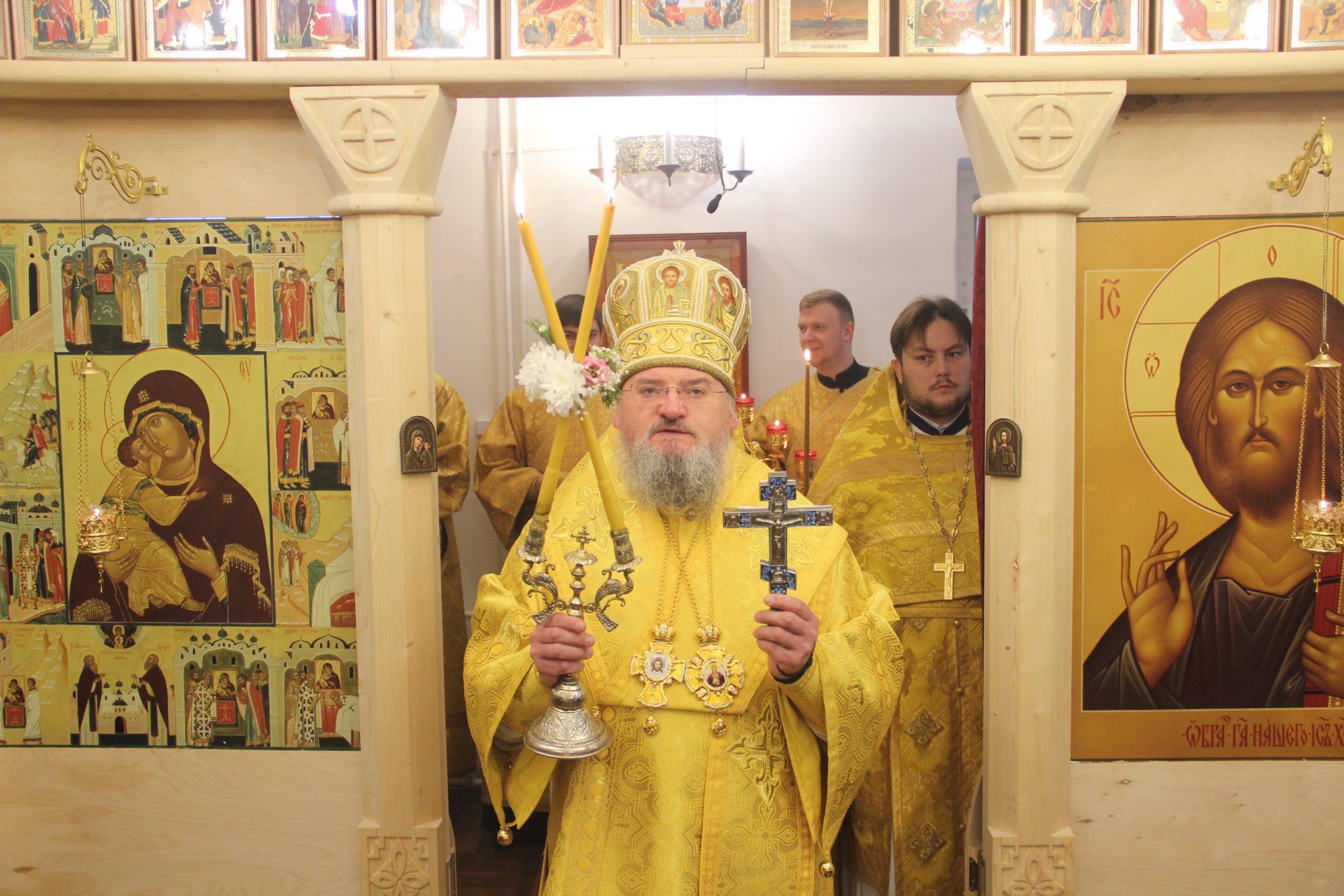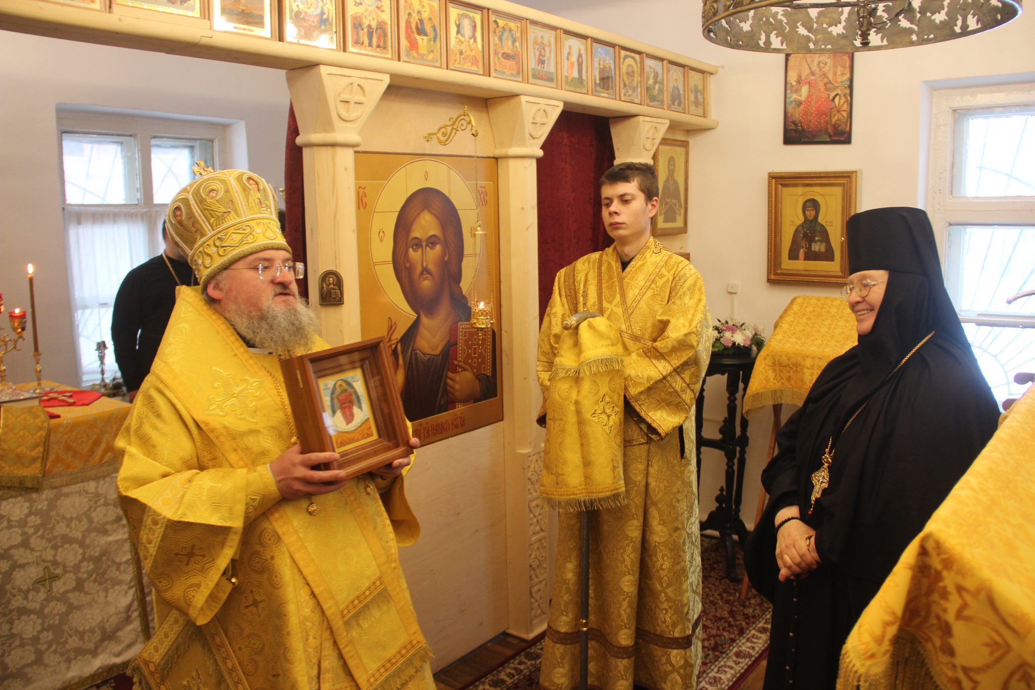 Его Преосвященству сослужили: протоиерей Антоний Хатунцев, диакон Евгений Ковригин, диакон Евгений Васильев, клирики обители.