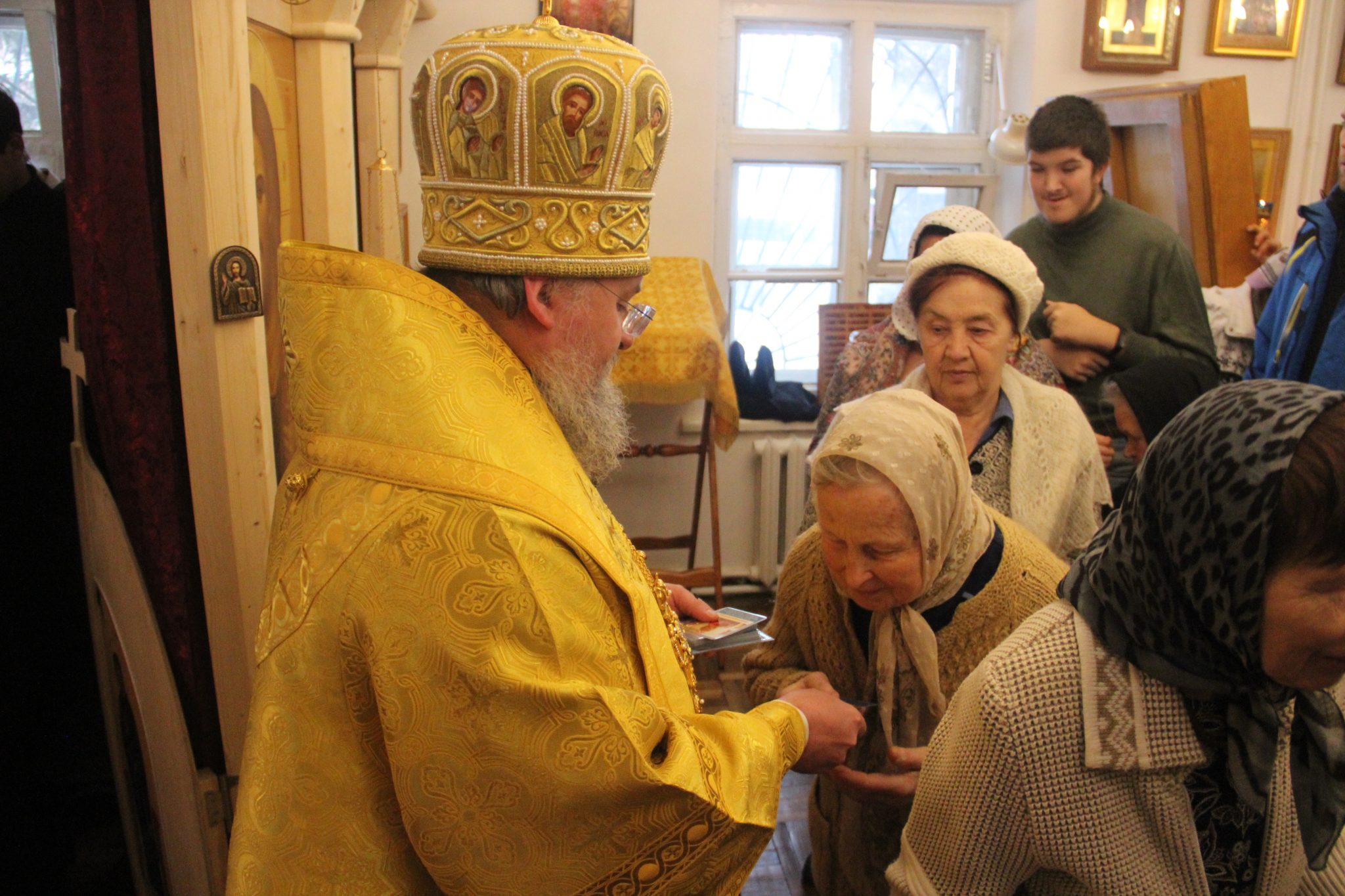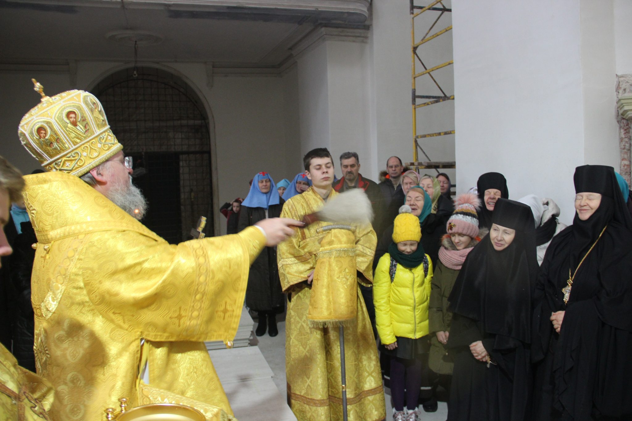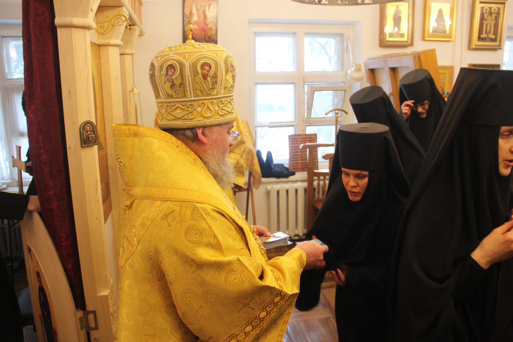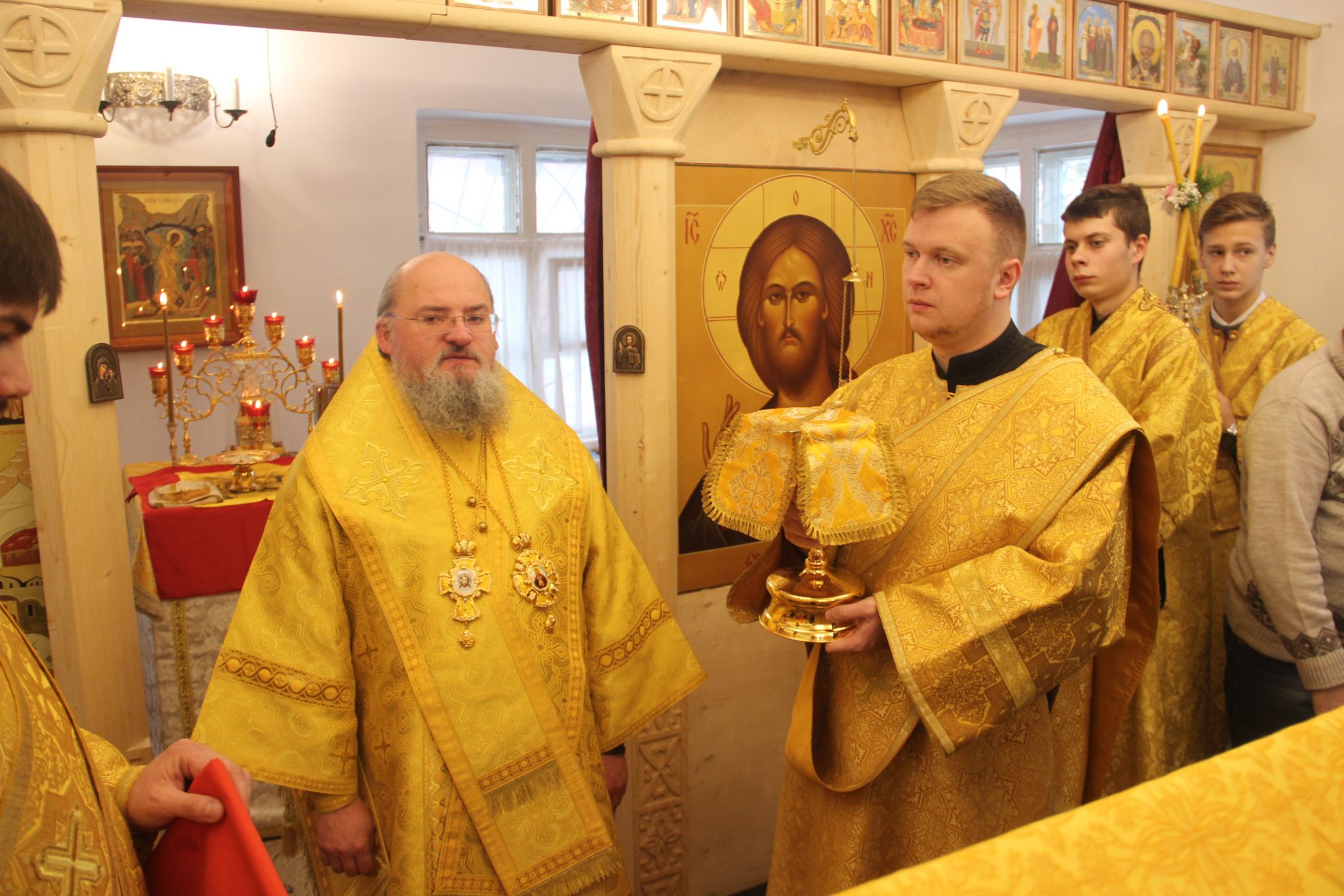 Его Преосвященству сослужили: протоиерей Антоний Хатунцев, диакон Евгений Ковригин, диакон Евгений Васильев, клирики обители.