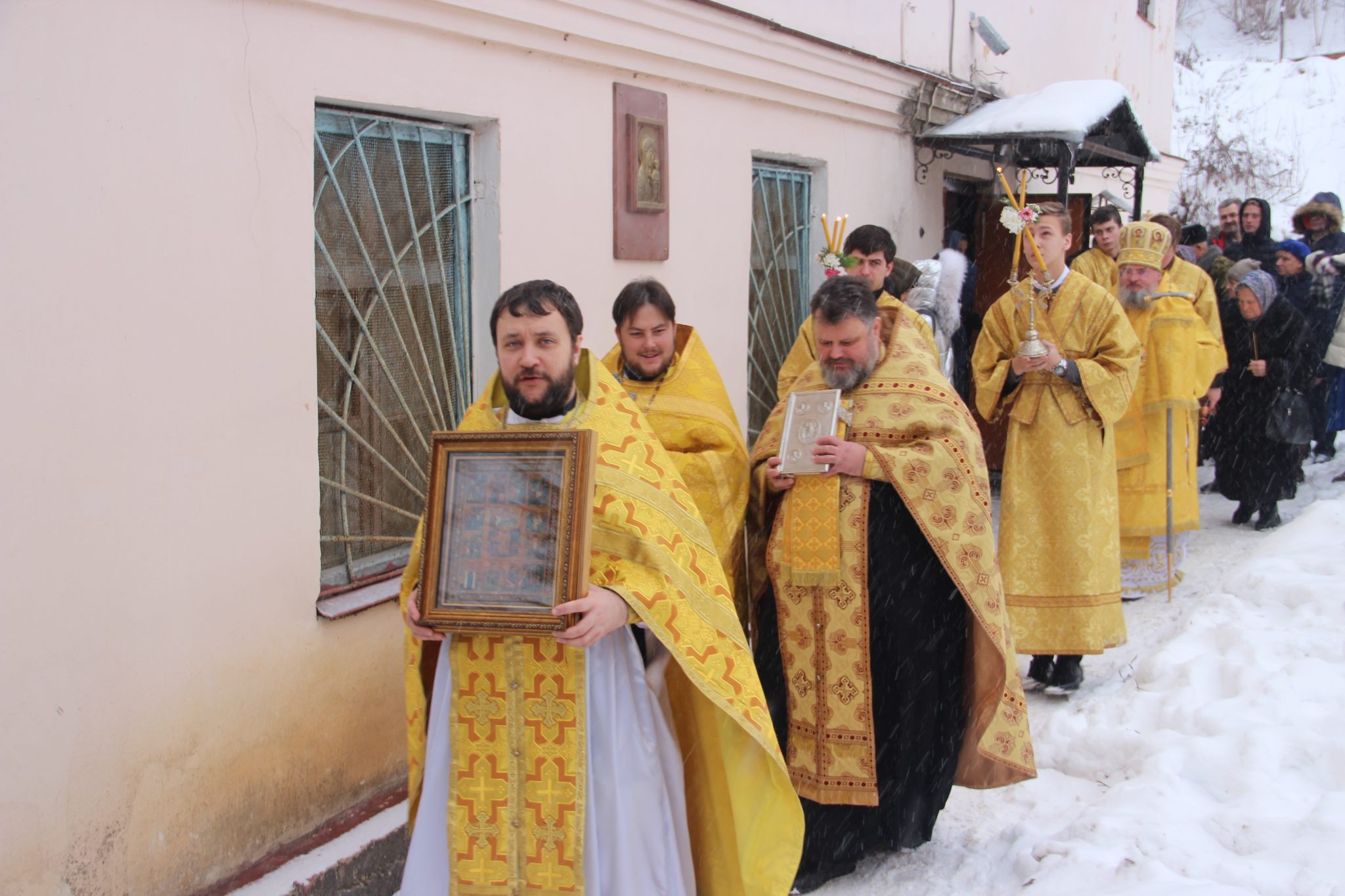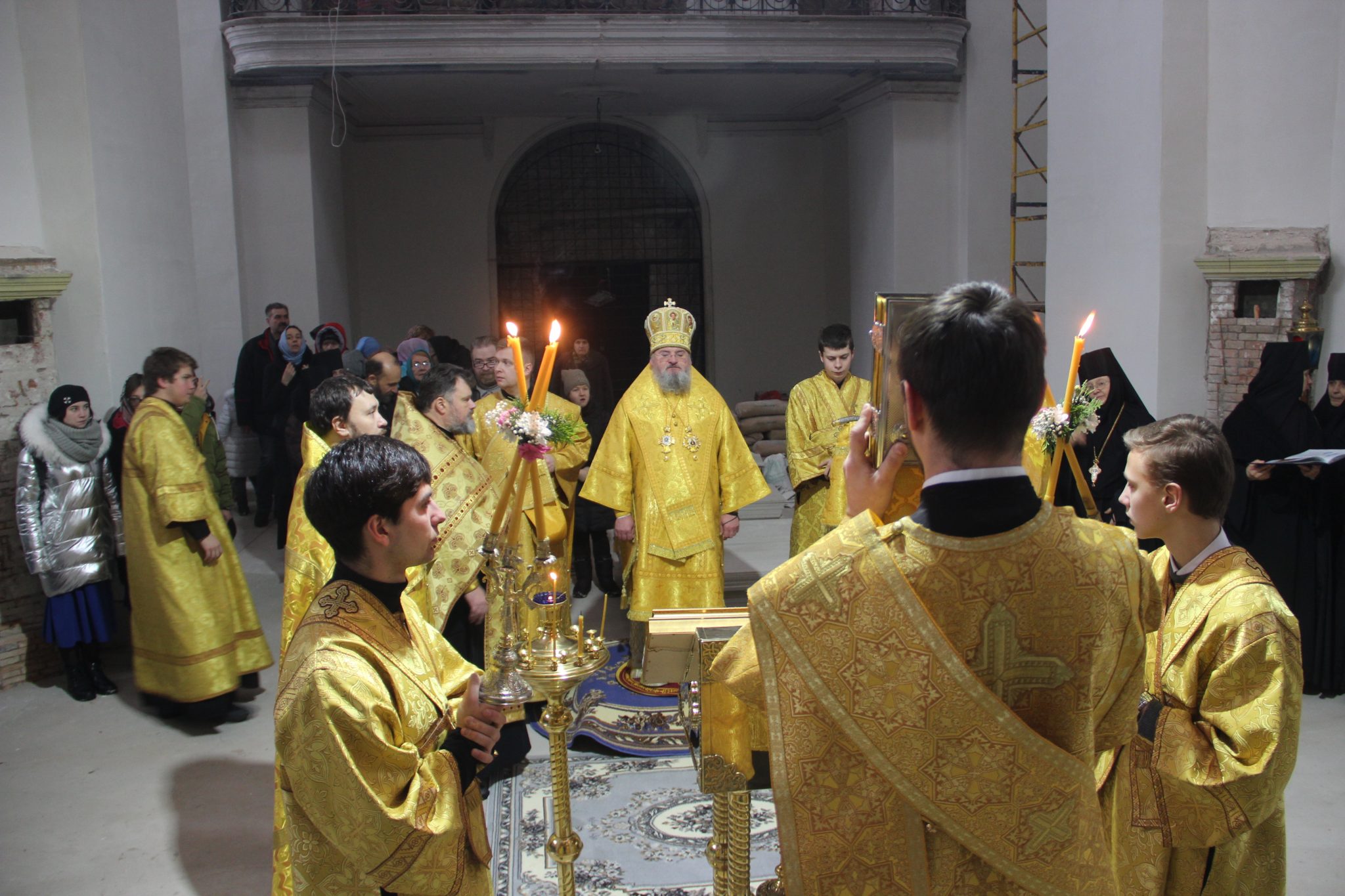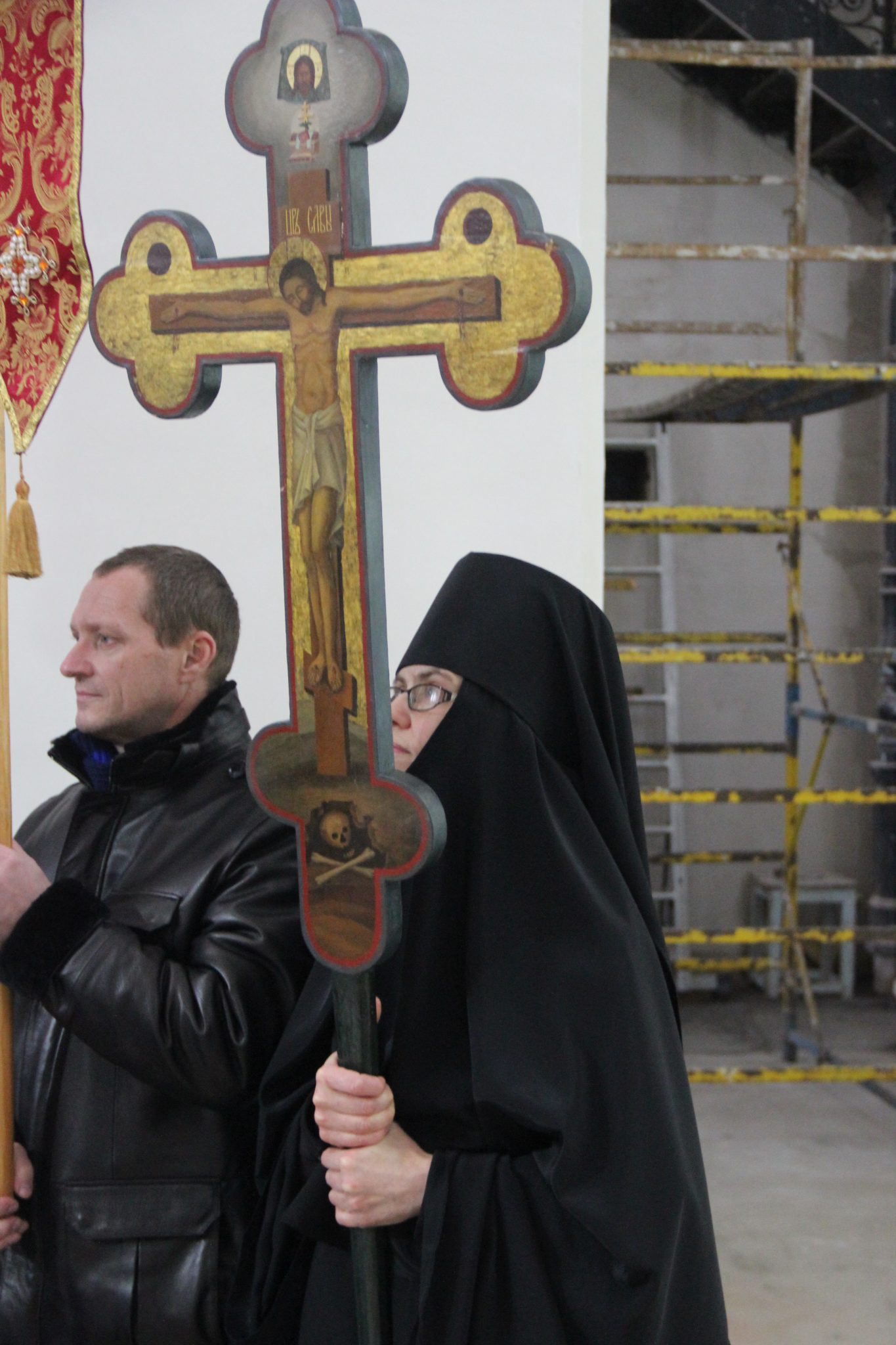 По отпусте литургии состоялся благодарственный молебен и крестный ход в восстанавливающийся Казанский собор монастыря, где владыка прочитал Евангелие и вознес молитвы ко Господу Богу и Его Пречистой Матери.