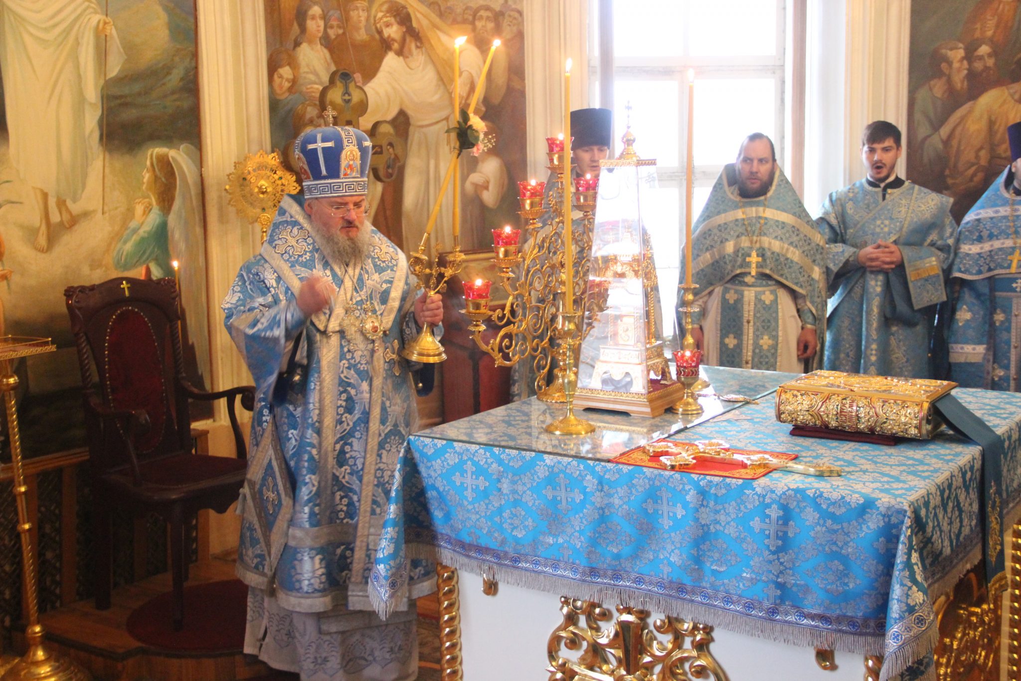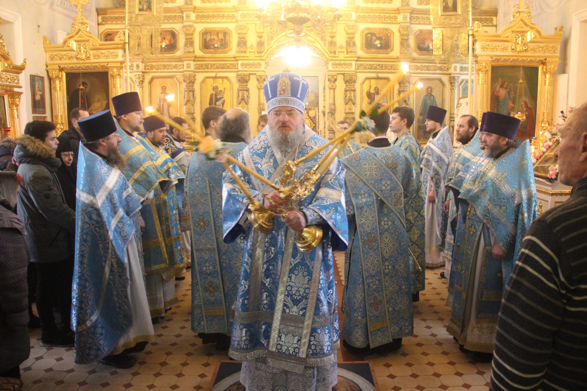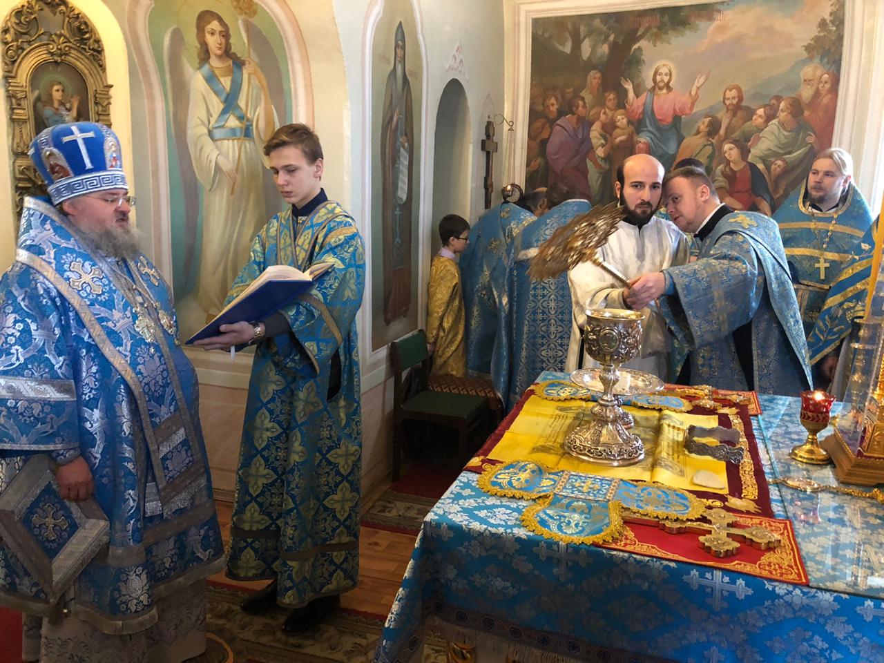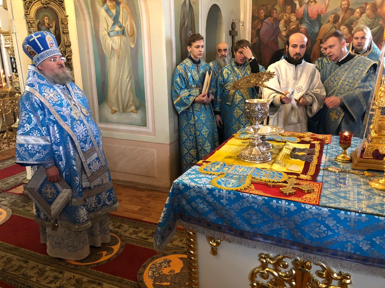Епископ Козельский и Людиновский Никита возглавил служение Божественной литургии в Благовещенском храме города Козельска, северный придел которого освящен в честь празднуемого образа Пресвятой Богородицы.