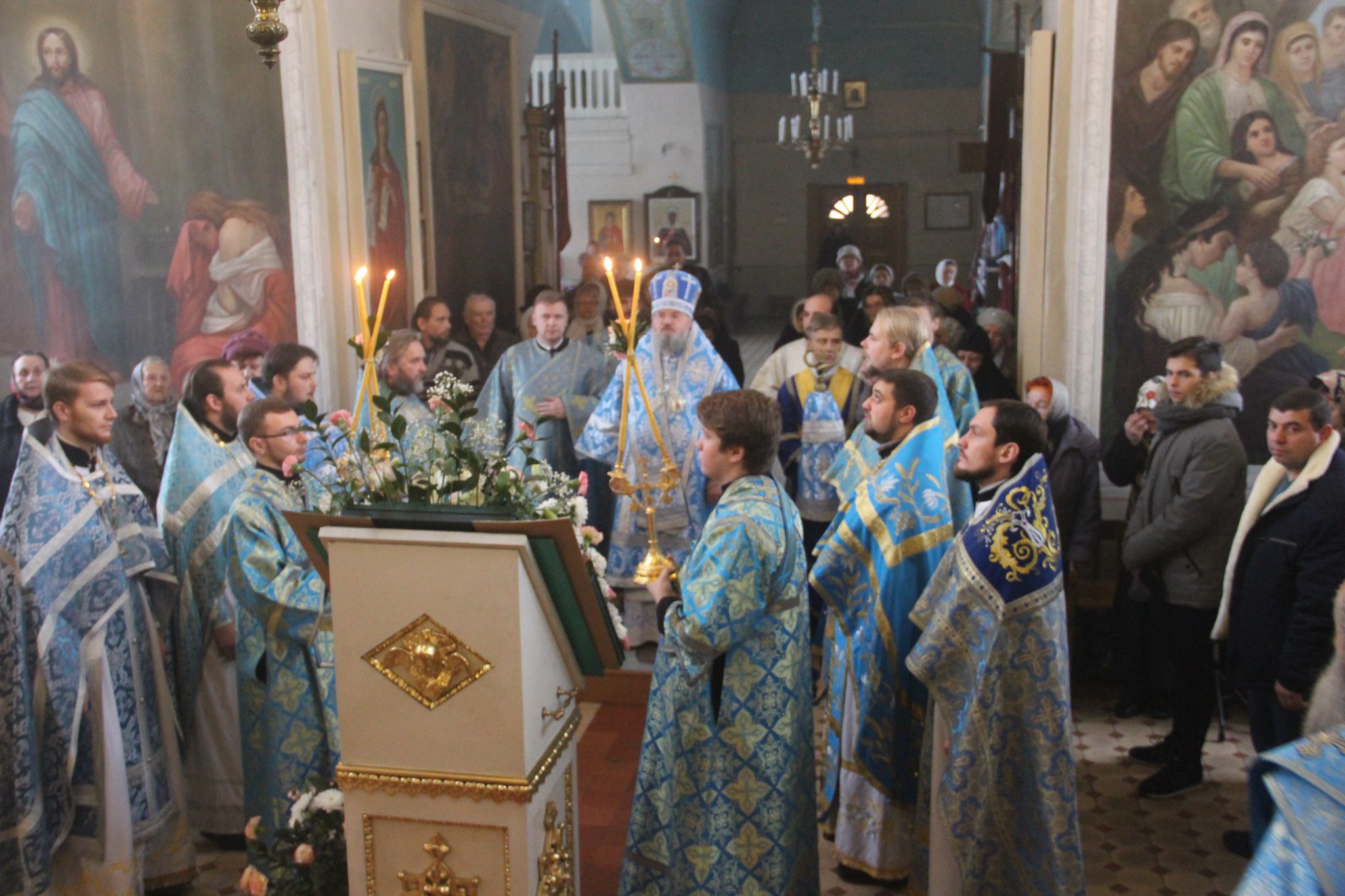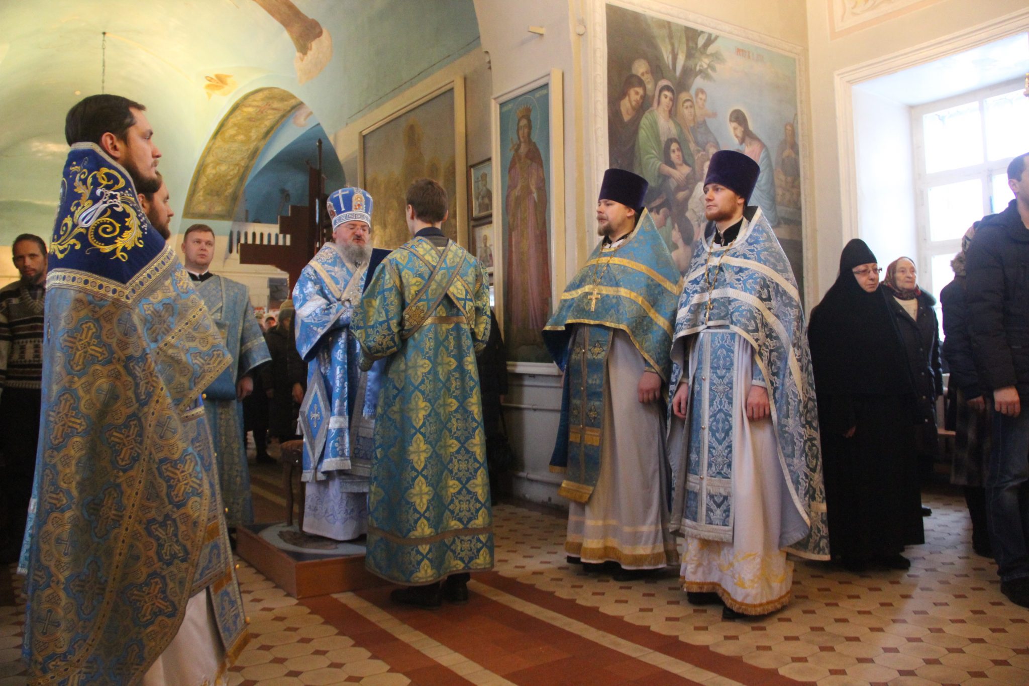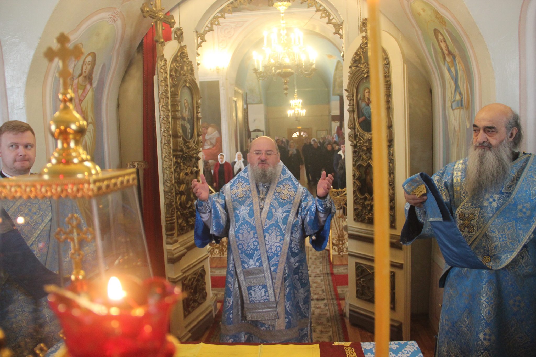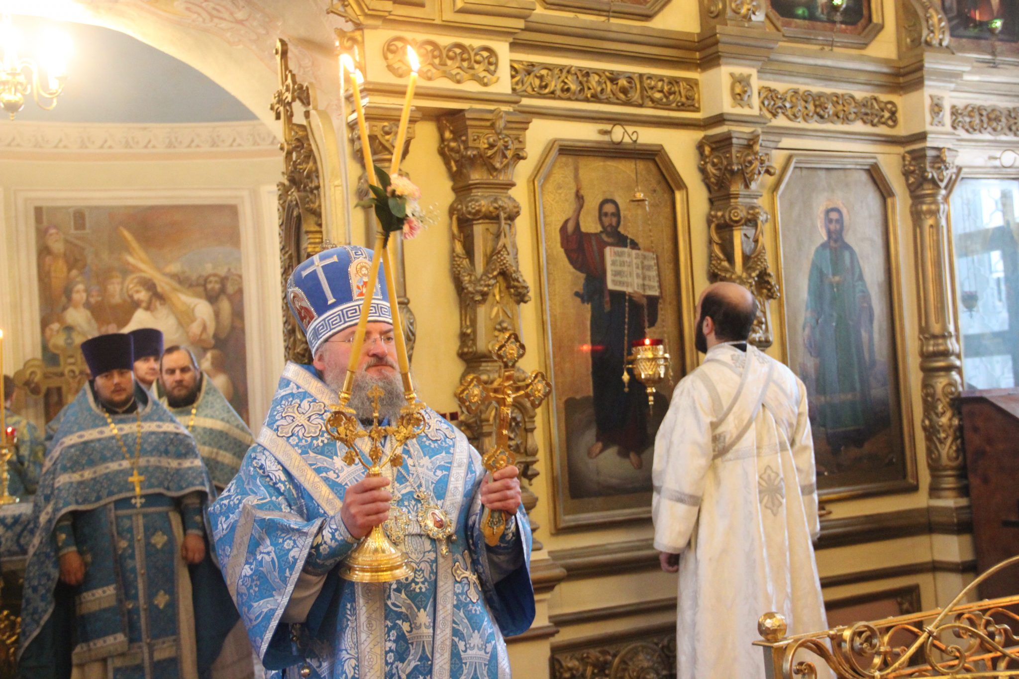 Епископ Козельский и Людиновский Никита возглавил служение Божественной литургии в Благовещенском храме города Козельска, северный придел которого освящен в честь празднуемого образа Пресвятой Богородицы.