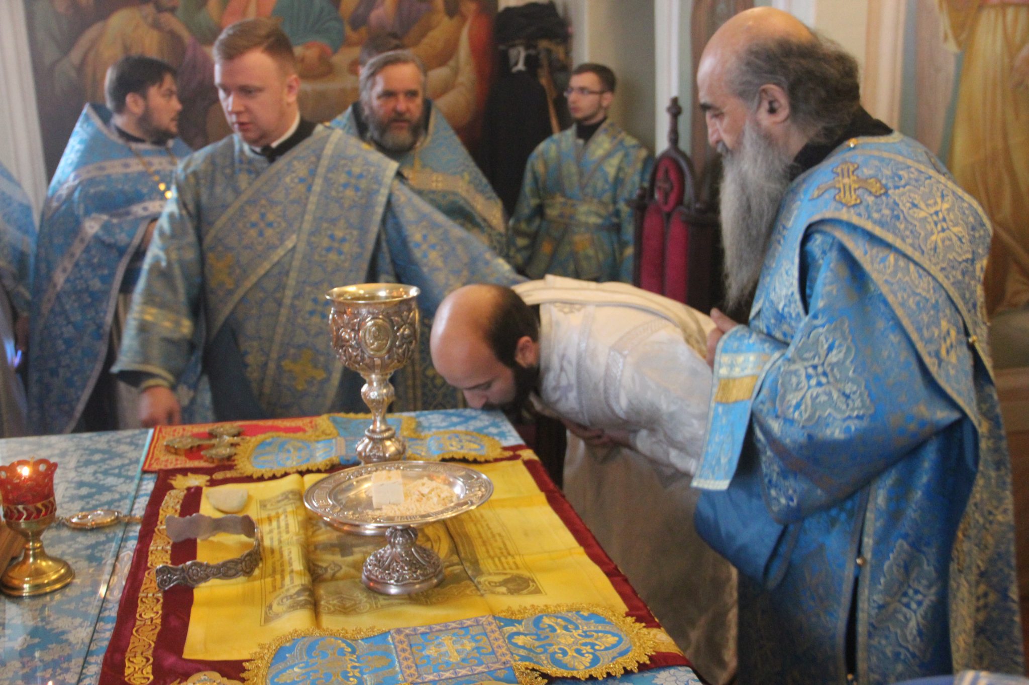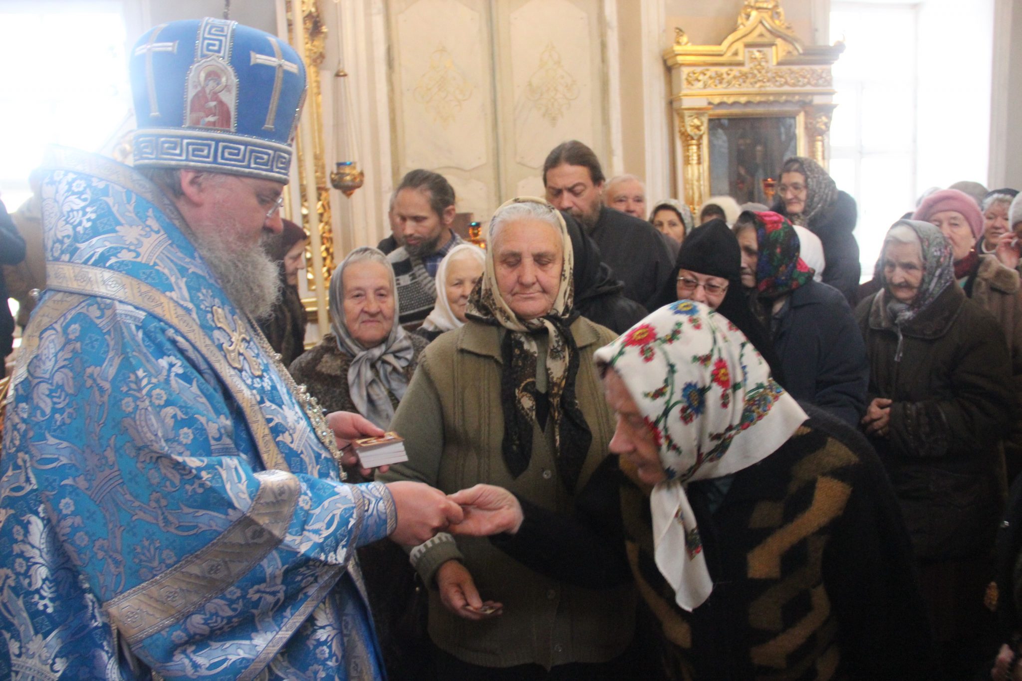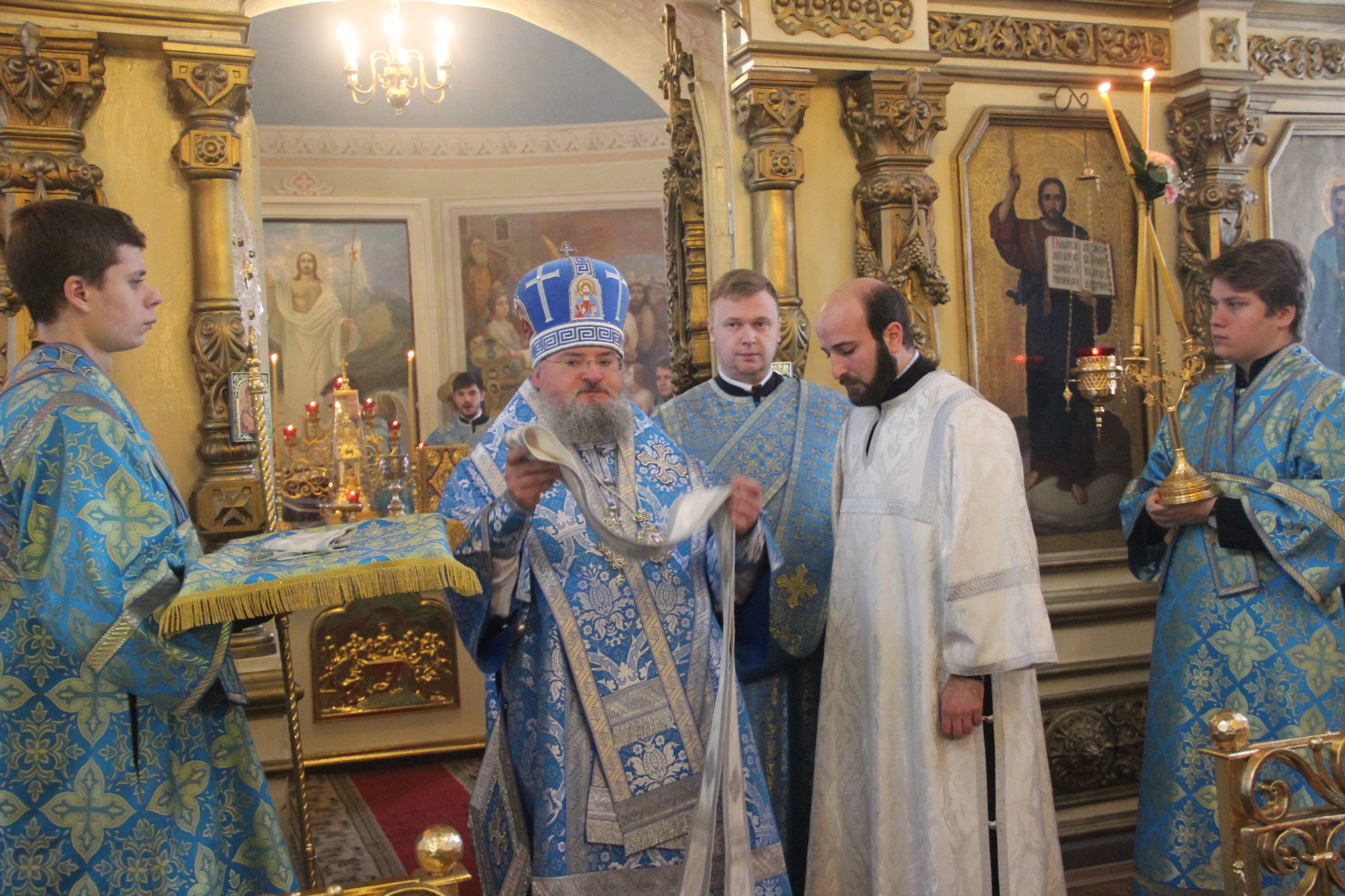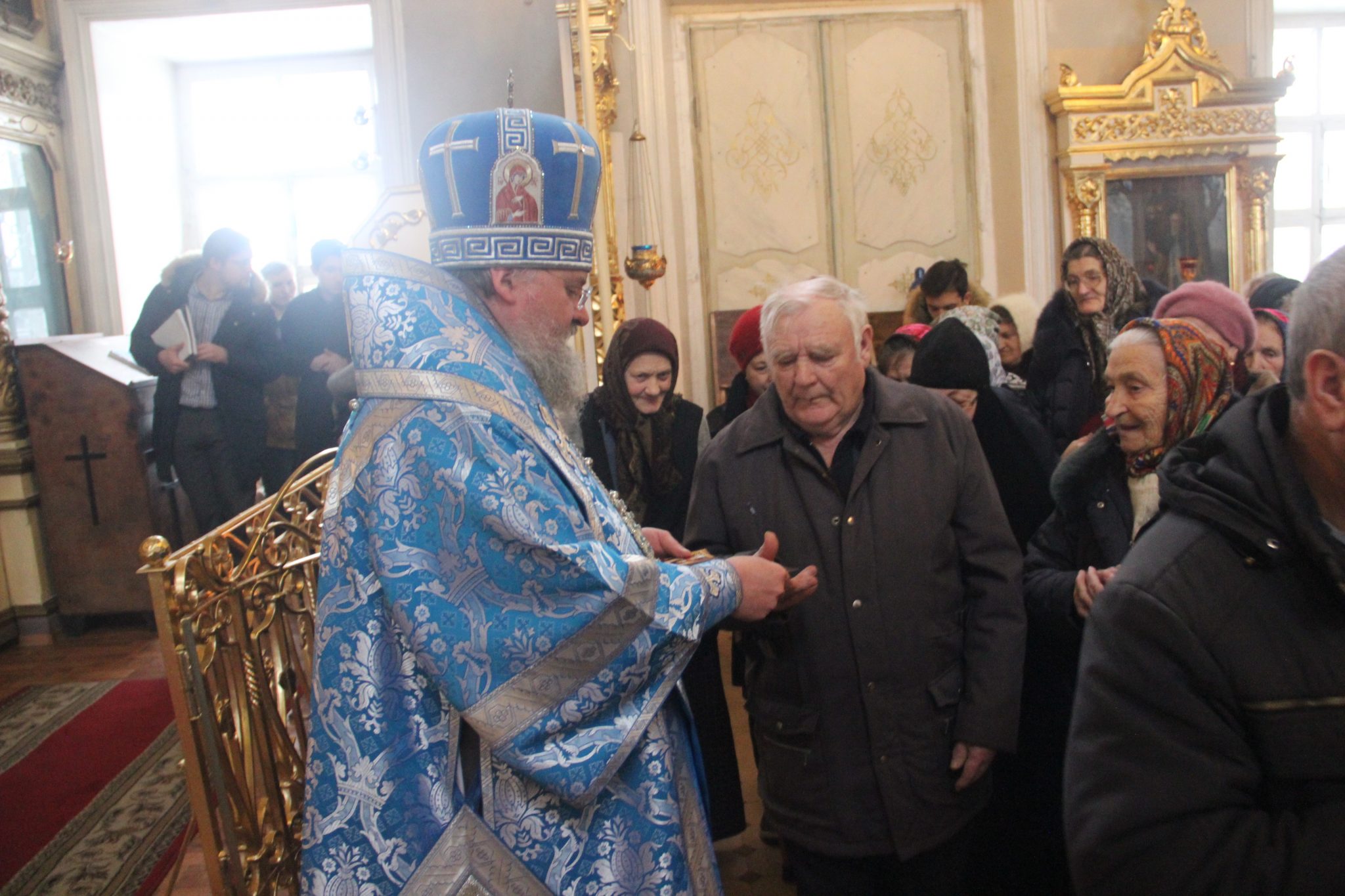 Епископ Козельский и Людиновский Никита возглавил служение Божественной литургии в Благовещенском храме города Козельска, северный придел которого освящен в честь празднуемого образа Пресвятой Богородицы.