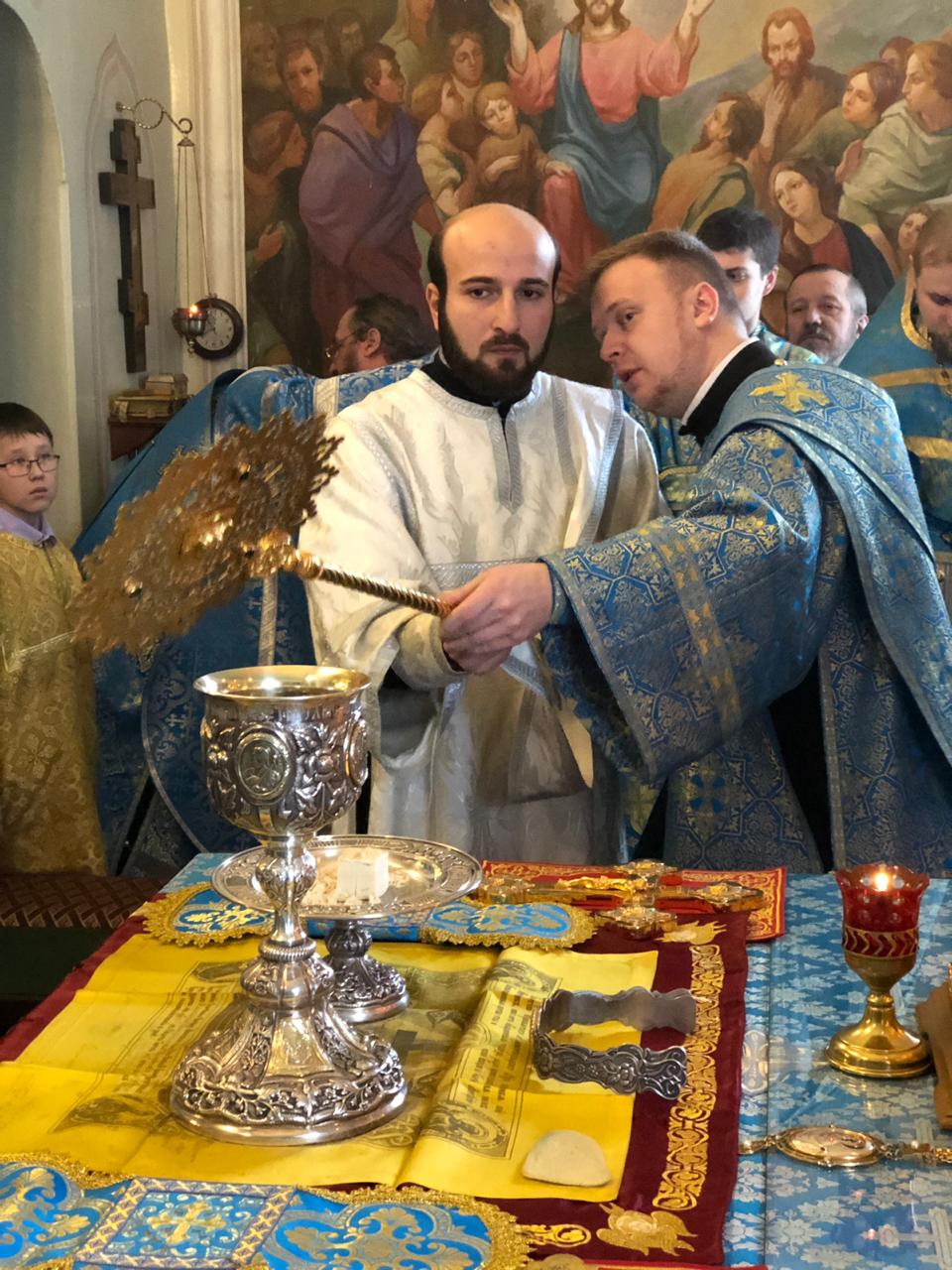 За богослужением в священный сан диакона был рукоположен выпускник Калужской духовной семинарии Товмасян Андрей.
