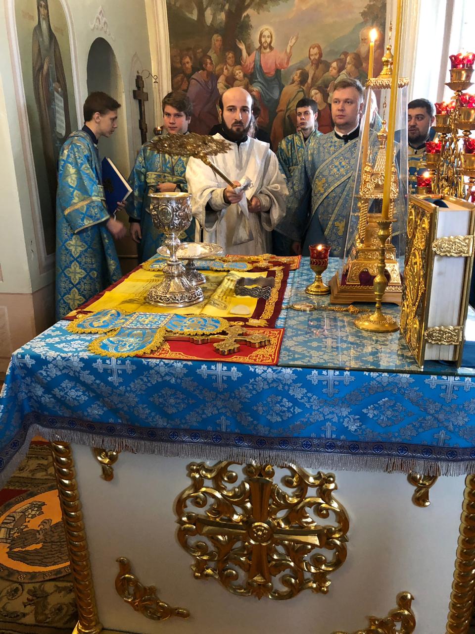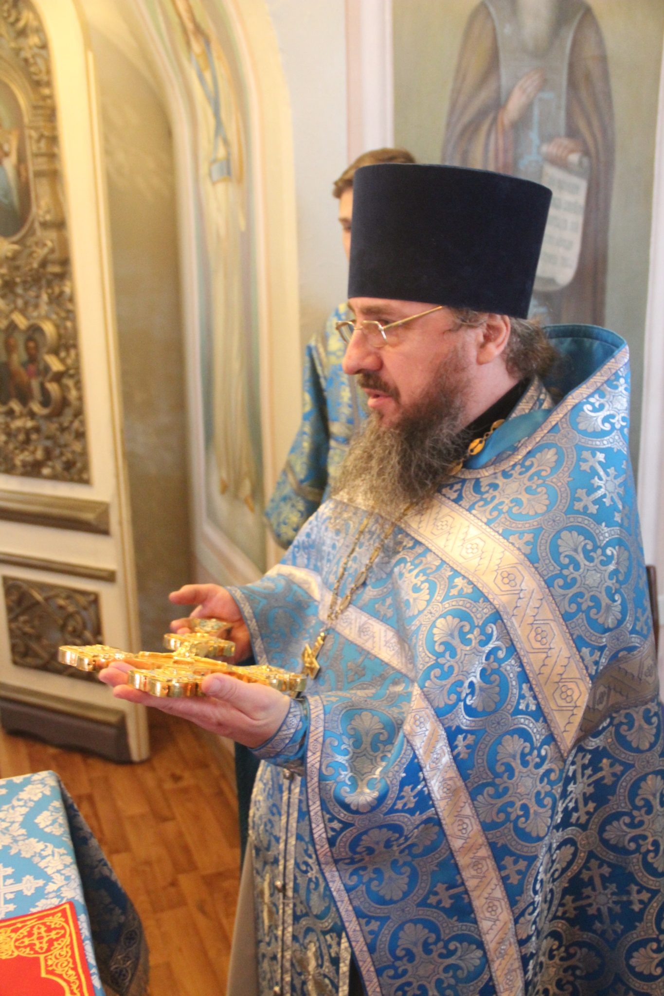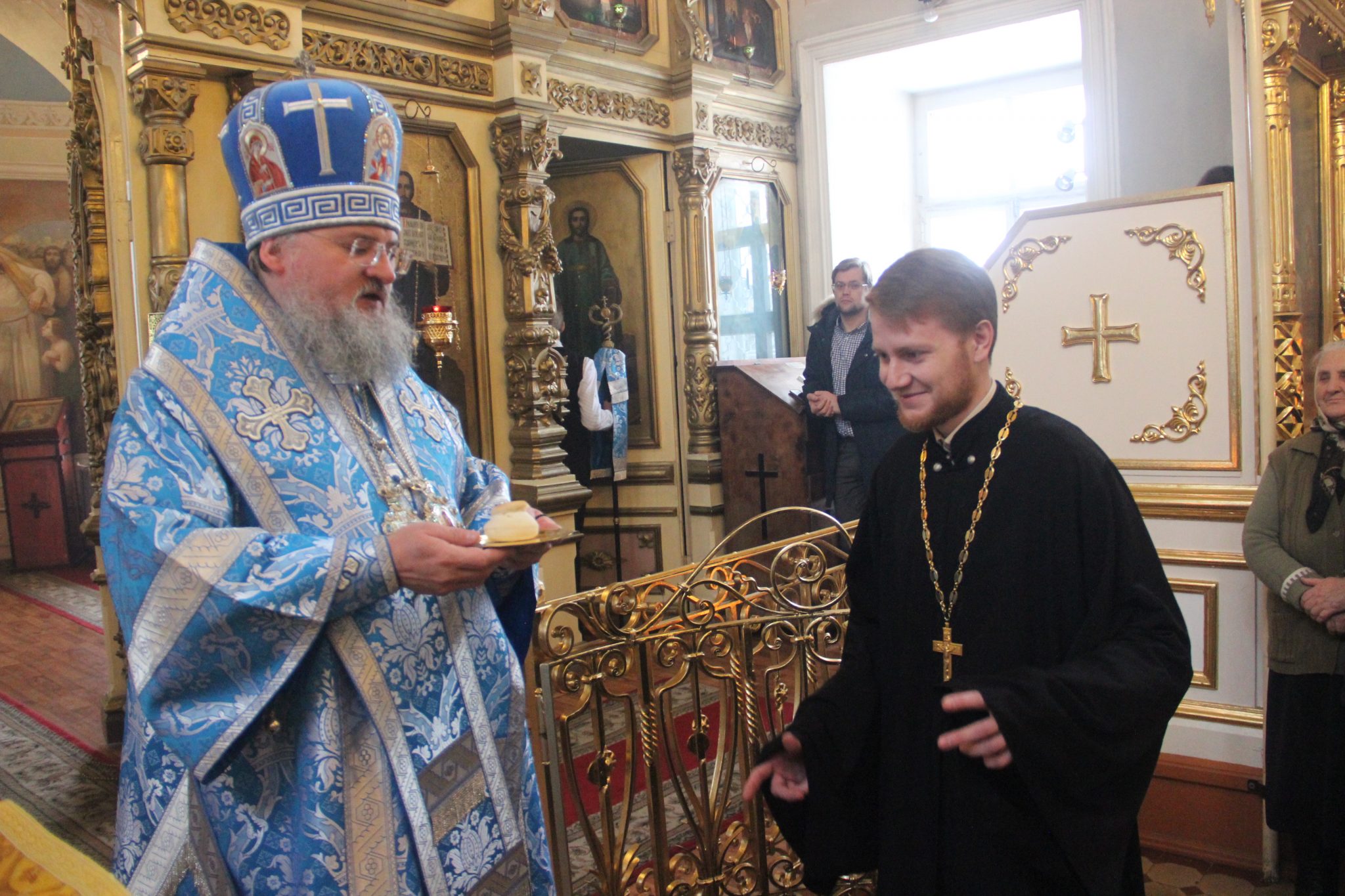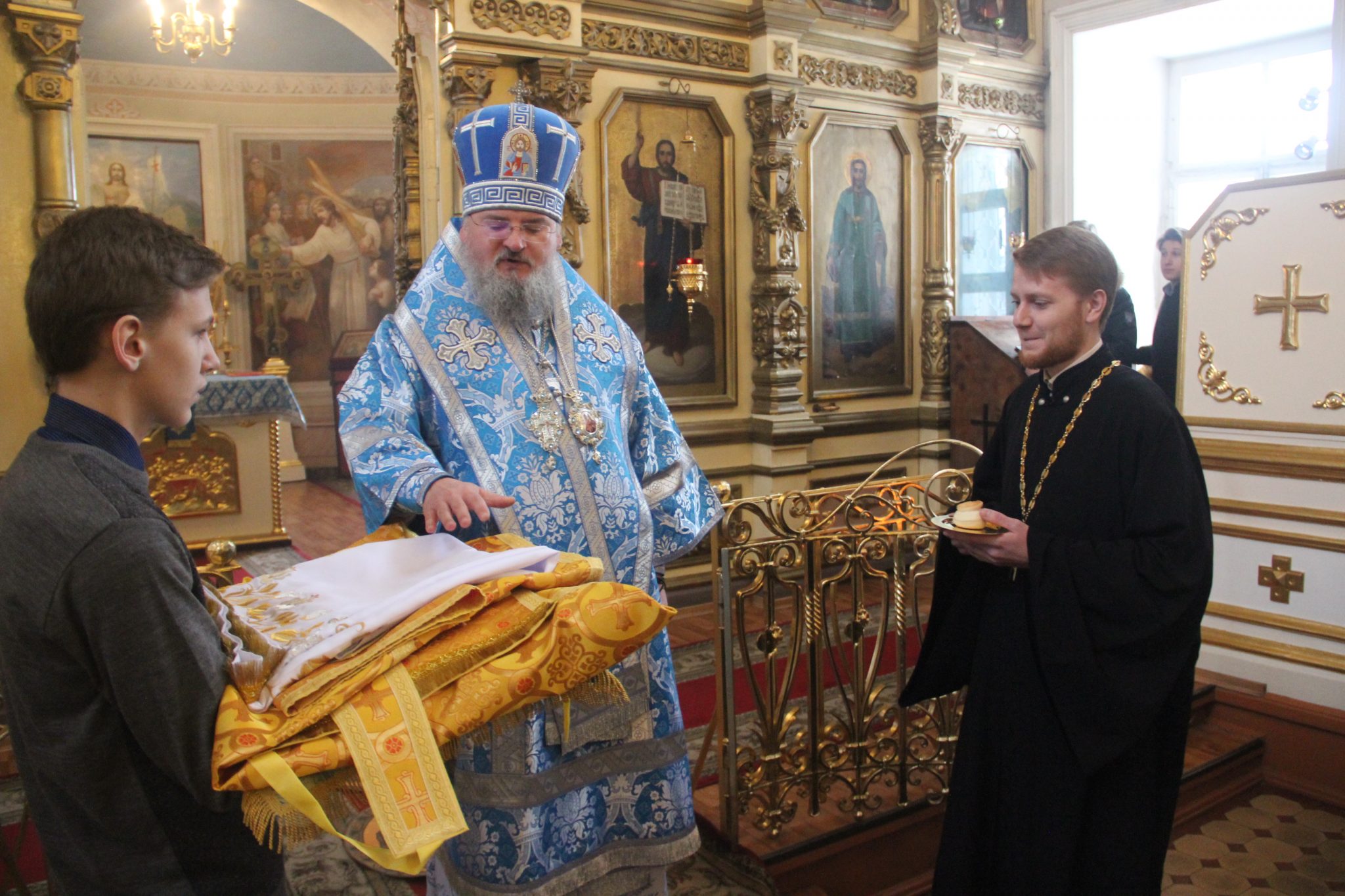 Во внимание к усердному пастырскому служению и в связи с днем иерейской хиротонии и юбилейной датой со дня рождения владыка преподнес в дар комплект иерейского облачения клирику Успенского кафедрального собора иерею Елисею Тимофееву, а всем богомольцам раздал иконки святителя Луки Крымского, освященные на его честных мощах.
