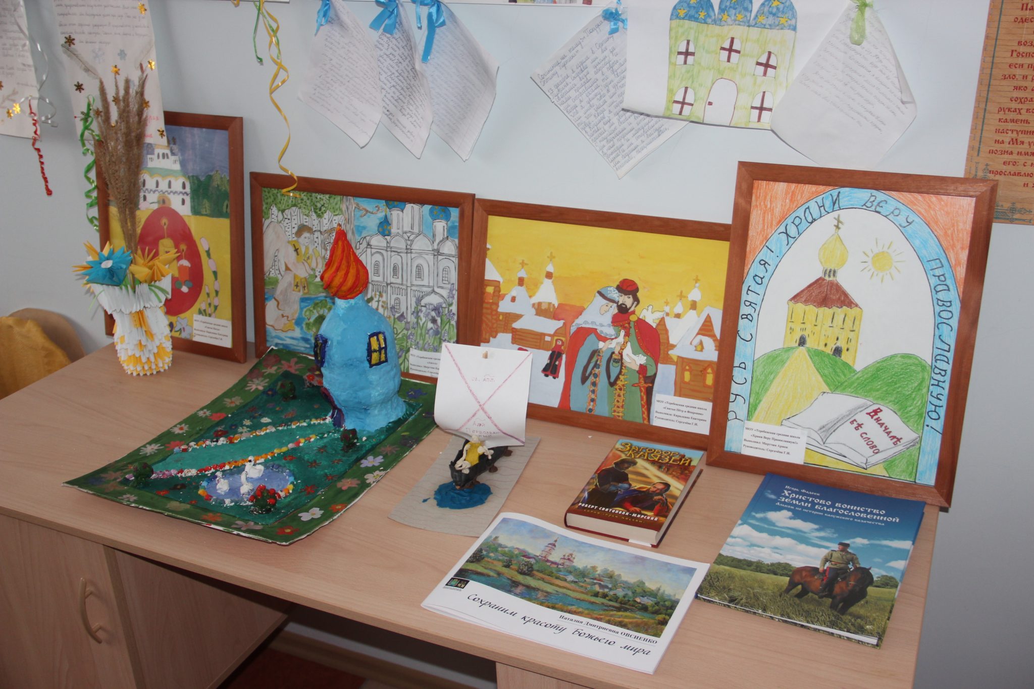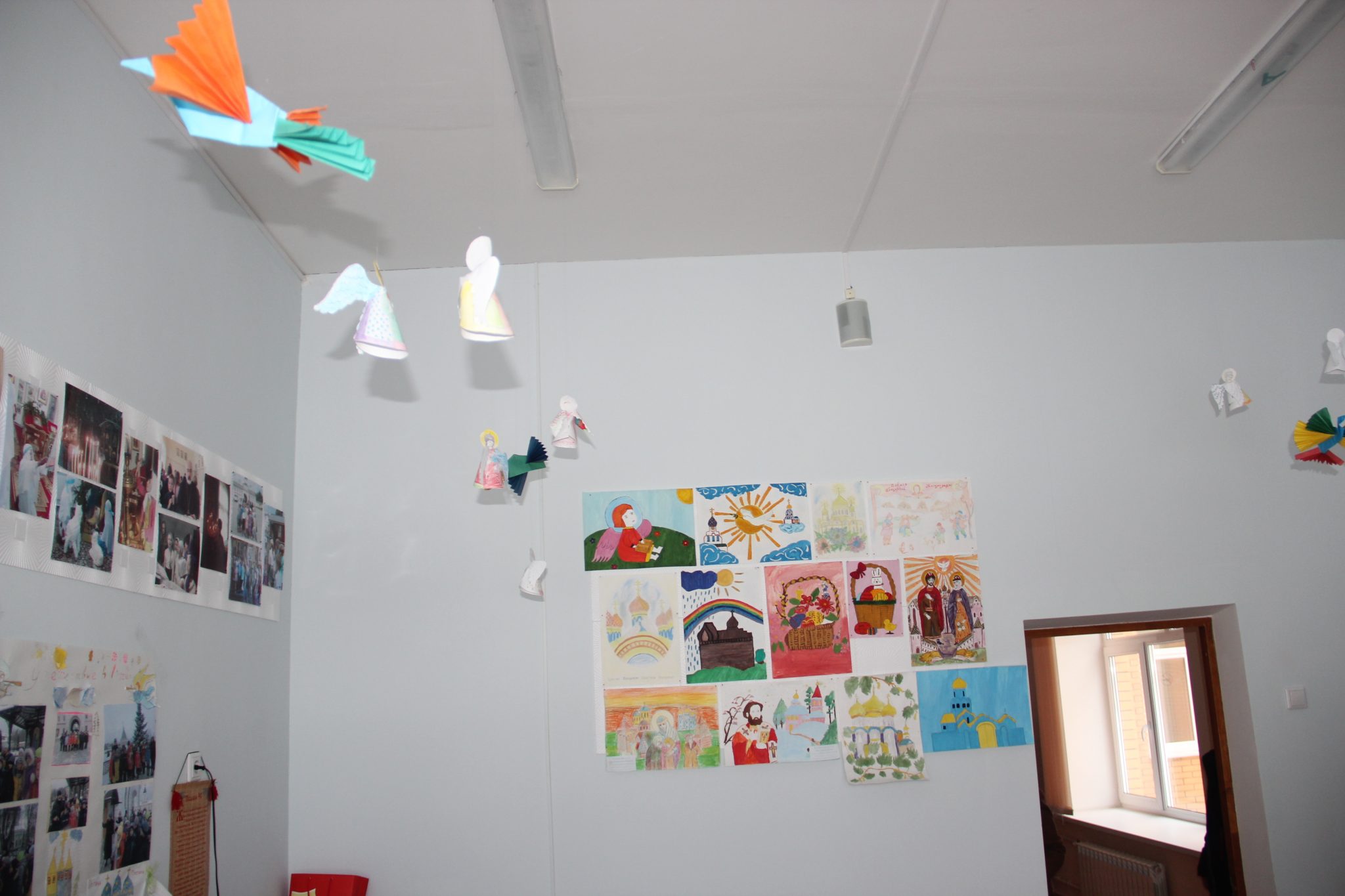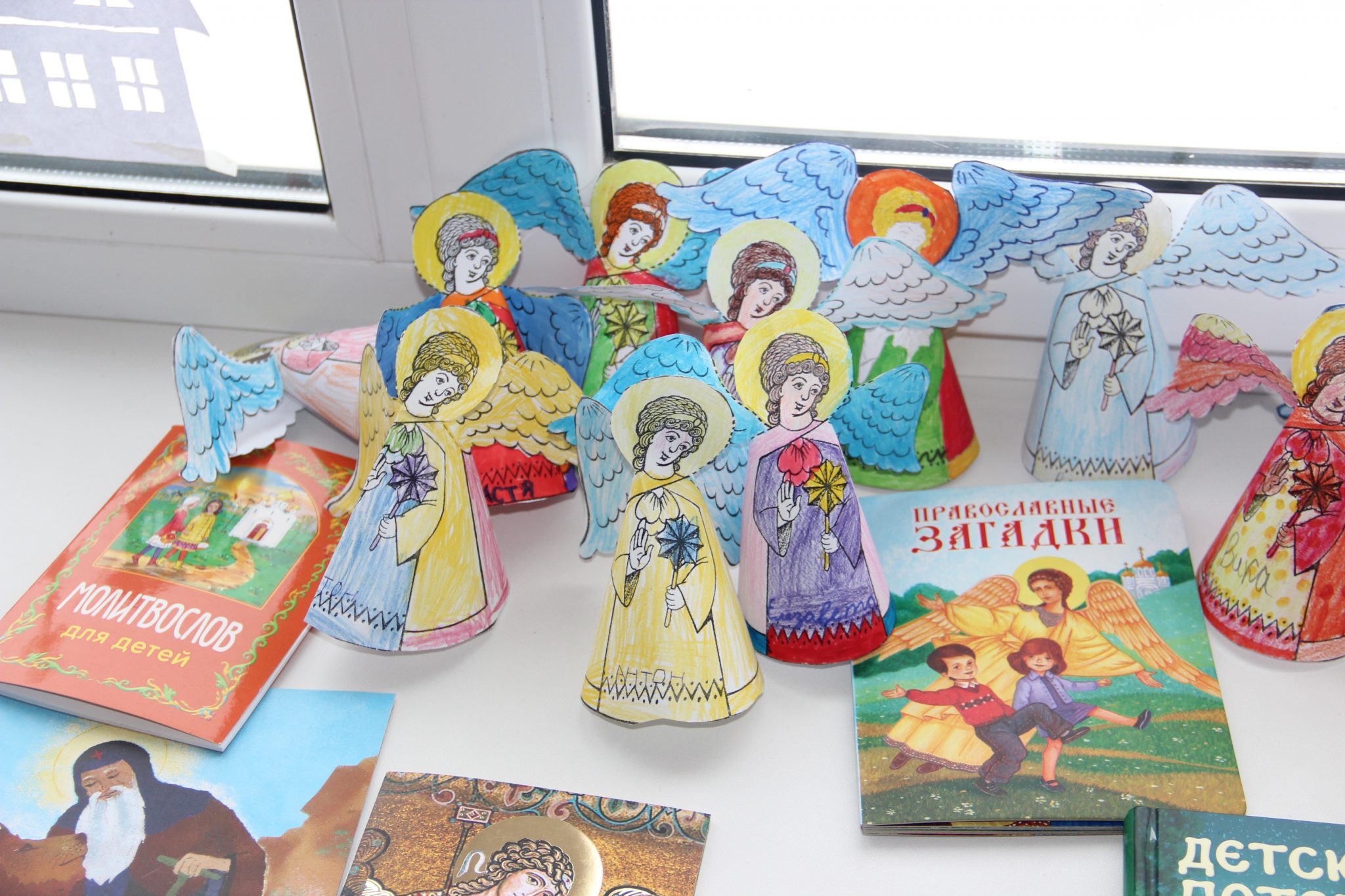 Владыка познакомился с рисунками, сочинениями и поделками воспитанников воскресной школы.