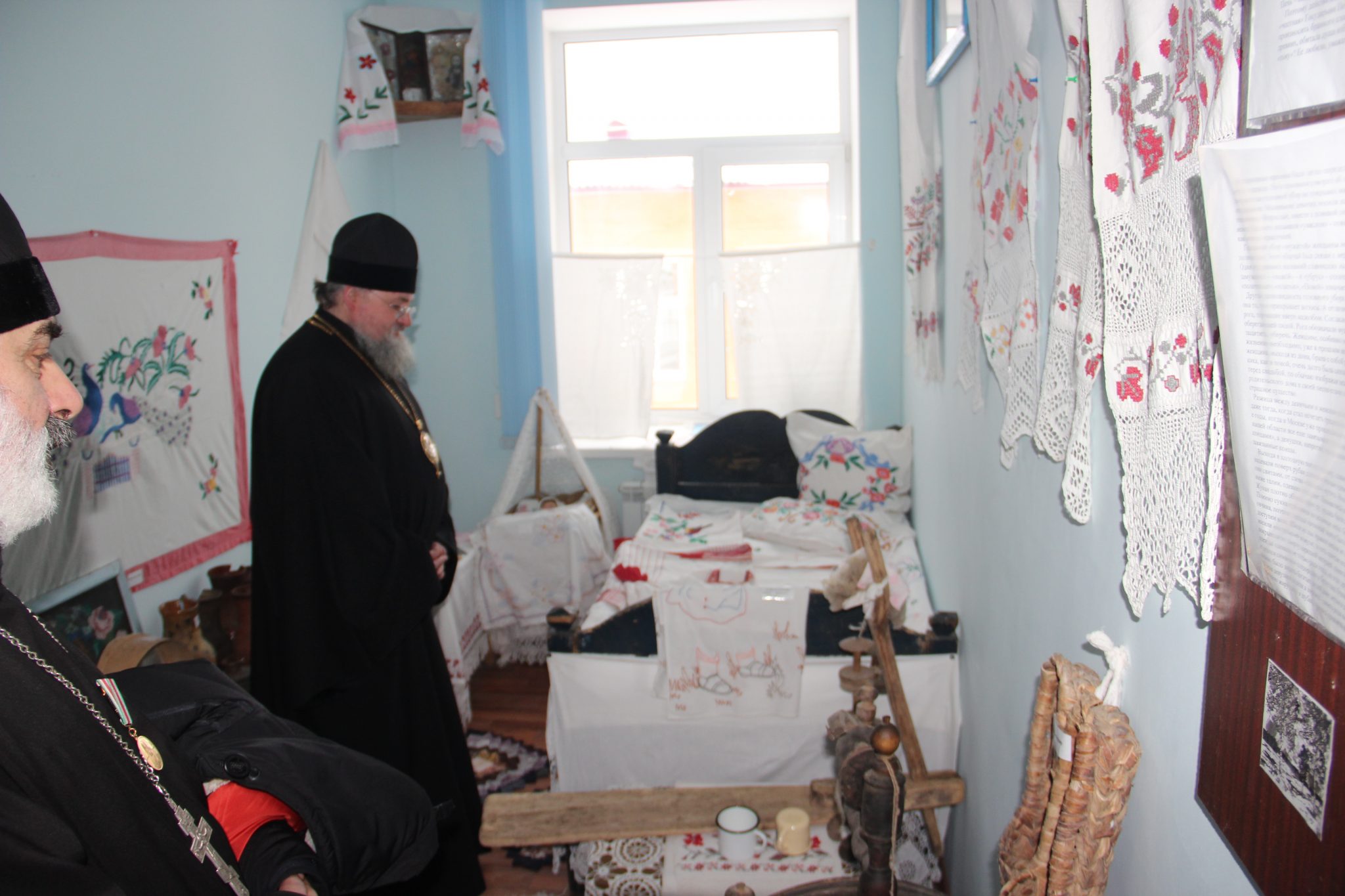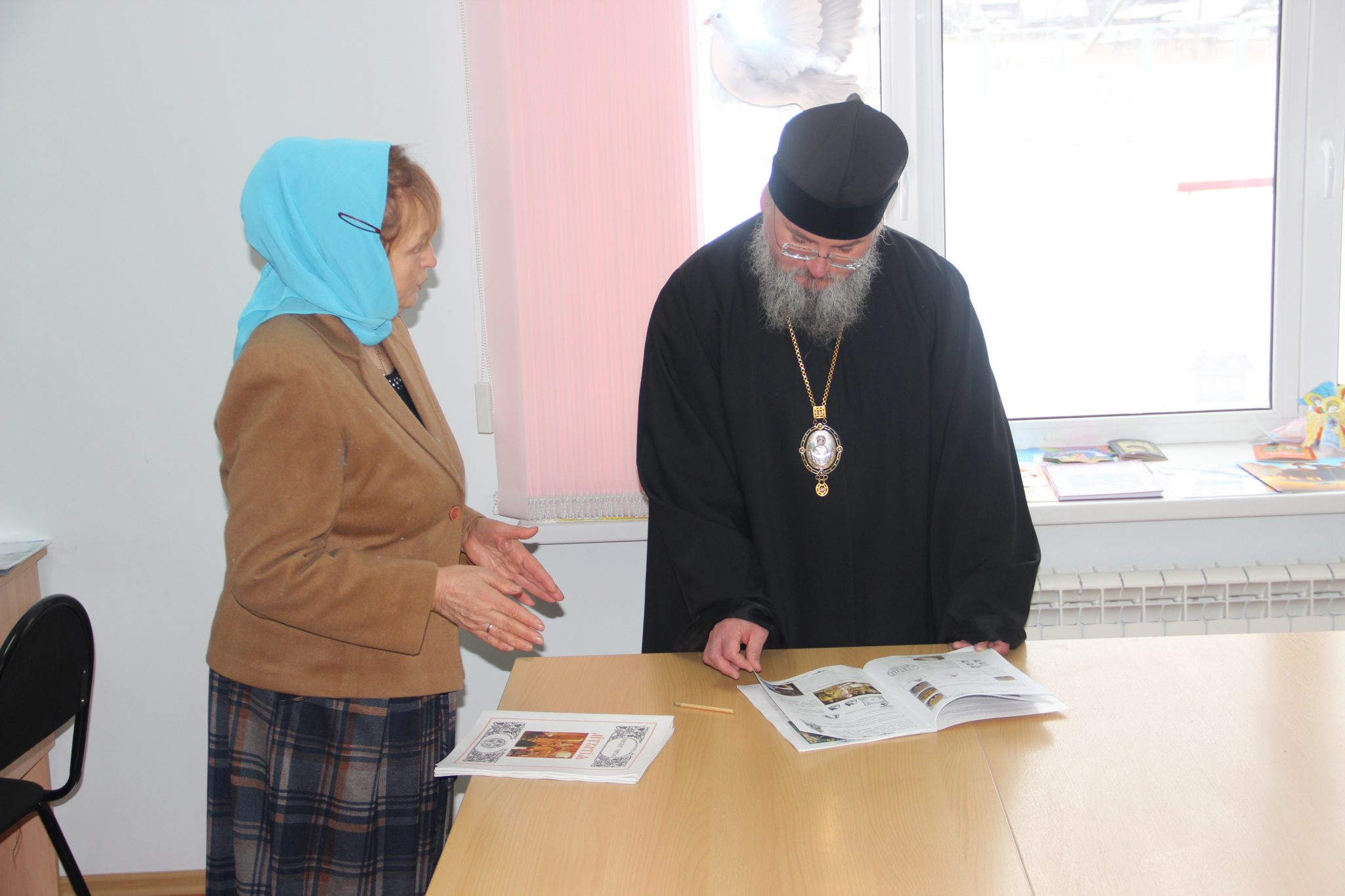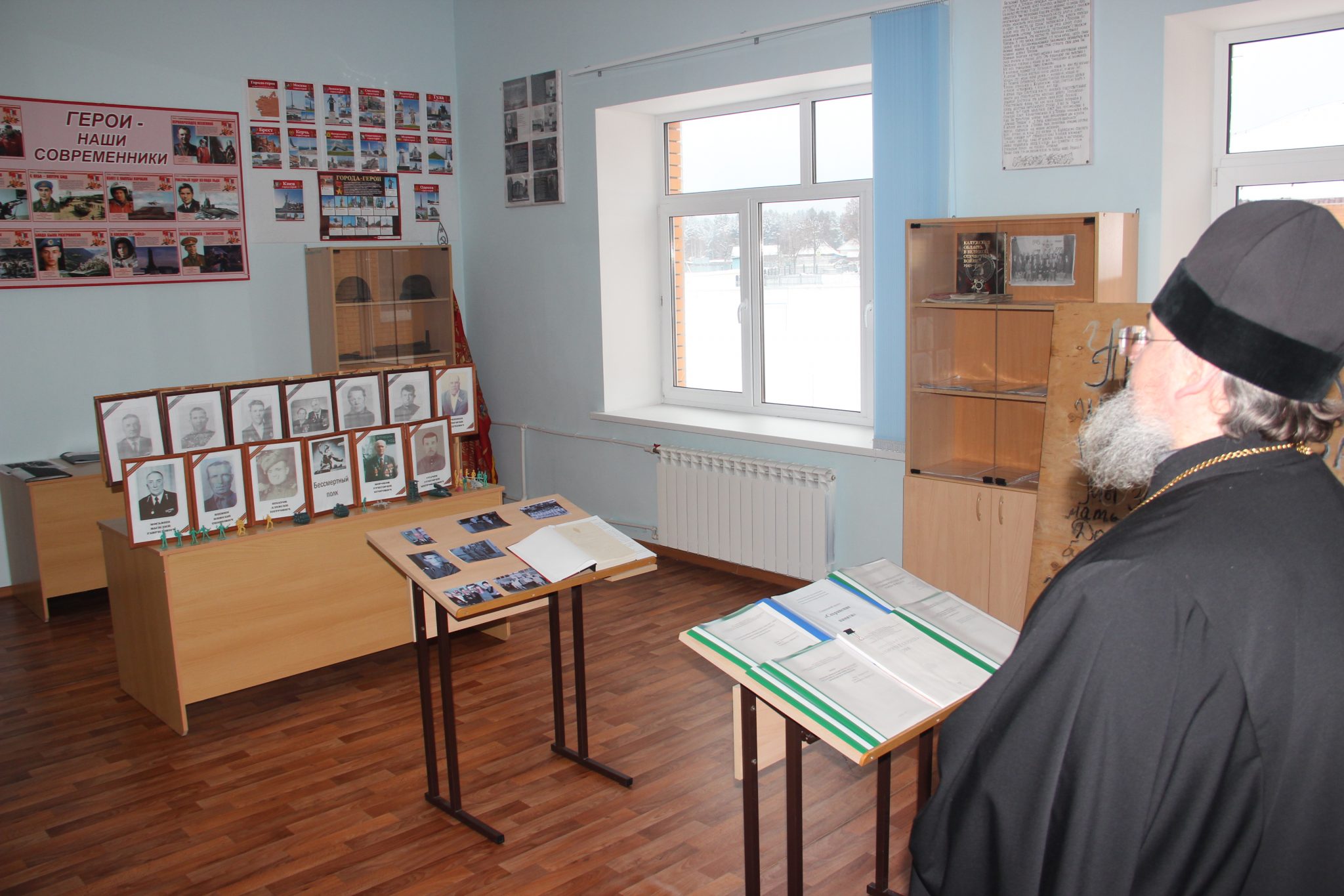 Директор школы Ипатова Татьяна Викторовна и настоятель храма Покрова Пресвятой Богородицы иерей Геннадий Сафиев показали владыке аудиторию, выделенную для занятий воскресной школы детей из сел Кудрявец и Теребень.