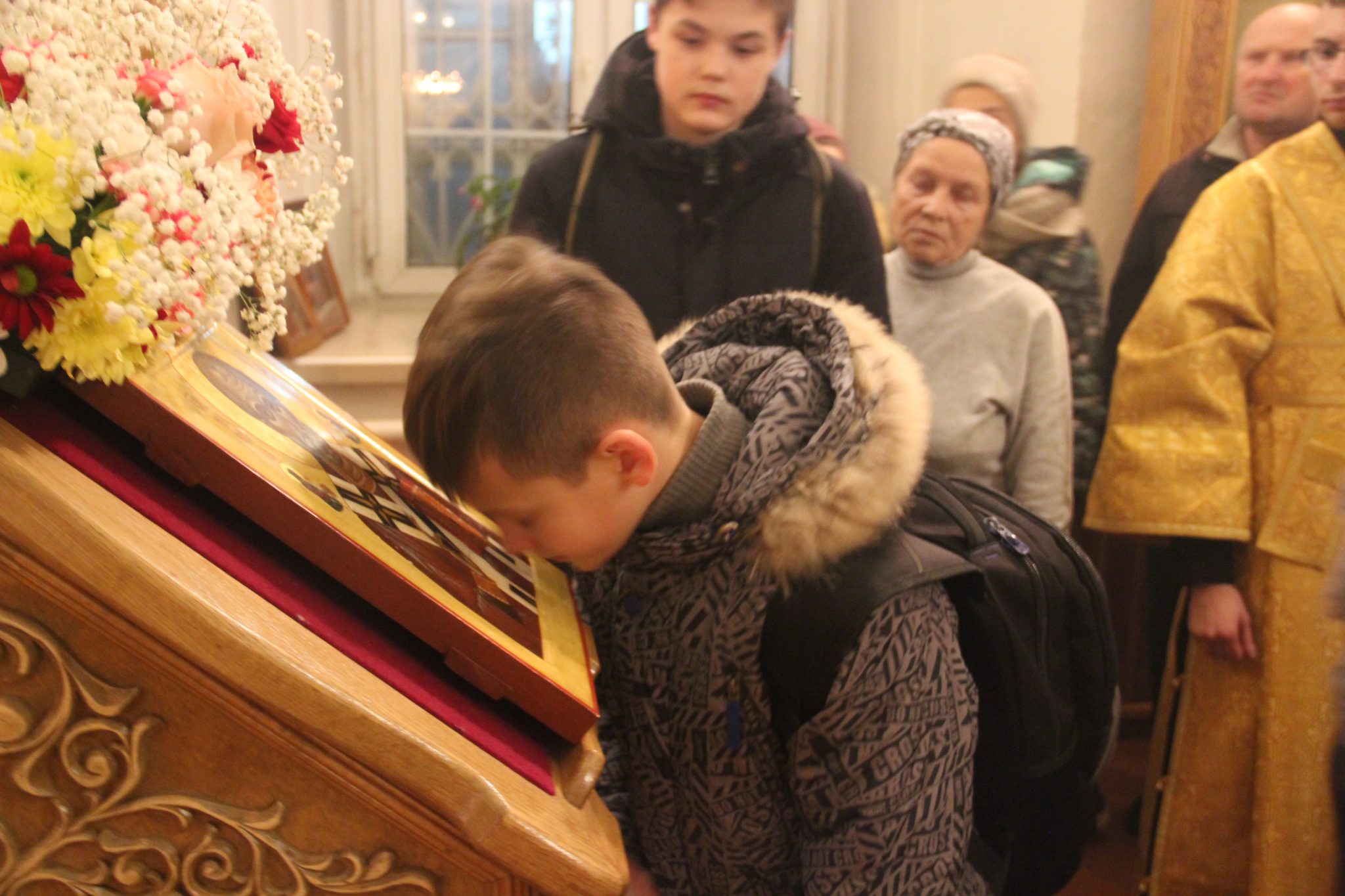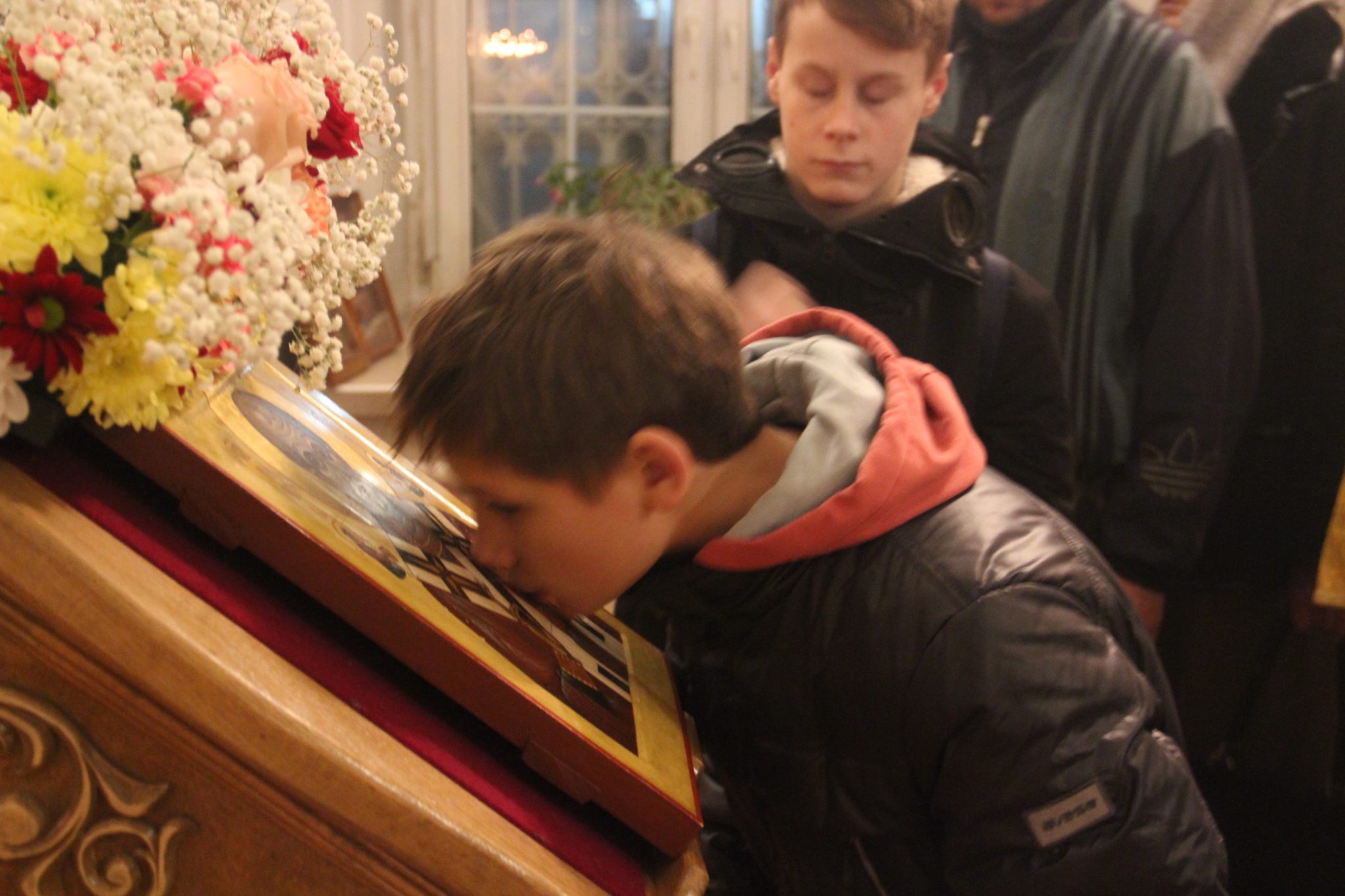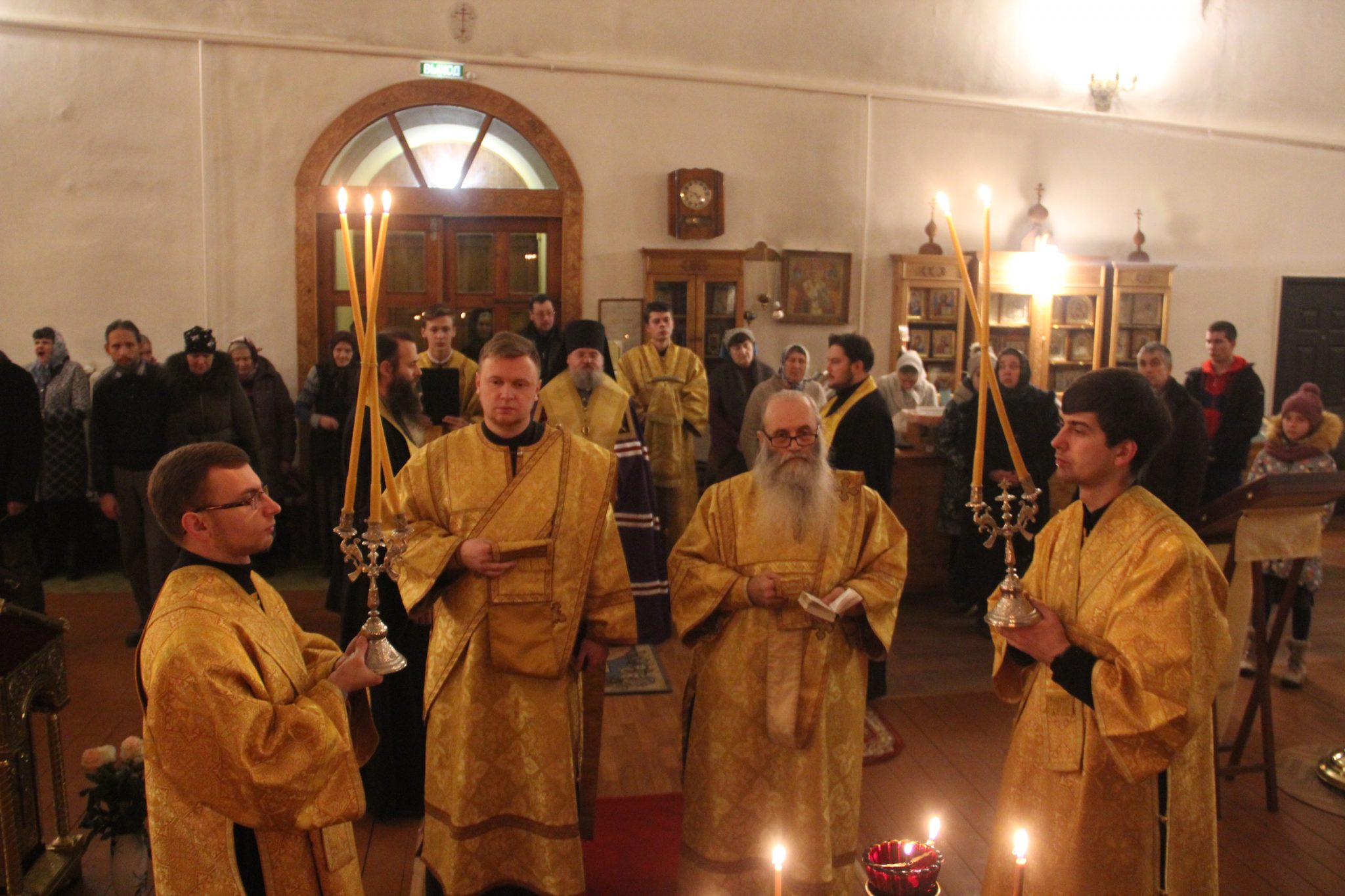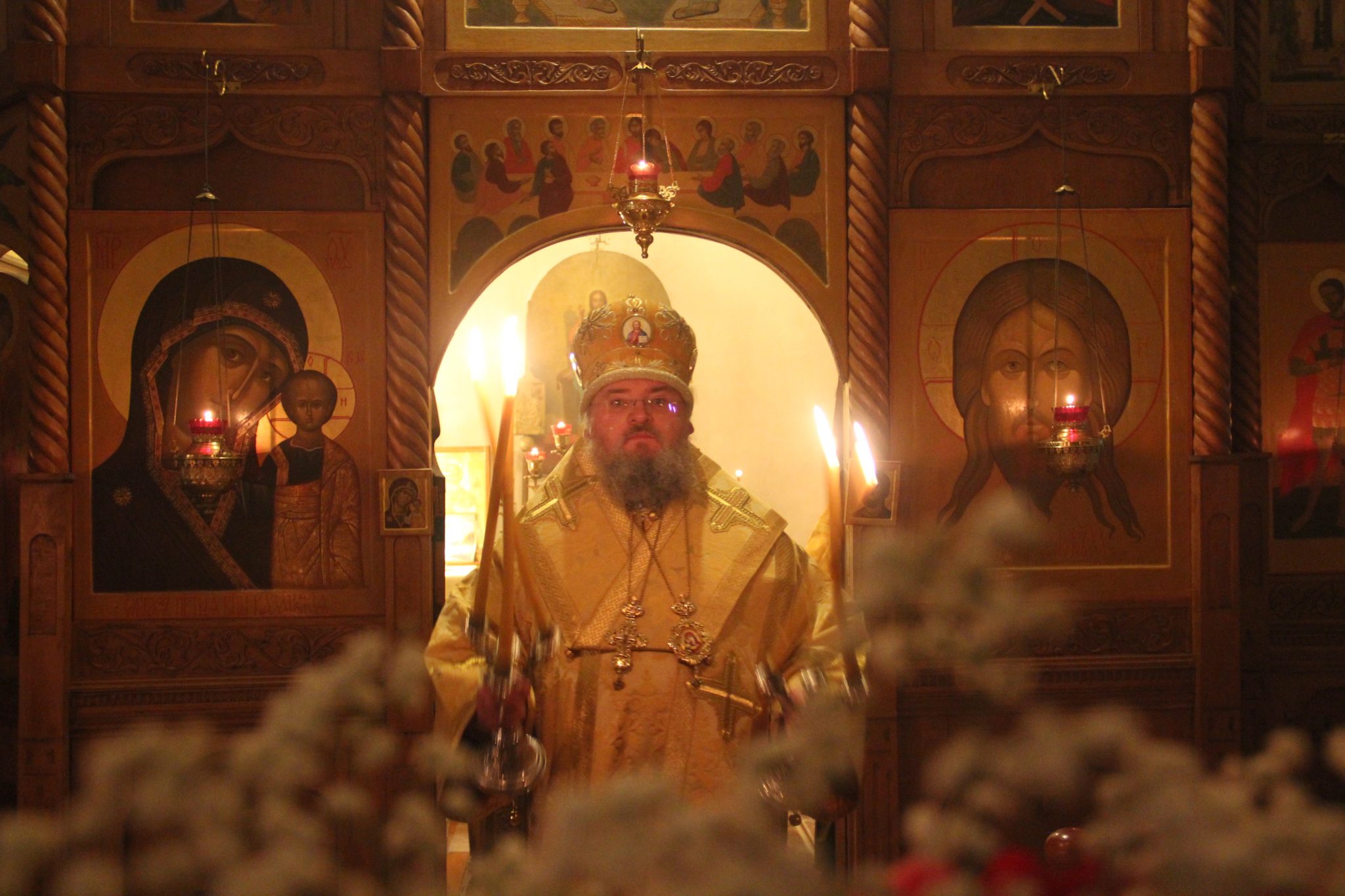 18 декабря епископ Козельский и Людиновский Никита совершил всенощное бдение в храме святителя и чудотворца Николая архиепископа Мир Ликийских в Свято-Никольском храме города Козельска.