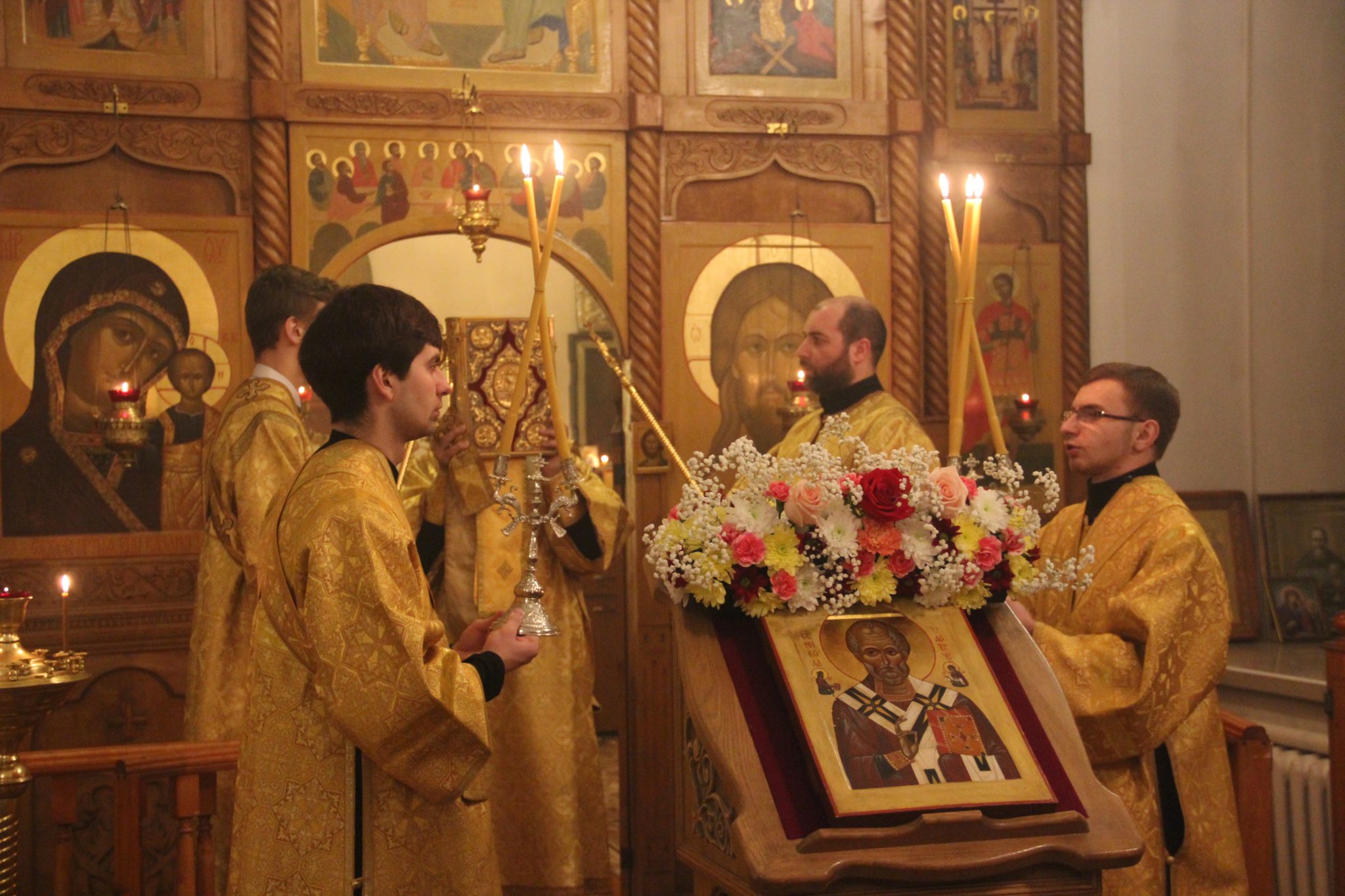 На праздничной утрени духовенство и богомольцы пропели акафист святителю Николаю.