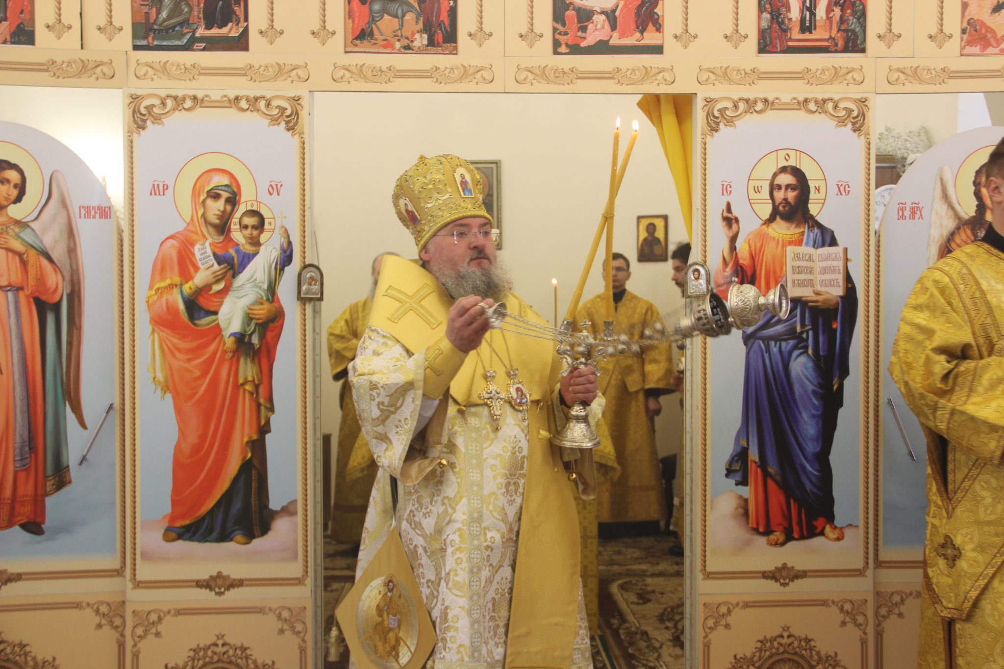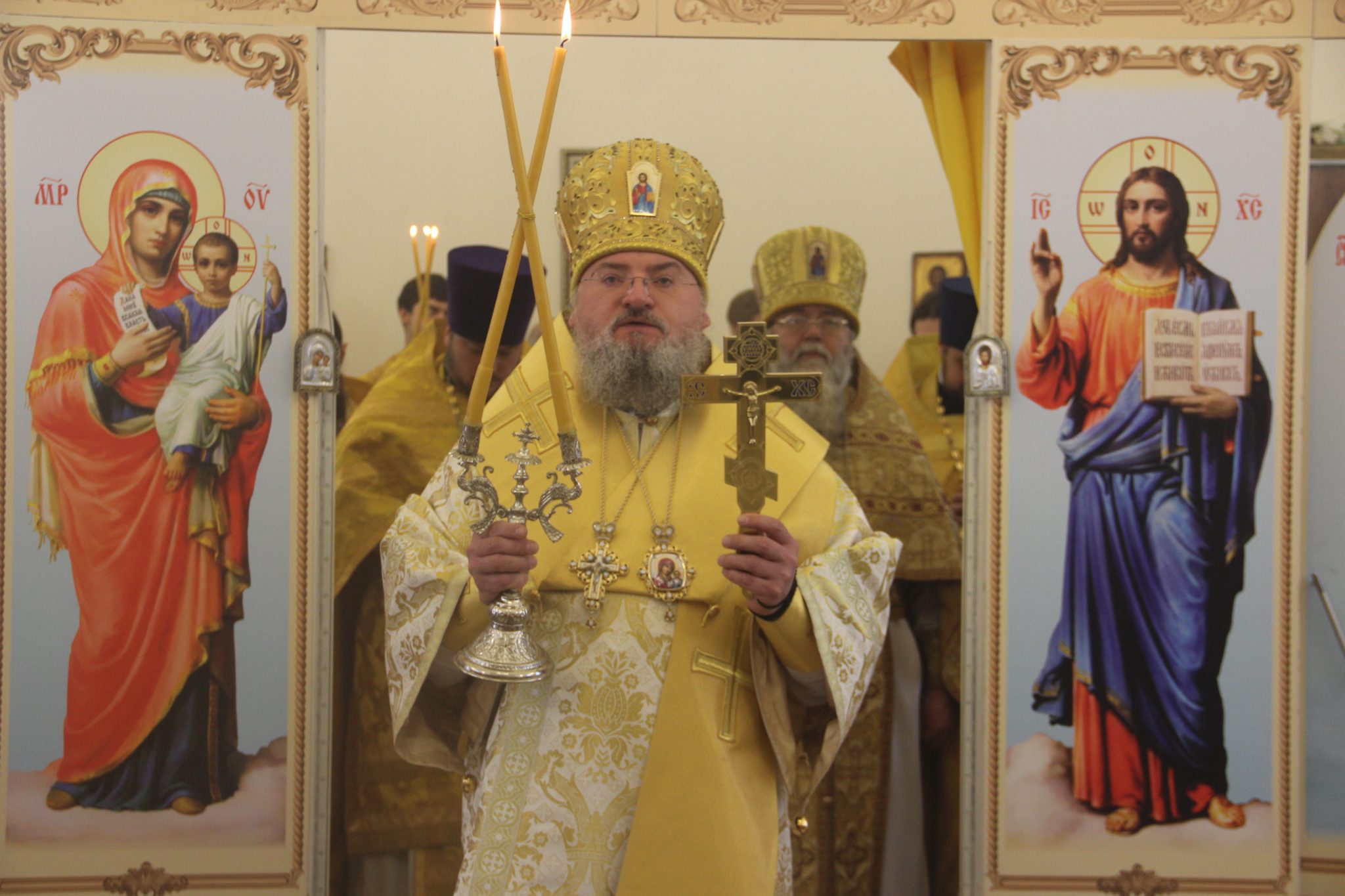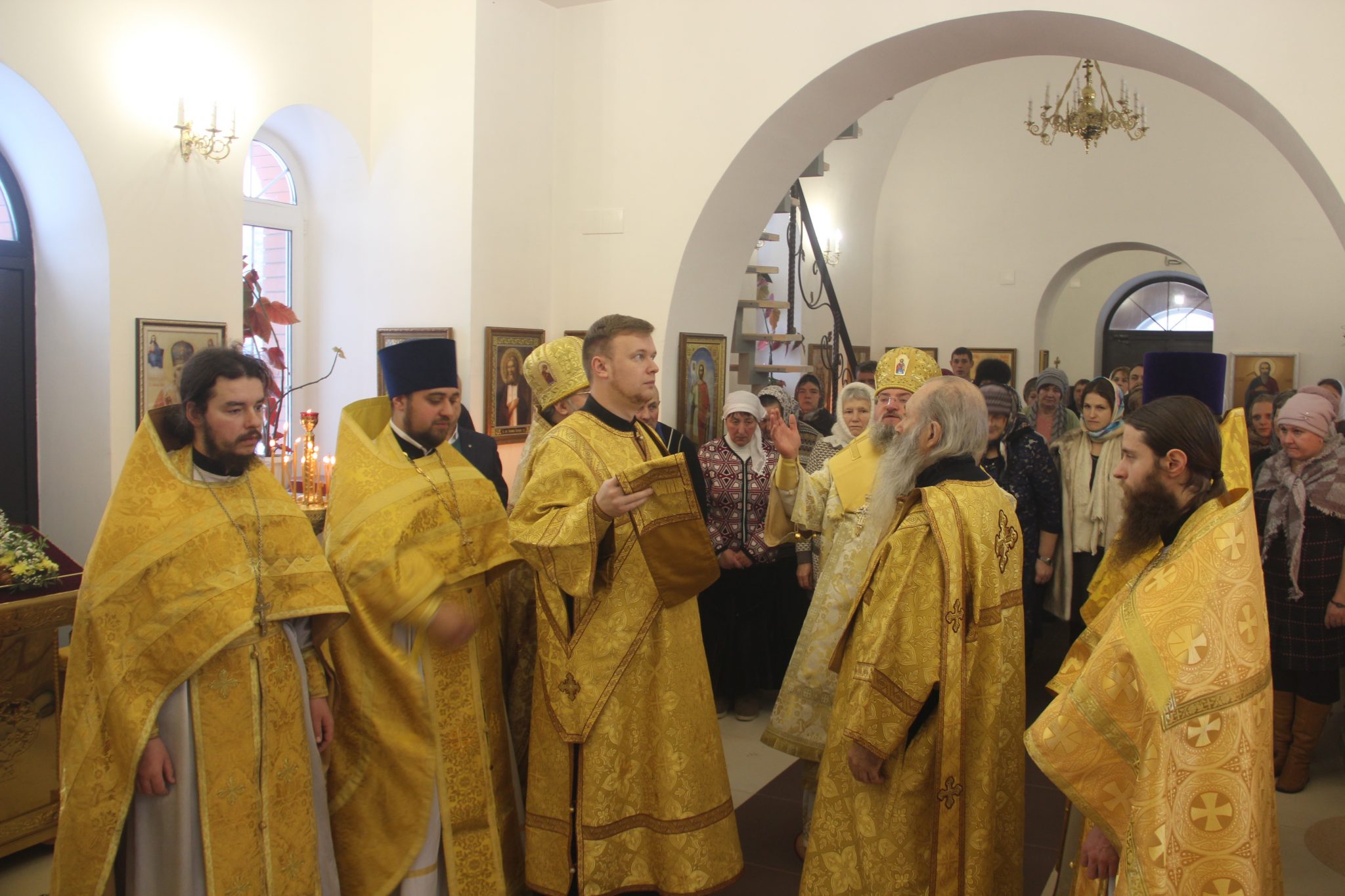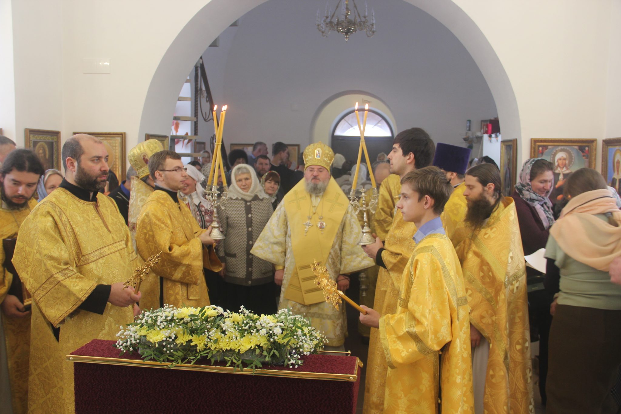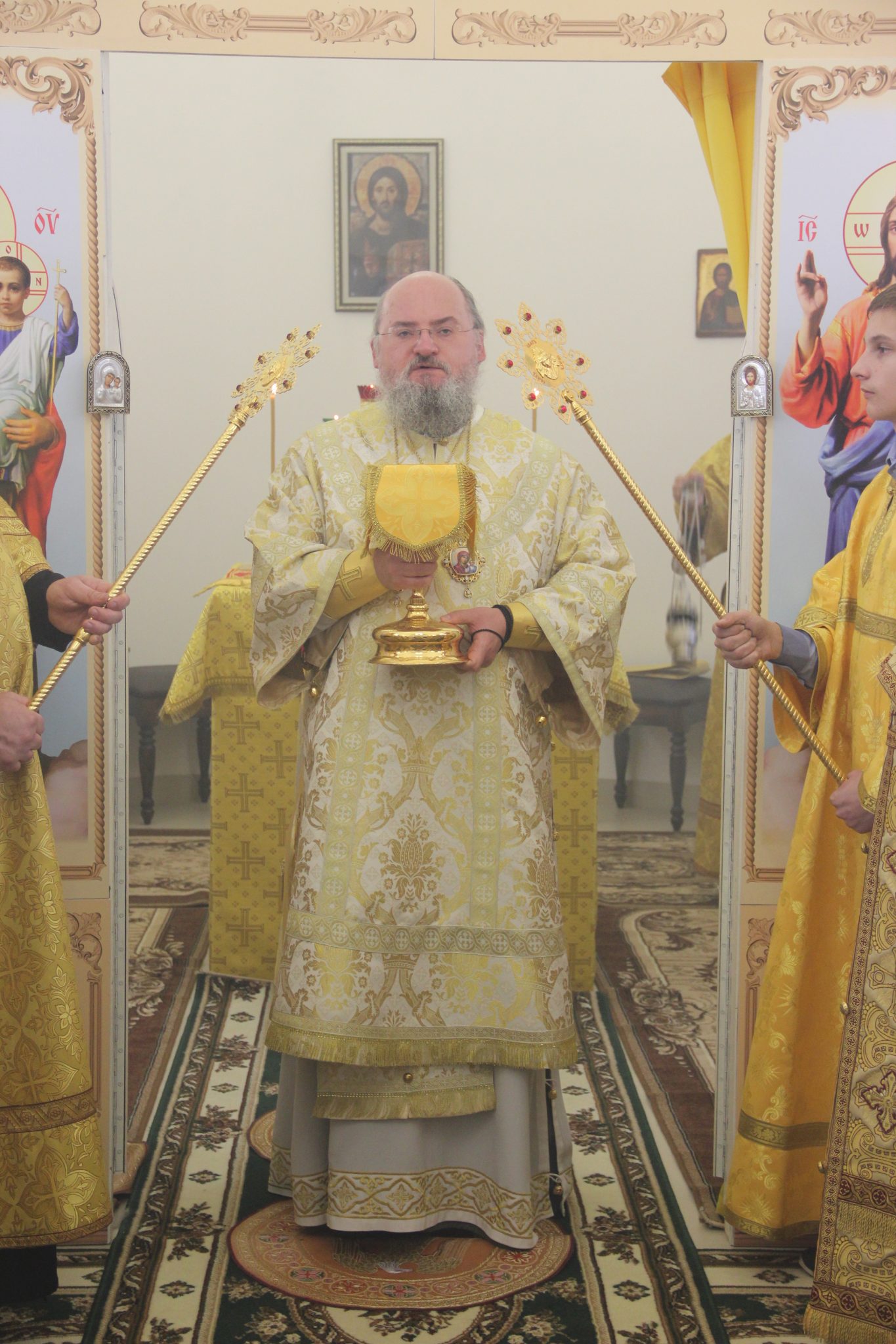 Его Преосвященству сослужили: духовник епархии протоиерей Алексий Жиганов, протоиерей Антоний Хатунцев, иерей Артемий Арутюнян – настоятель храма, иерей Алексий Ефименков, иерей Николай Безручкин, диакон Евгений Ковригин и иеродиакон Виталий (Павленко).