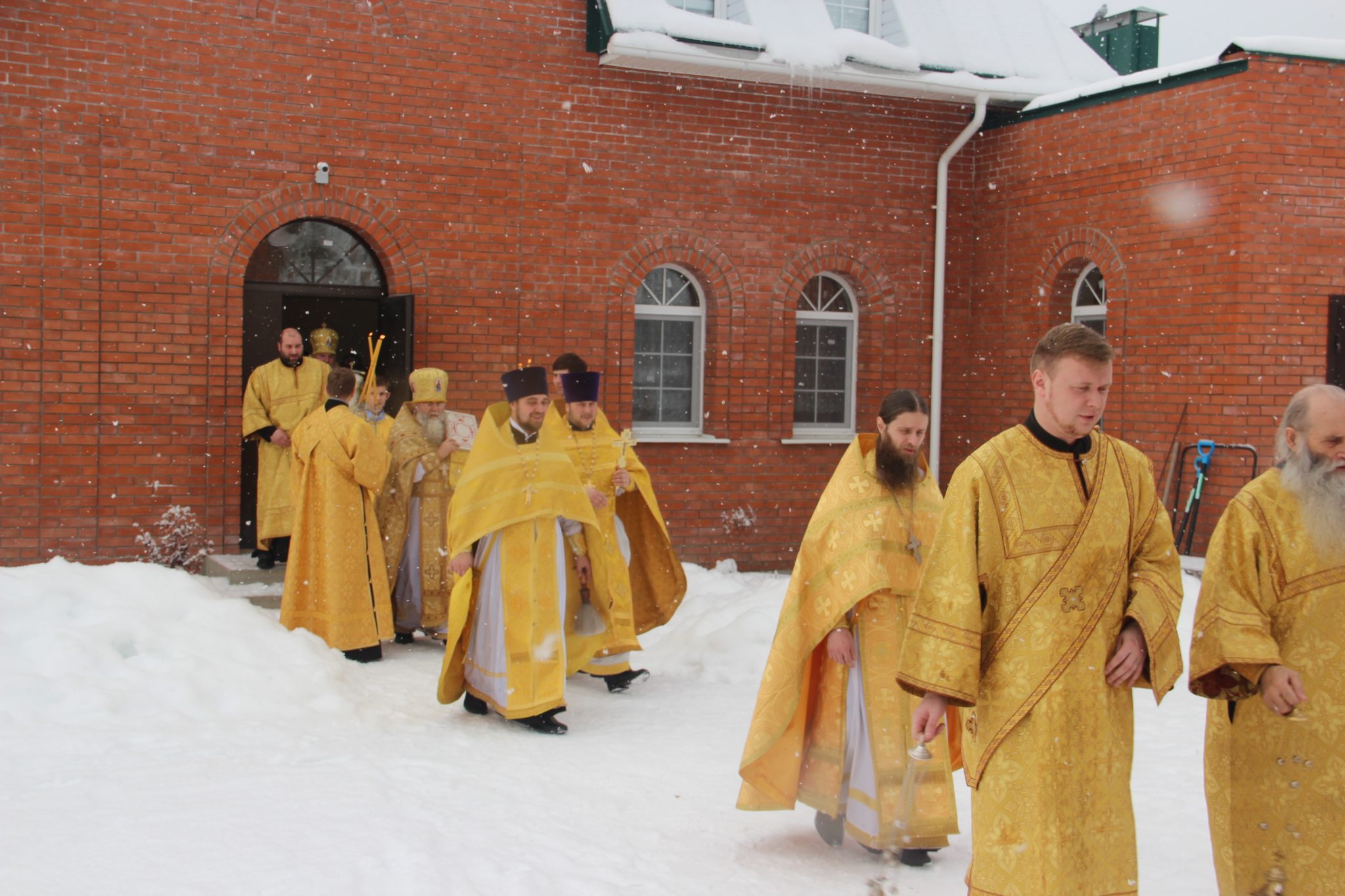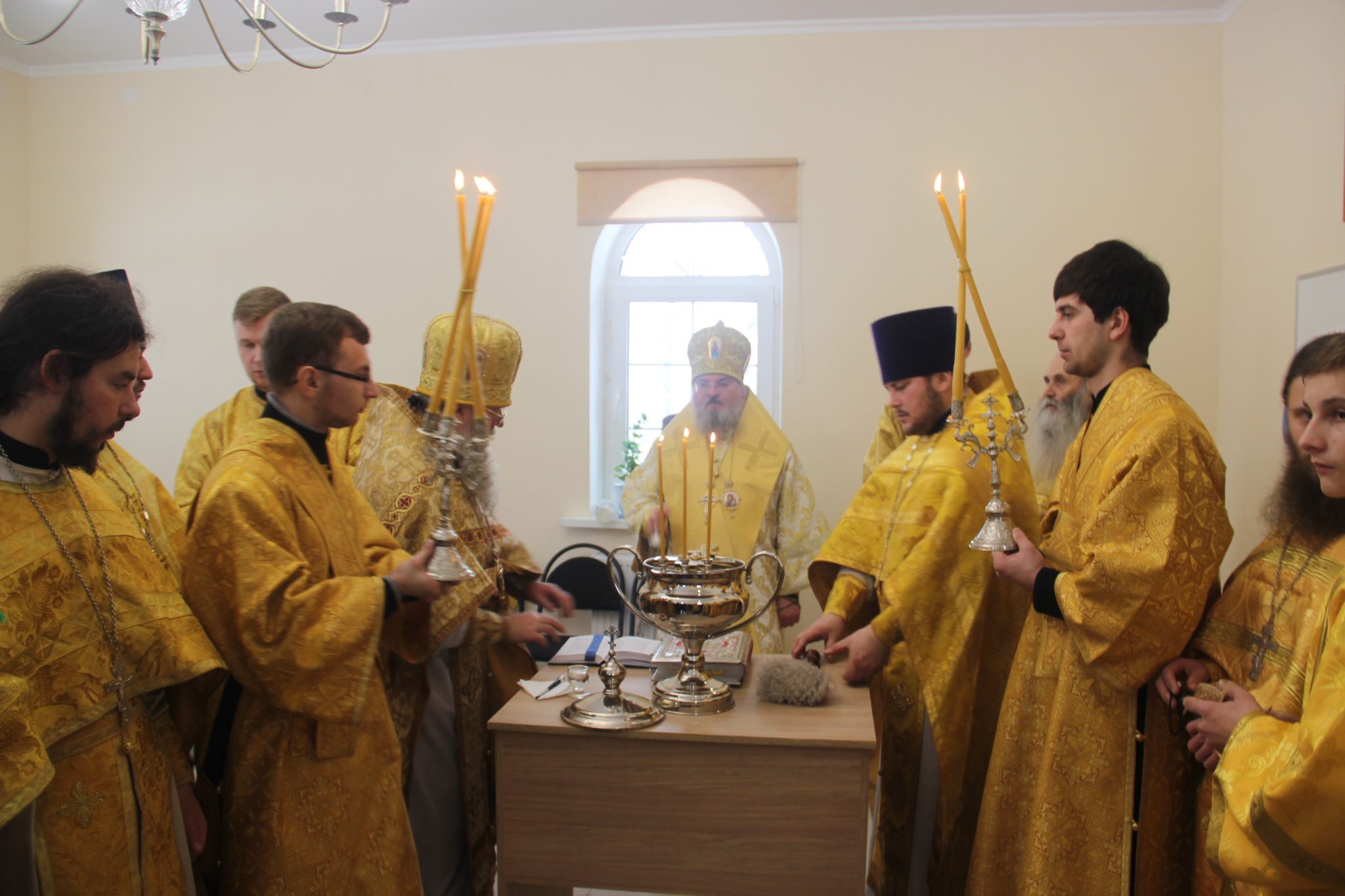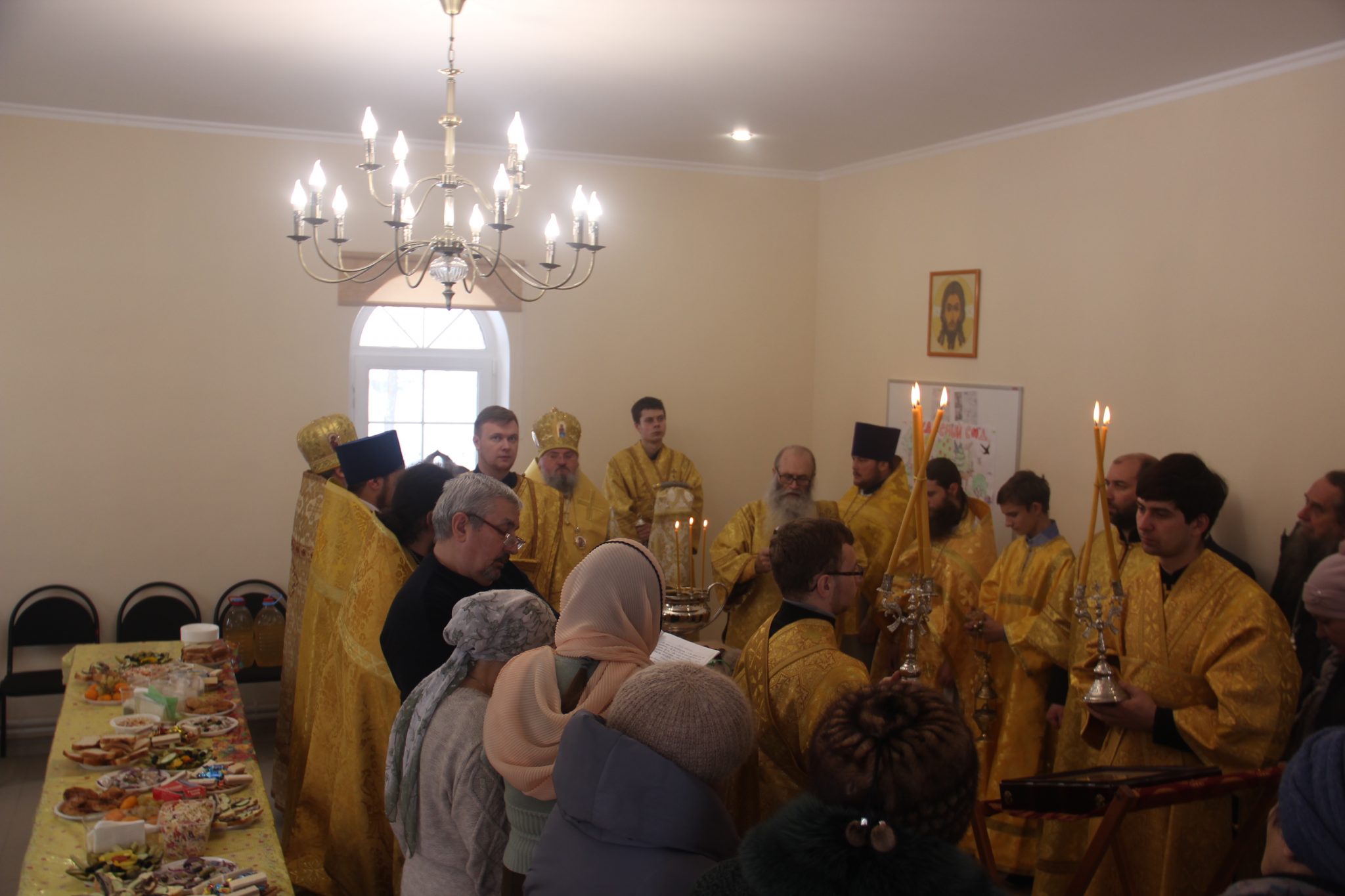 По отпусте литургии священнослужители совершили праздничный водосвятный молебен и освящение приходского центра с аудиториями для занятий детской воскресной школы, для бесед со взрослыми прихожанами, трапезной и жилыми помещениями.