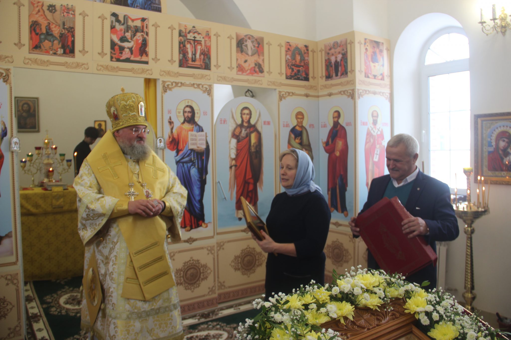 Архипастырь поздравил ктитора храма Николая Николаевича Кленова и священника Николая Безручкина с днем тезоименитства и преподнес им памятные подарки.