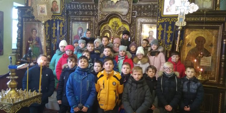 Школьники в Лазаревском храме города Людиново