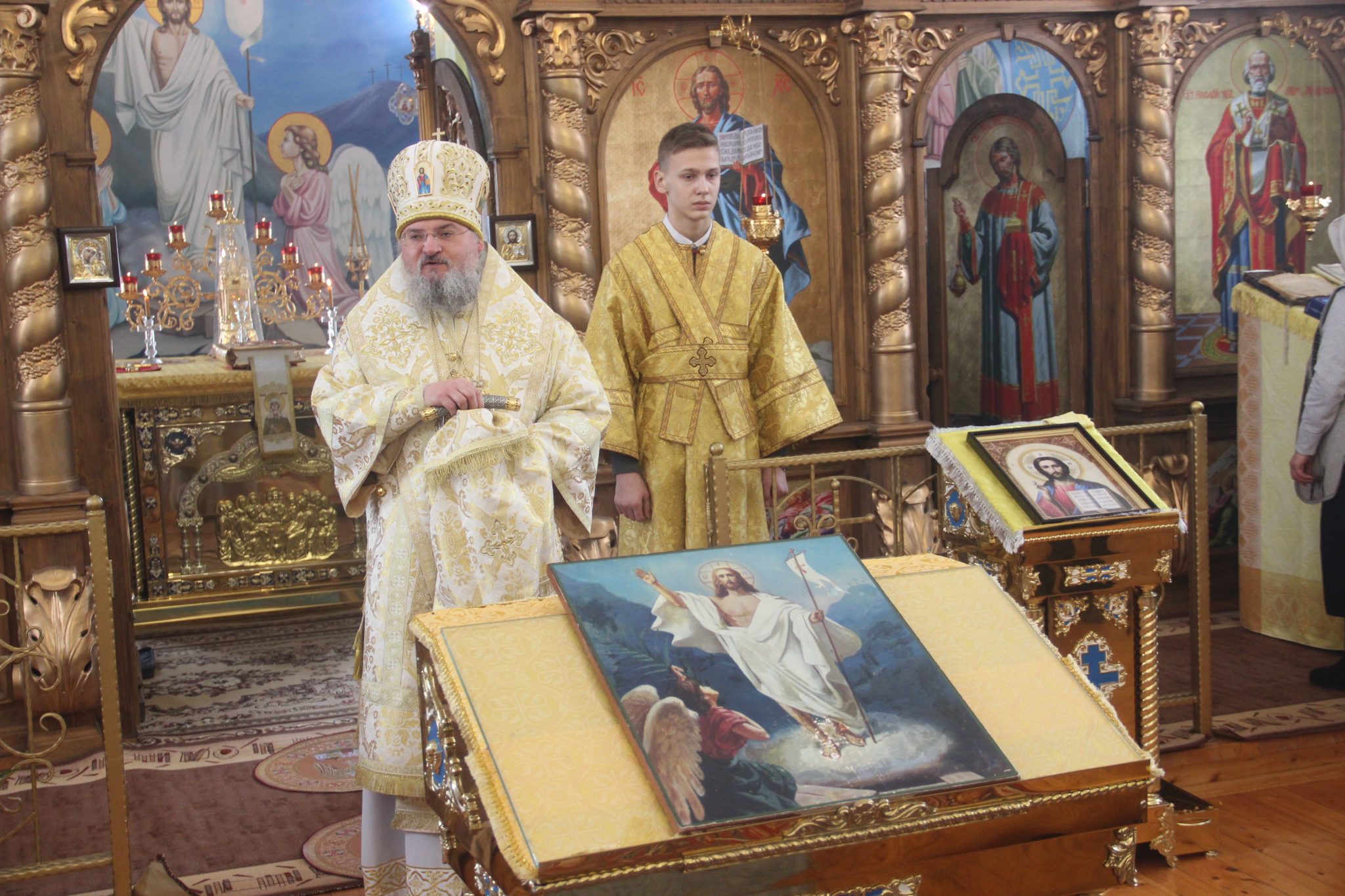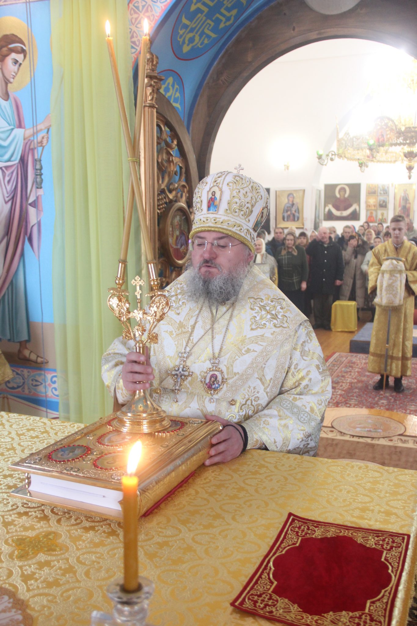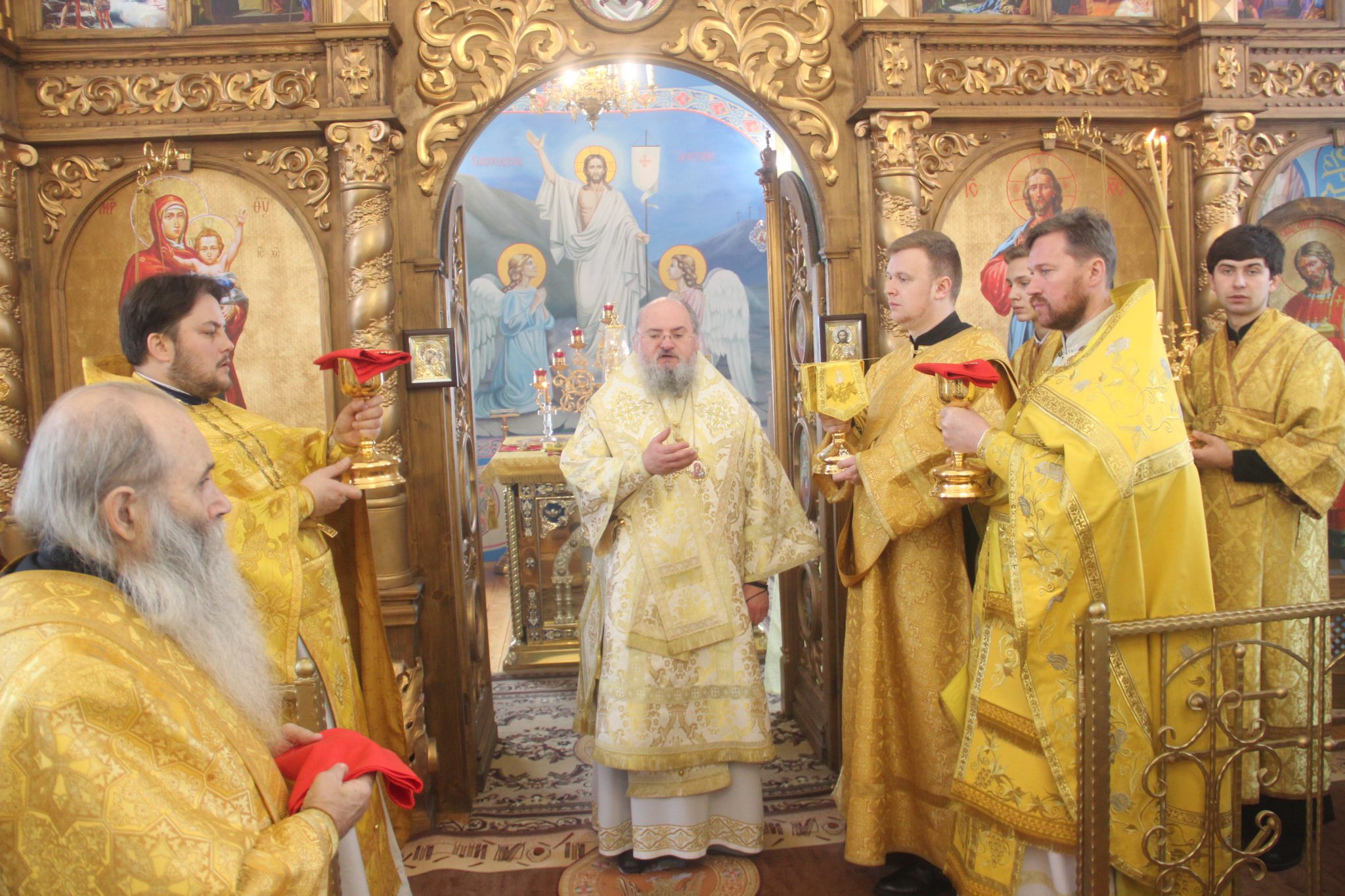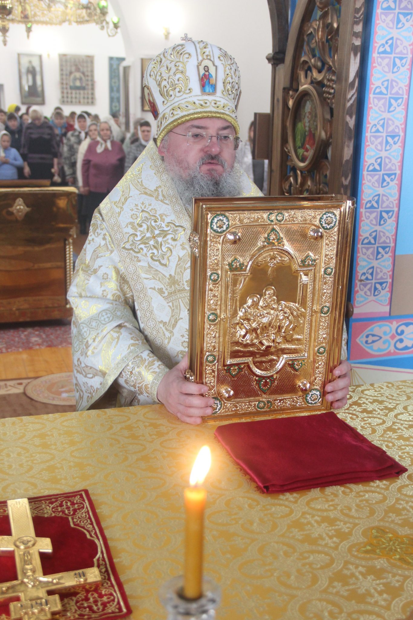 Его Преосвященству сослужили: настоятель храма протоиерей Александр Карпов, протоиерей Антоний Хатунцев, диакон Евгений Ковригин и иеродиакон Виталий (Павленко). По отпусте литургии владыка обратился к богомольцам с архипастырским словом.