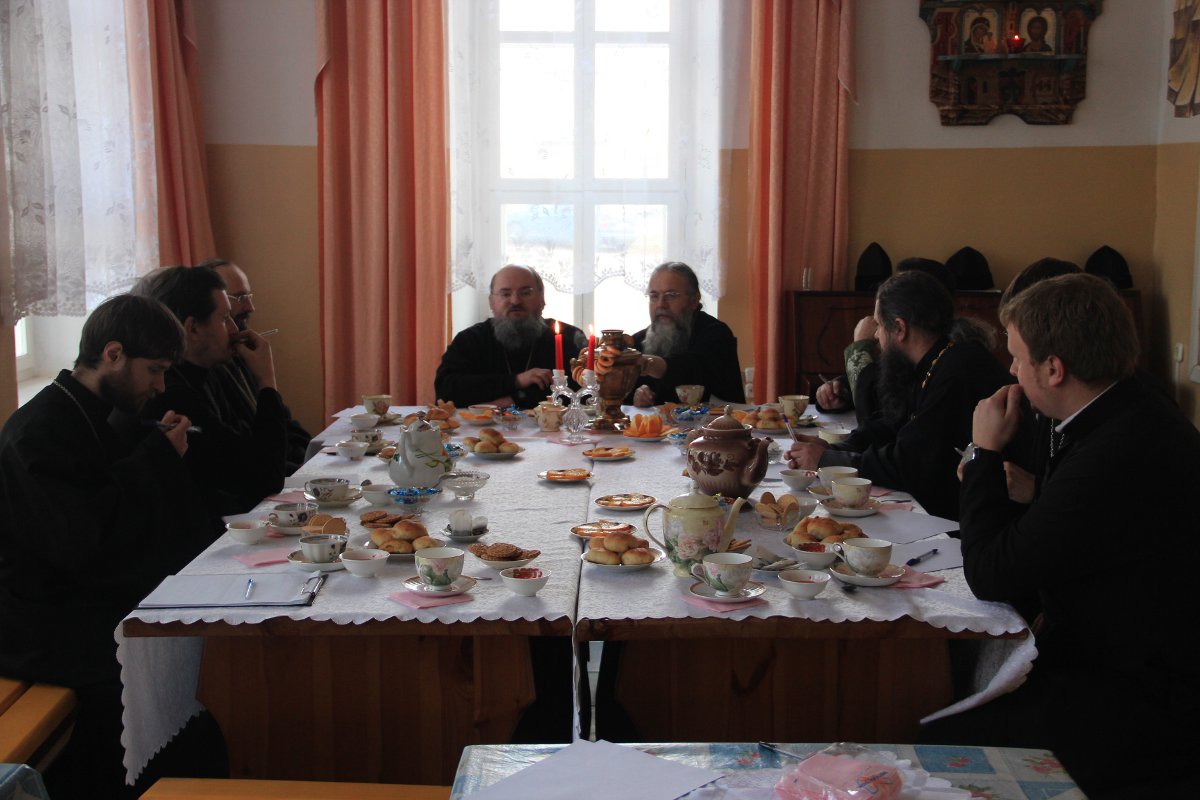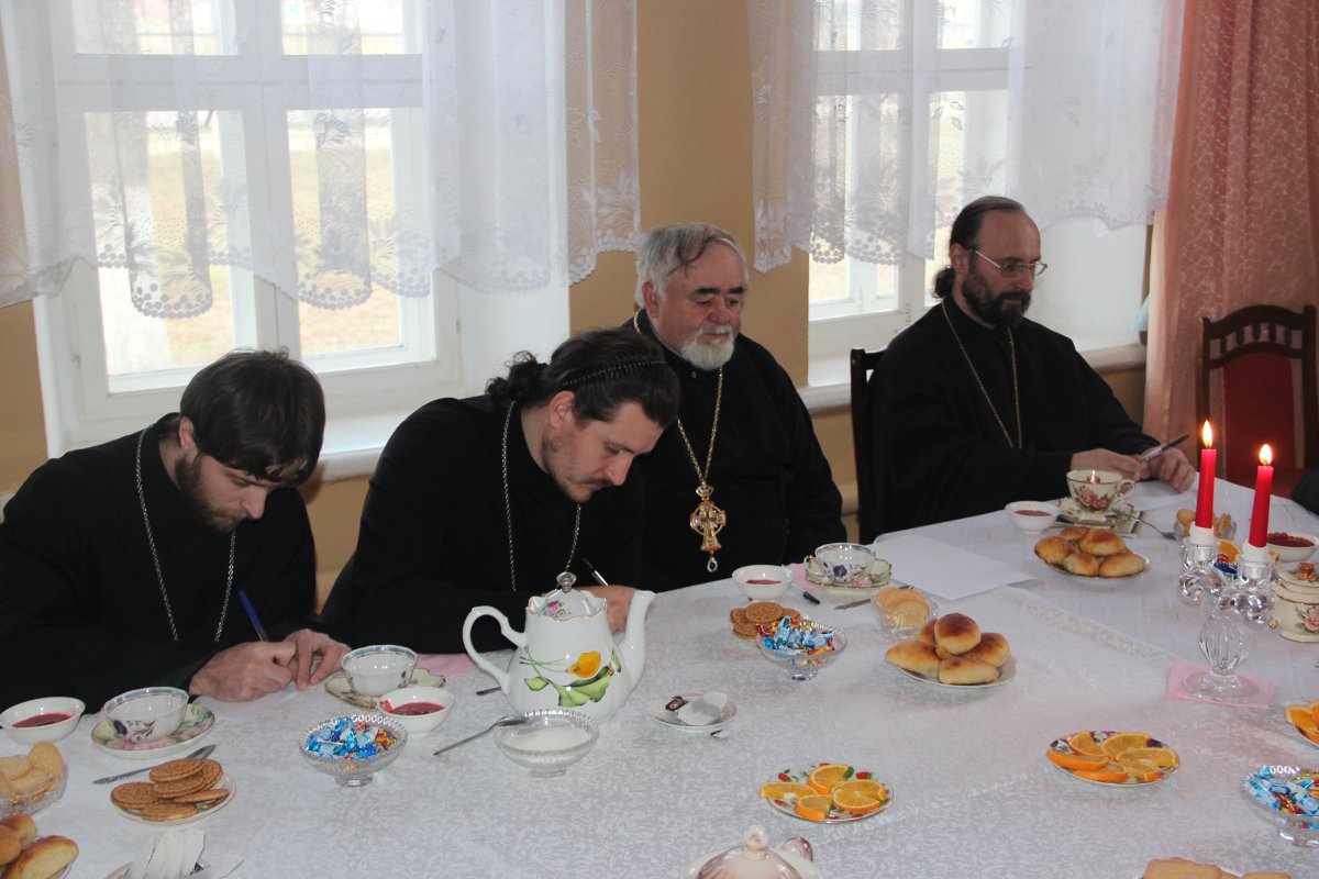 К обсуждению были предложены вопросы проведения рождественских мероприятий, своевременной подачи годовых отчетов, помощи Калужской духовной семинарии и другие вопросы приходской жизни благочиния.
