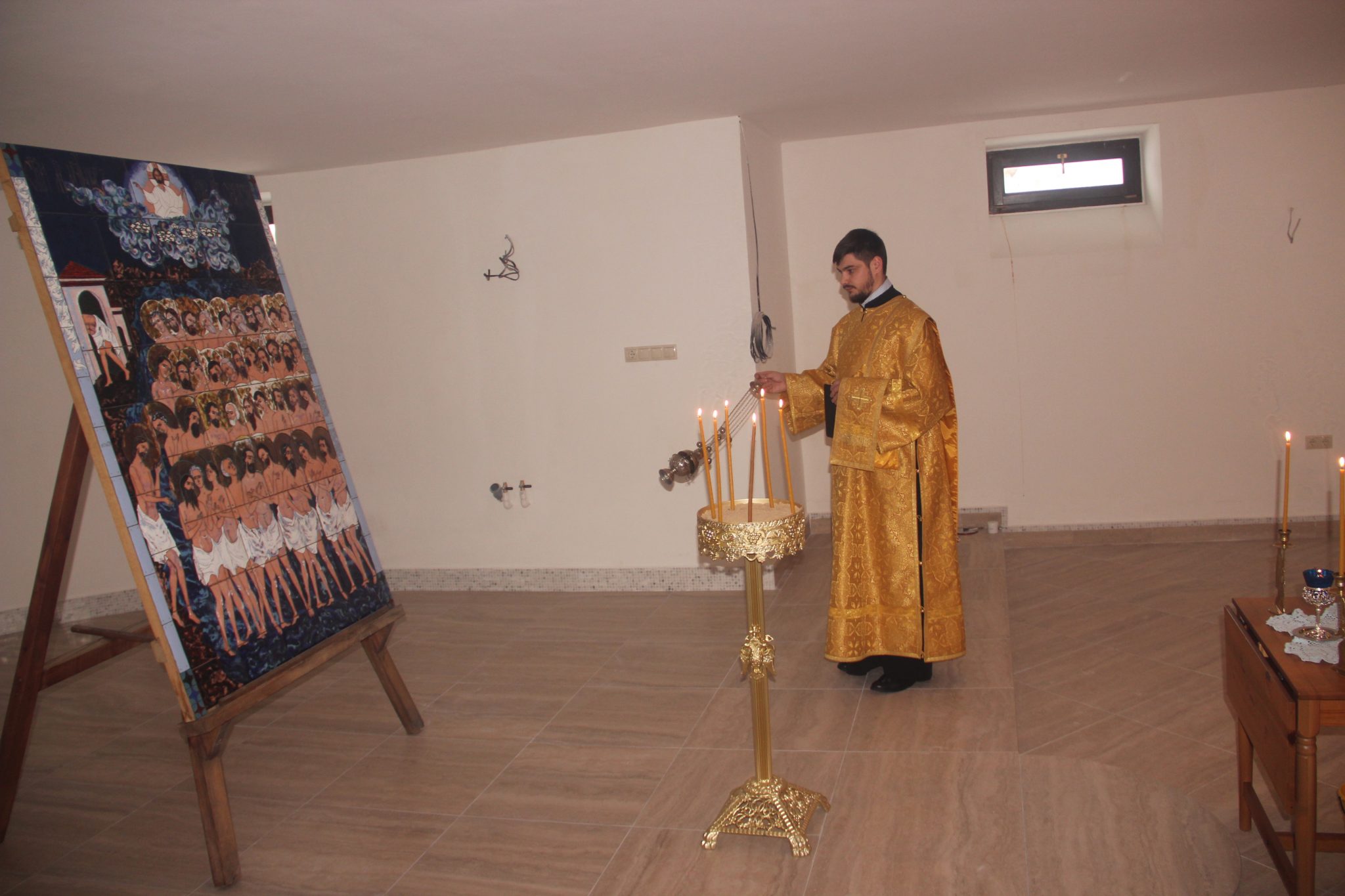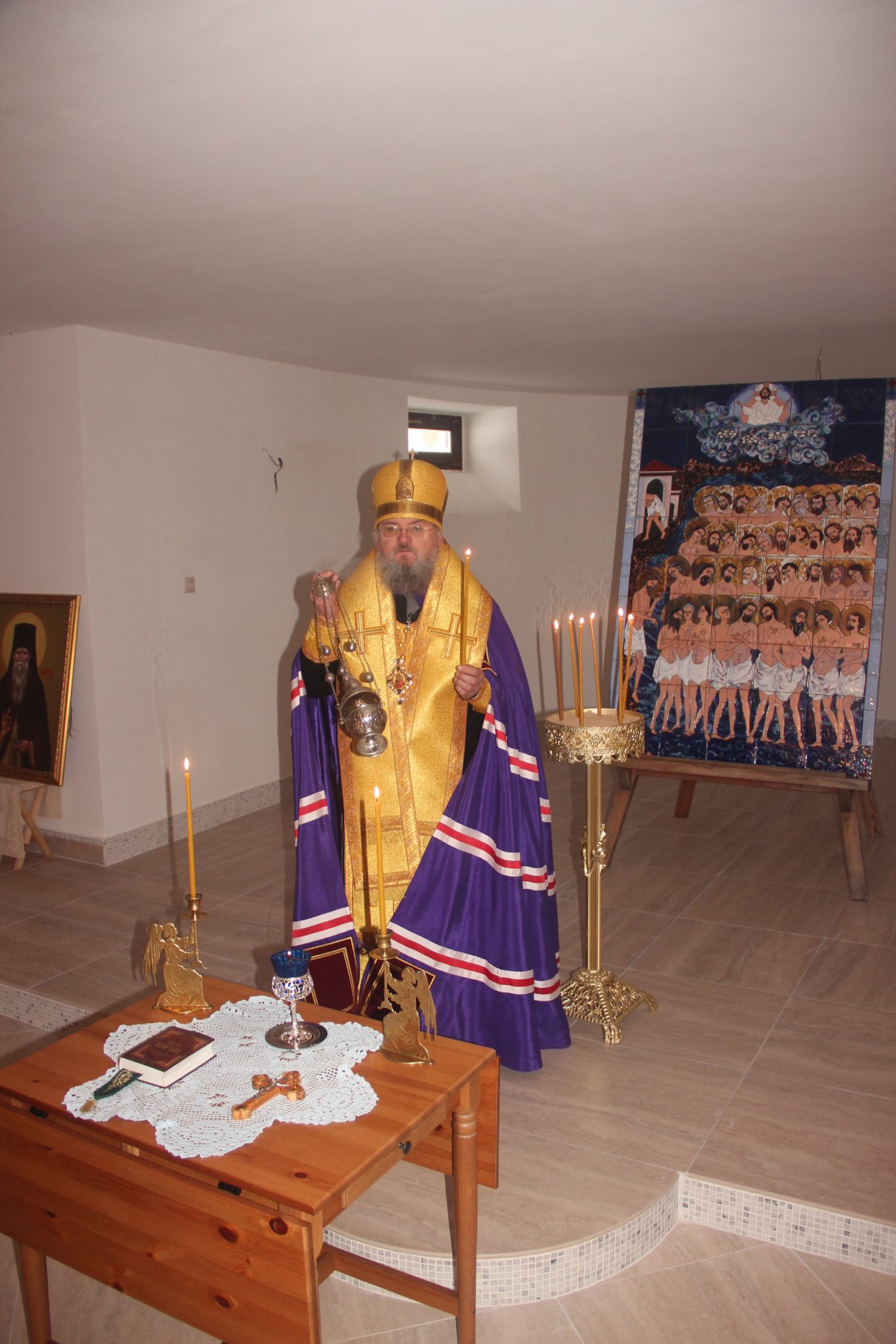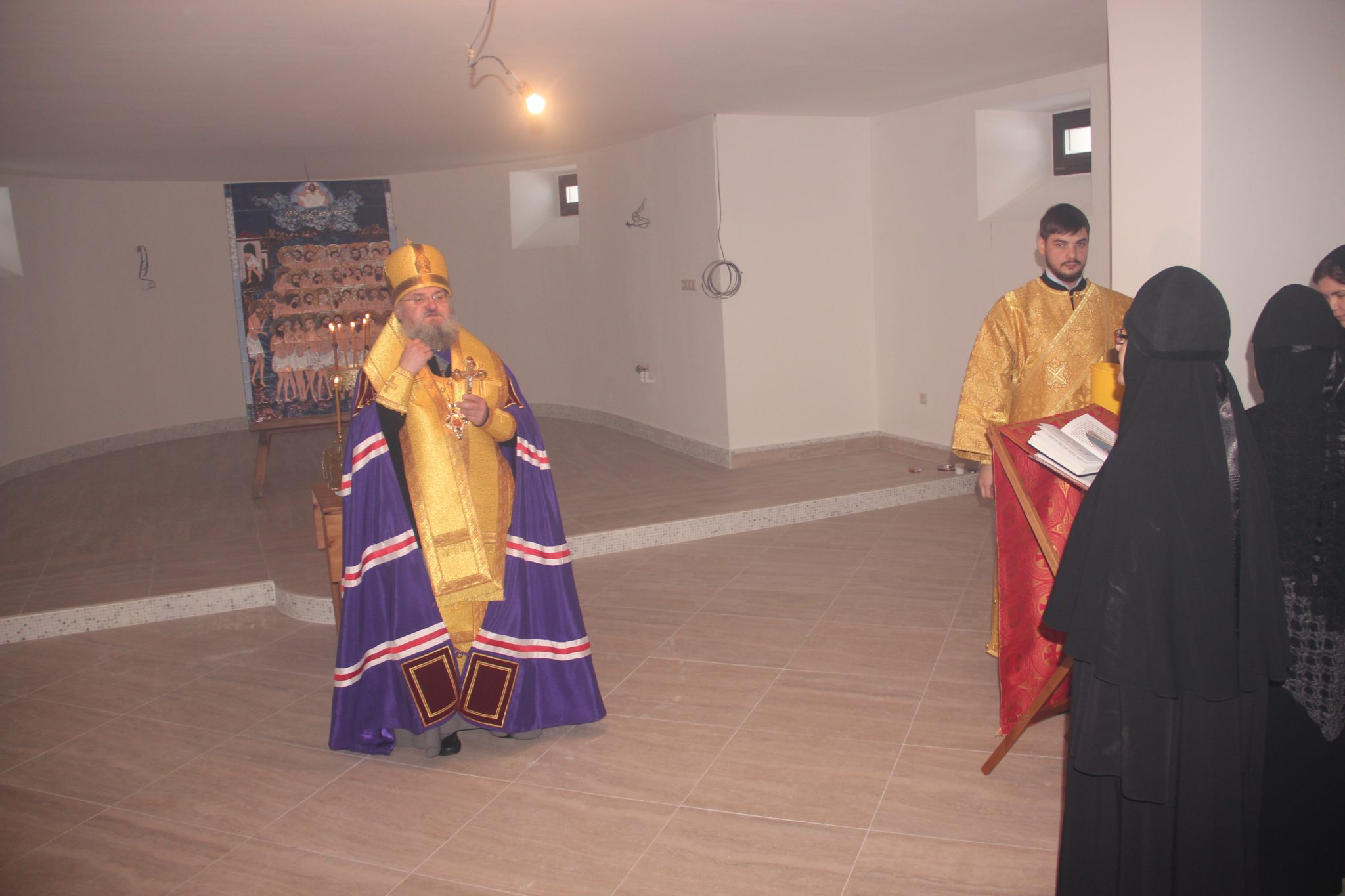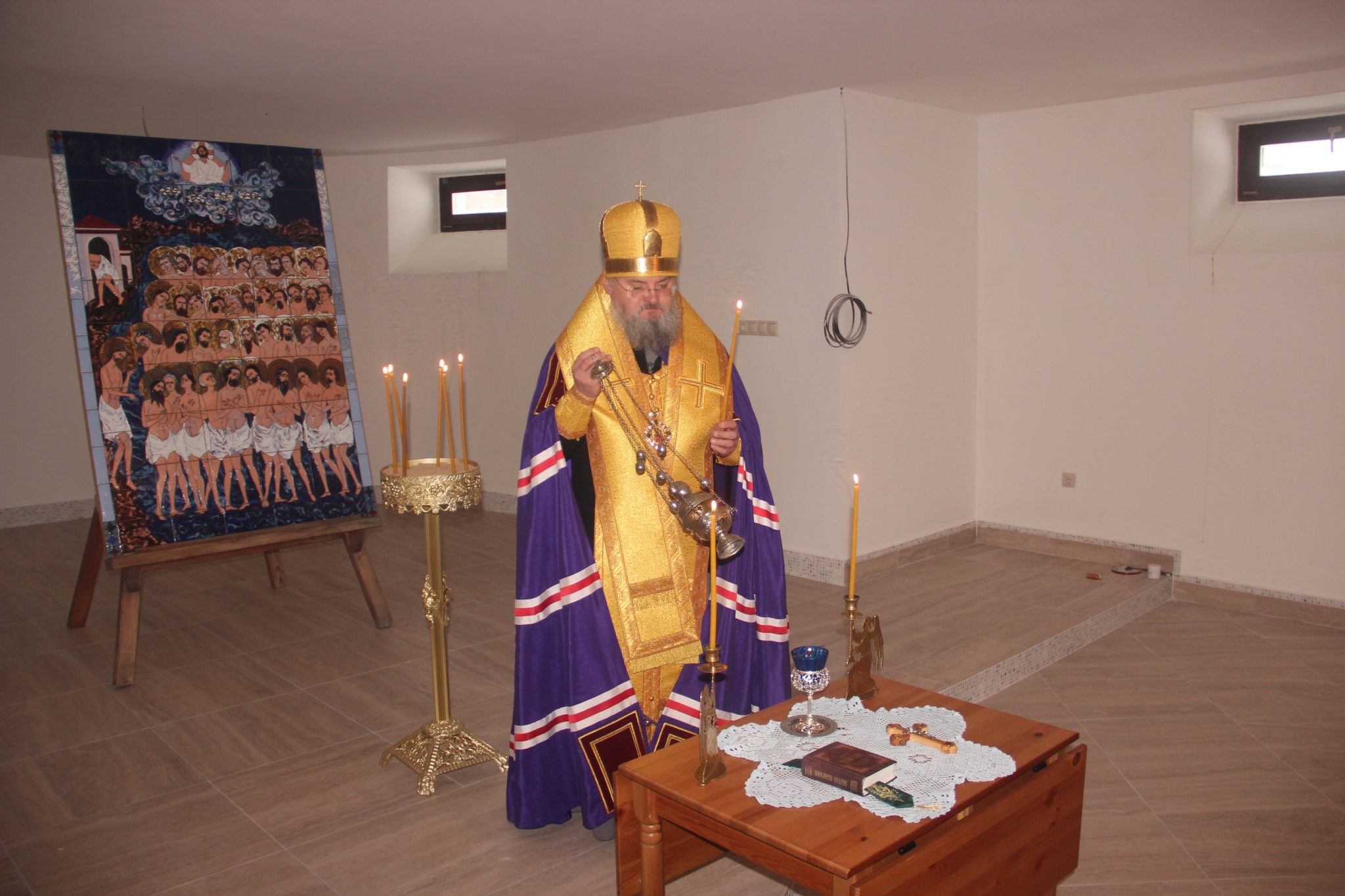 Владыка осмотрел строительство и совершил благодарственный молебен с акафистом святым мученикам Севастийским в нижнем храме, который планируется освятить в честь одного из сорока мучеников – Илия.