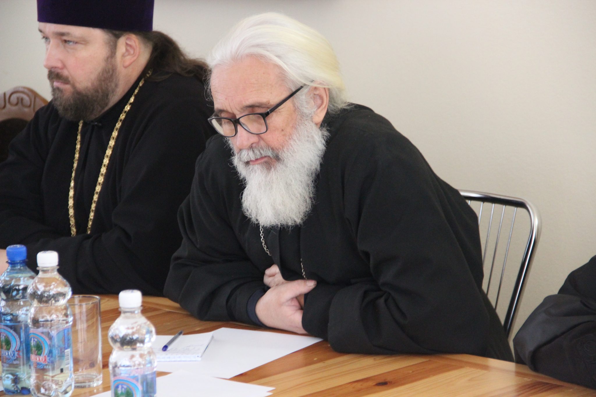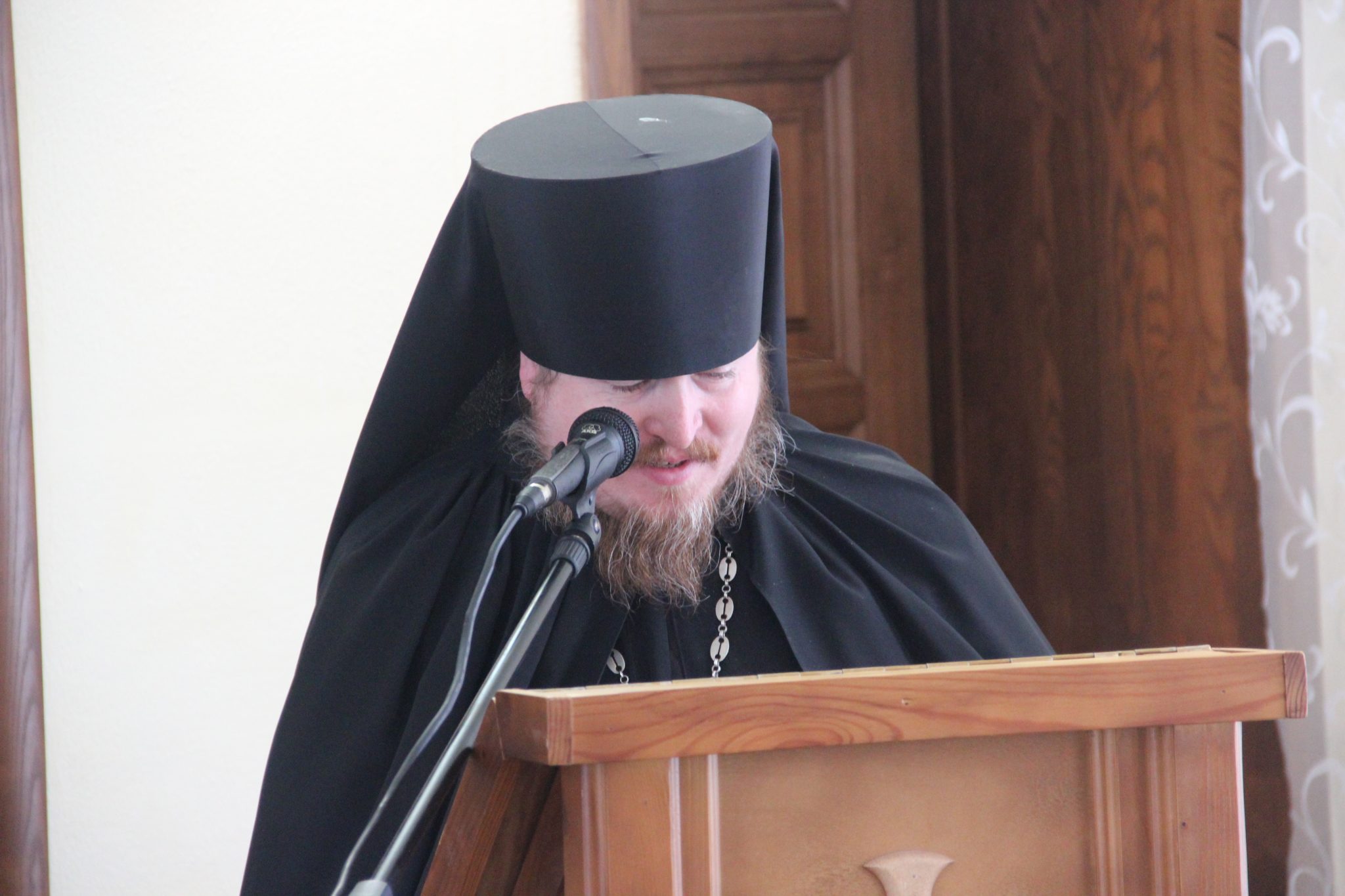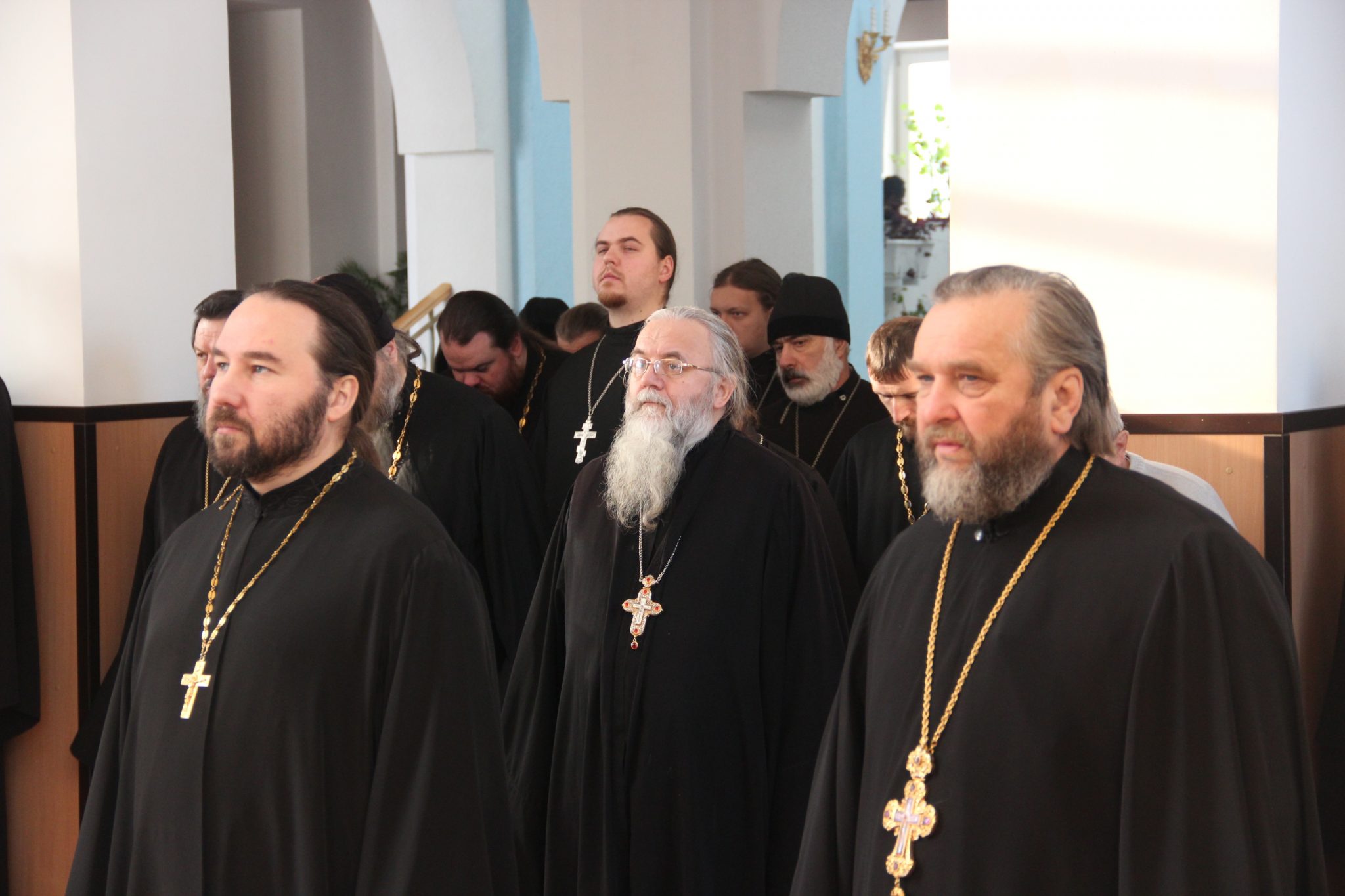 Собрание предварил молебен перед началом всякого доброго дела который совершил Преосвященнейший Никита в храме преподобного священномученика Кукши Киево-Печерского, просветителя вятичей.