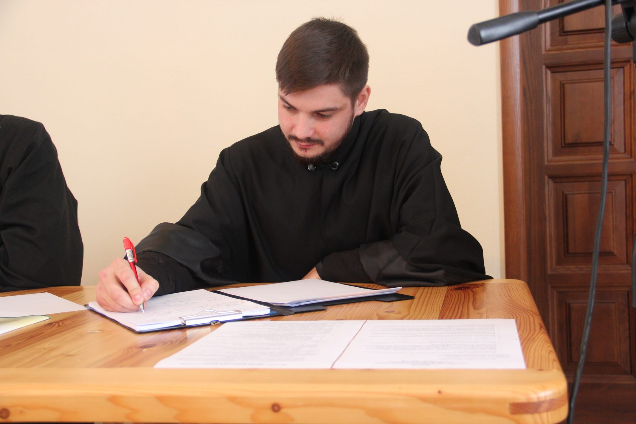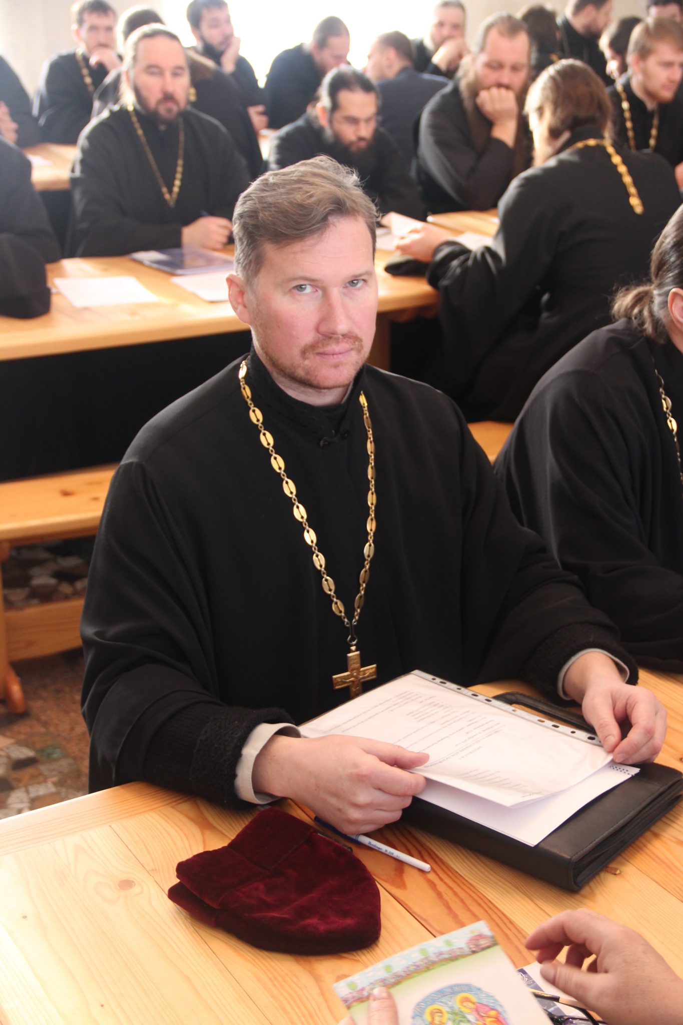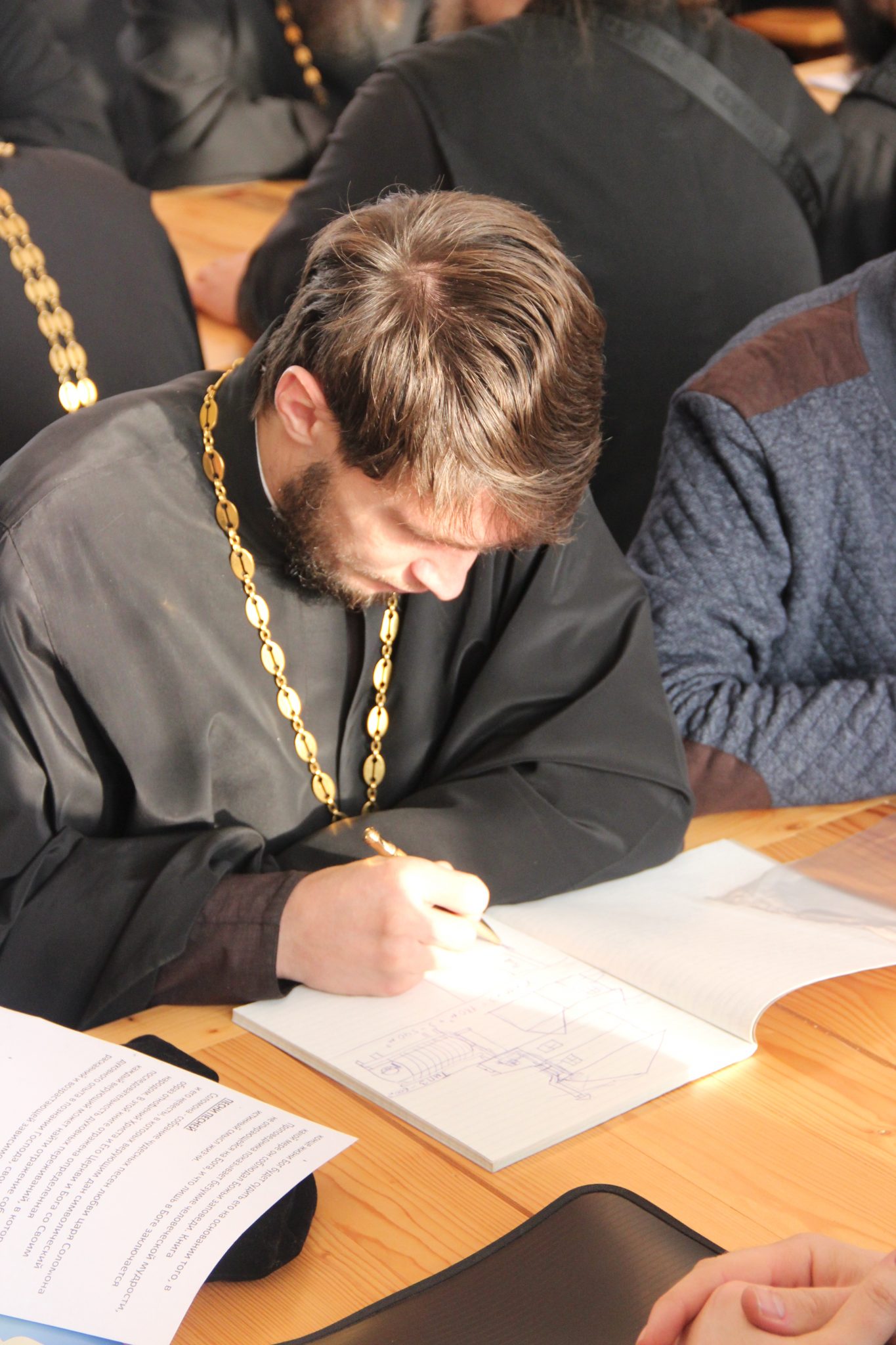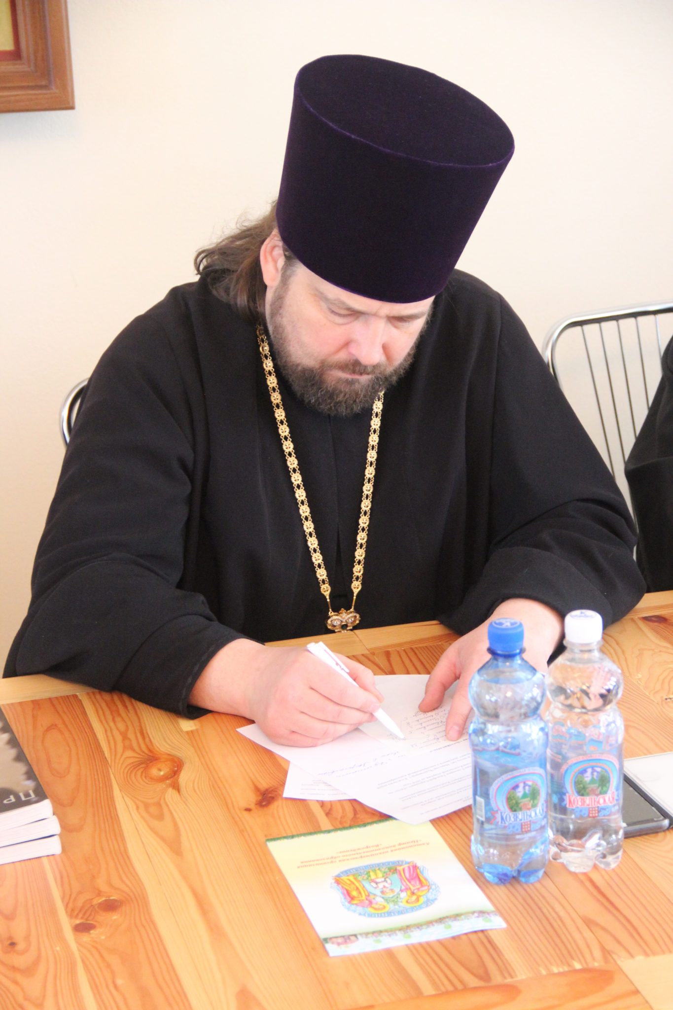 Собрание предварил молебен перед началом всякого доброго дела который совершил Преосвященнейший Никита в храме преподобного священномученика Кукши Киево-Печерского, просветителя вятичей.
