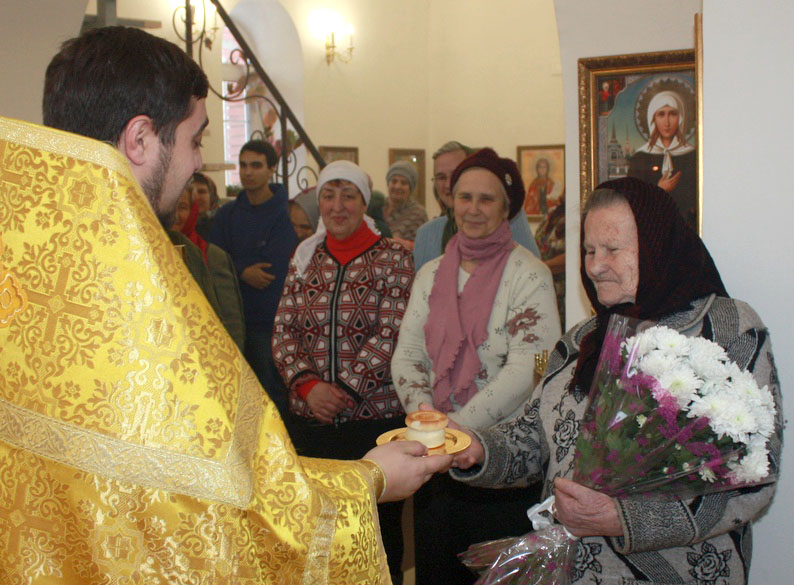 Таким человеком является и Мария Тихоновна. 30 декабря настоятель храма иерей Артемий Арутюнян вместе с прихожанами сердечно поздравил Марию Тихоновну с 90-летием. Бабушке Маше, так чаще теперь с теплом называют её, пожелали здоровья, радости сердечной и душевной.