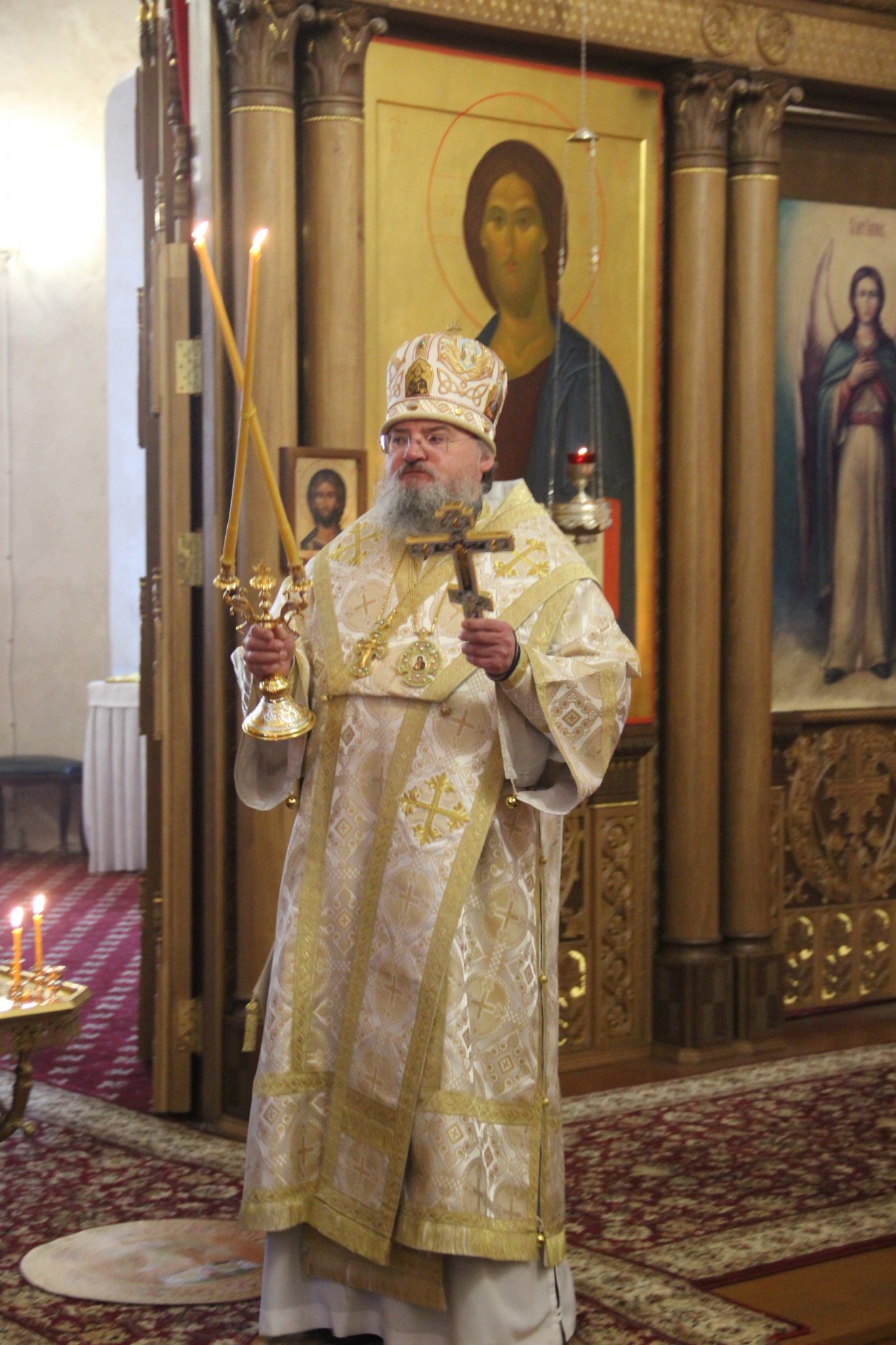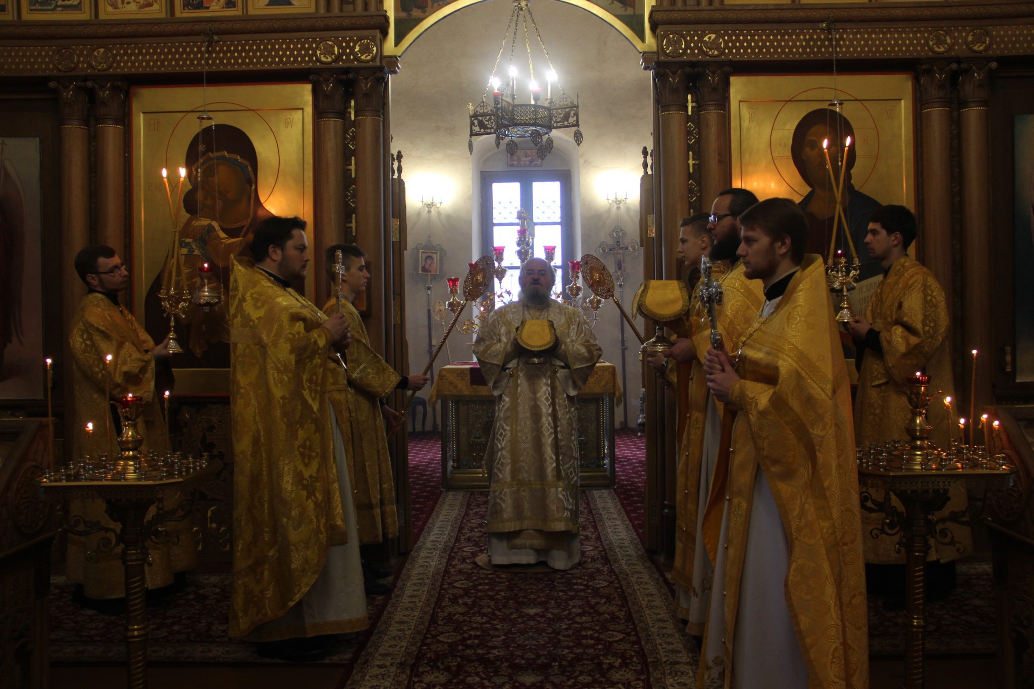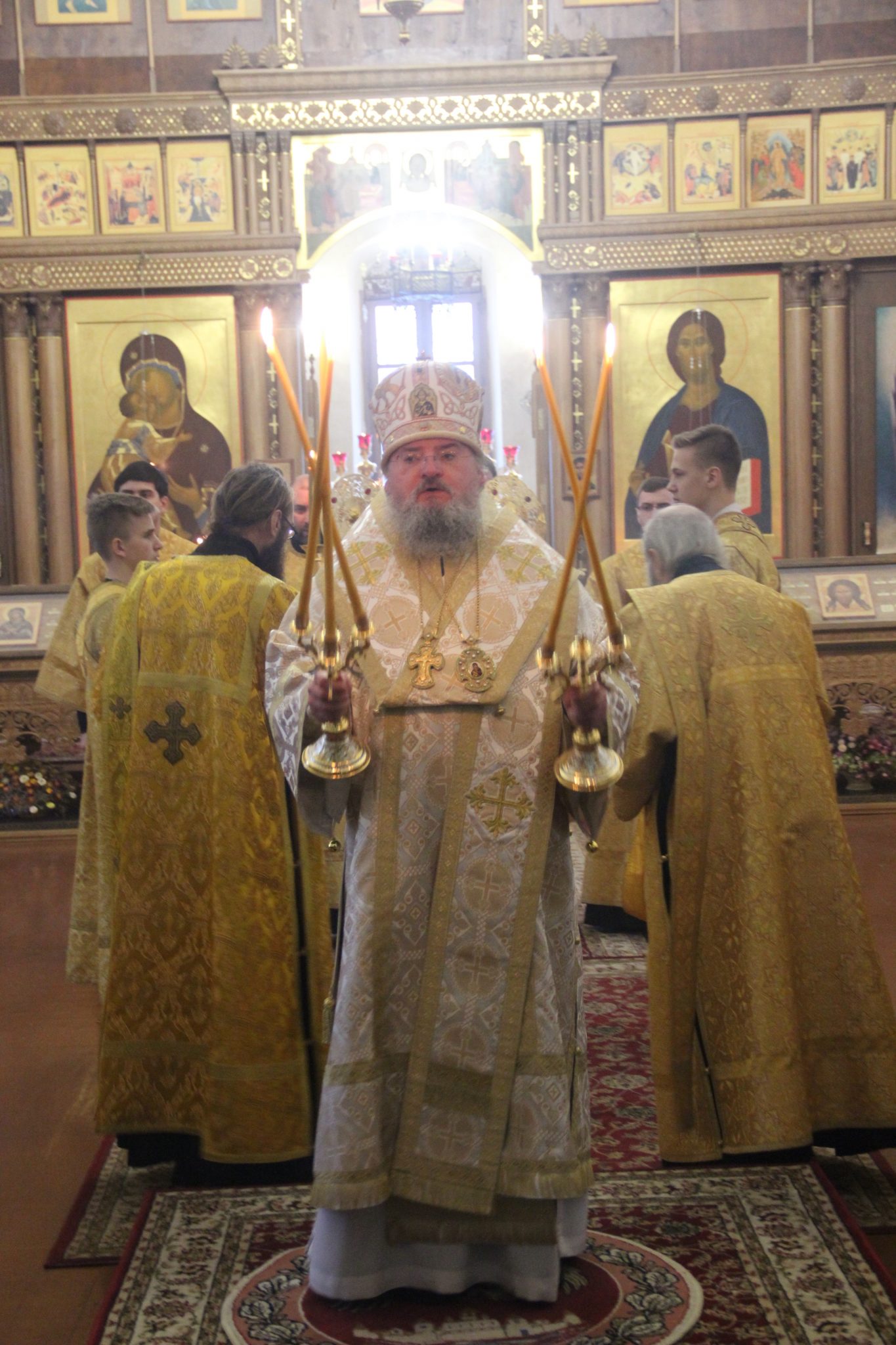 Архипастырю сослужили: иеромонах Паисий (Курмаз) – настоятель собора, протоиерей Антоний Хатунцев, иерей Елисей Тимофеев, диакон Евгений Ковригин, диакон Димитрий Лутков и иеродиакон Виталий (Павленко).