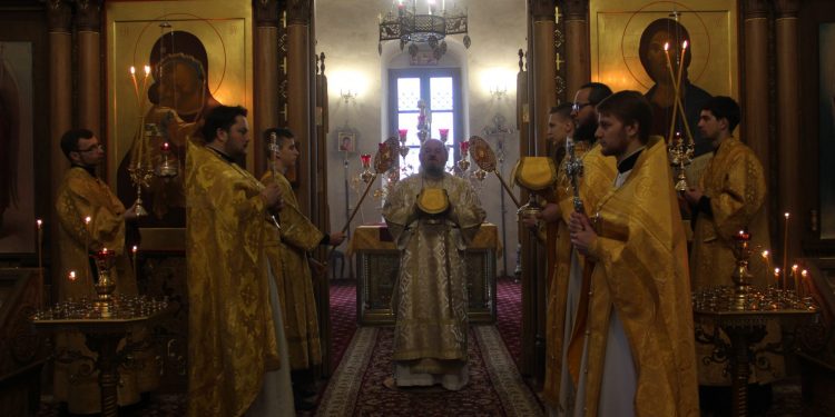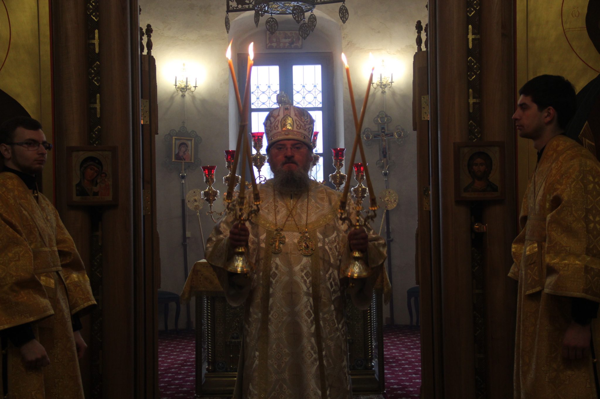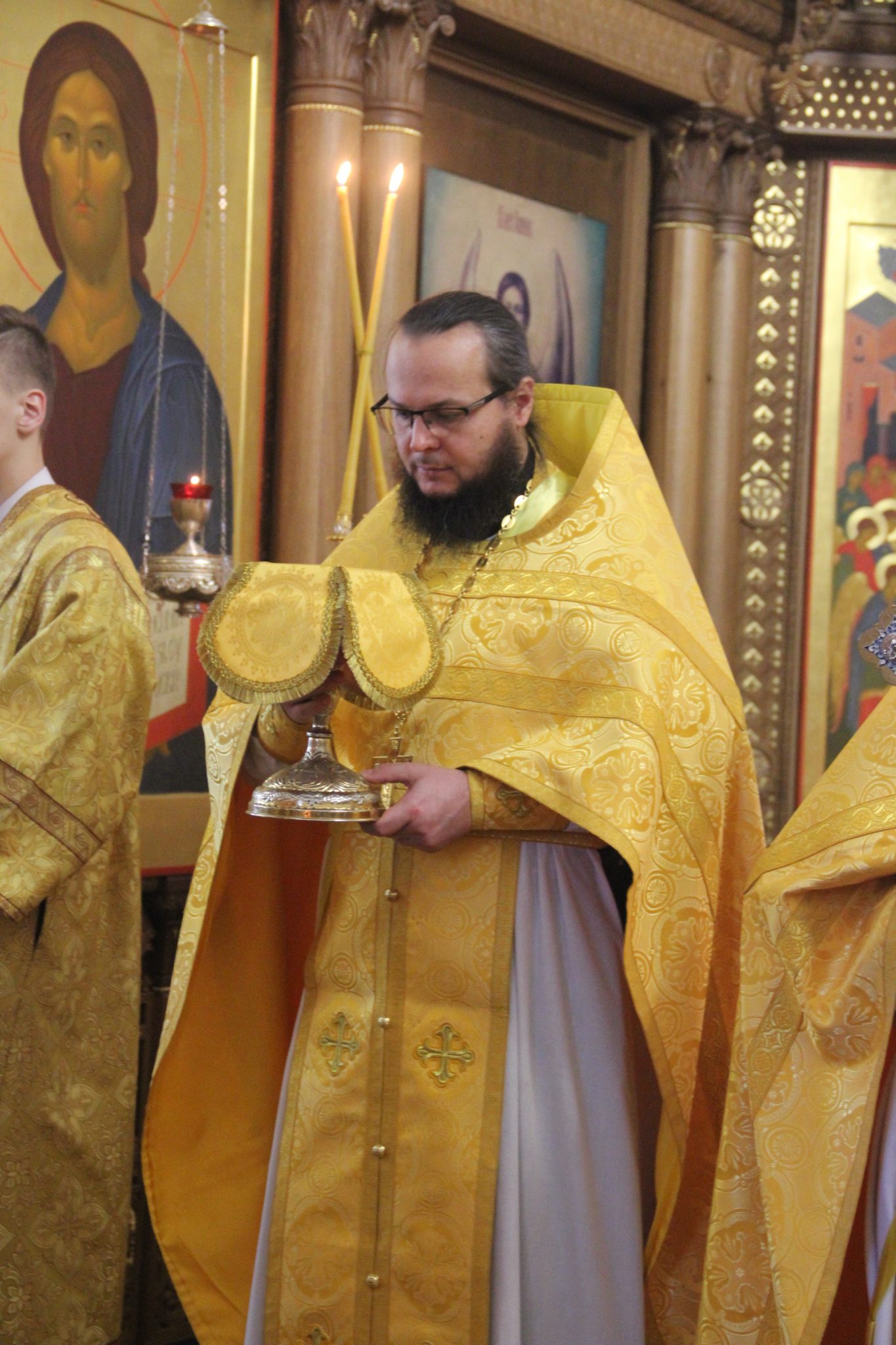 Архипастырю сослужили: иеромонах Паисий (Курмаз) – настоятель собора, протоиерей Антоний Хатунцев, иерей Елисей Тимофеев, диакон Евгений Ковригин, диакон Димитрий Лутков и иеродиакон Виталий (Павленко).