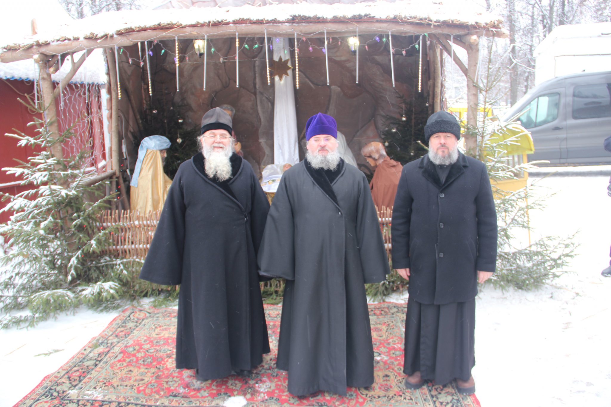 5 января после Божественной литургии в Казанском соборе города Людинова у его стен епископ Козельский и Людиновский Никита открыл праздничную Рождественскую композицию.