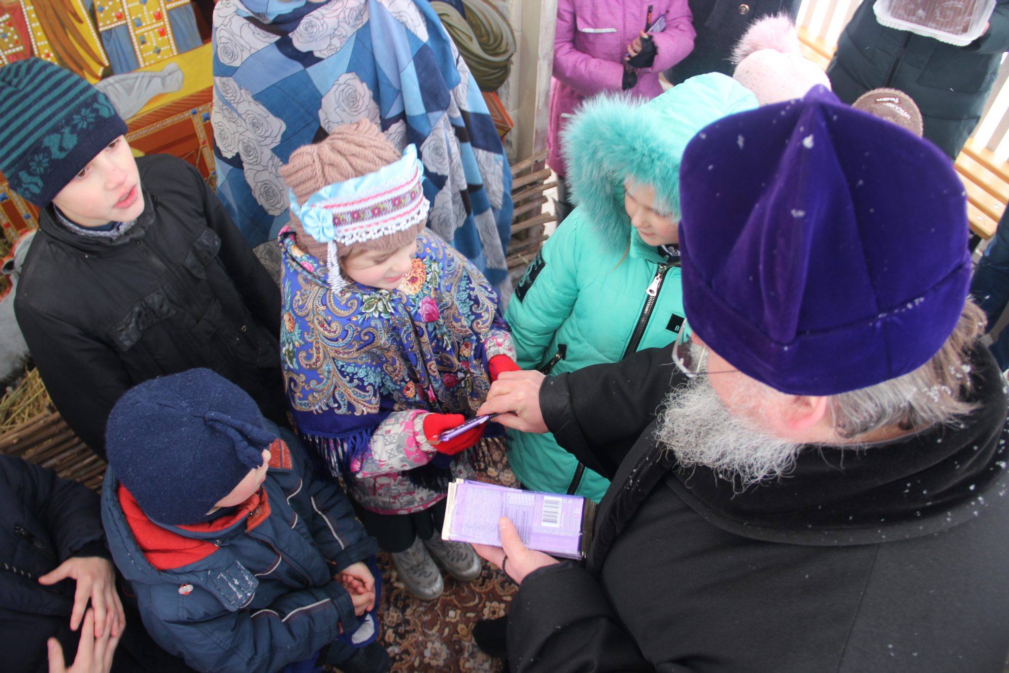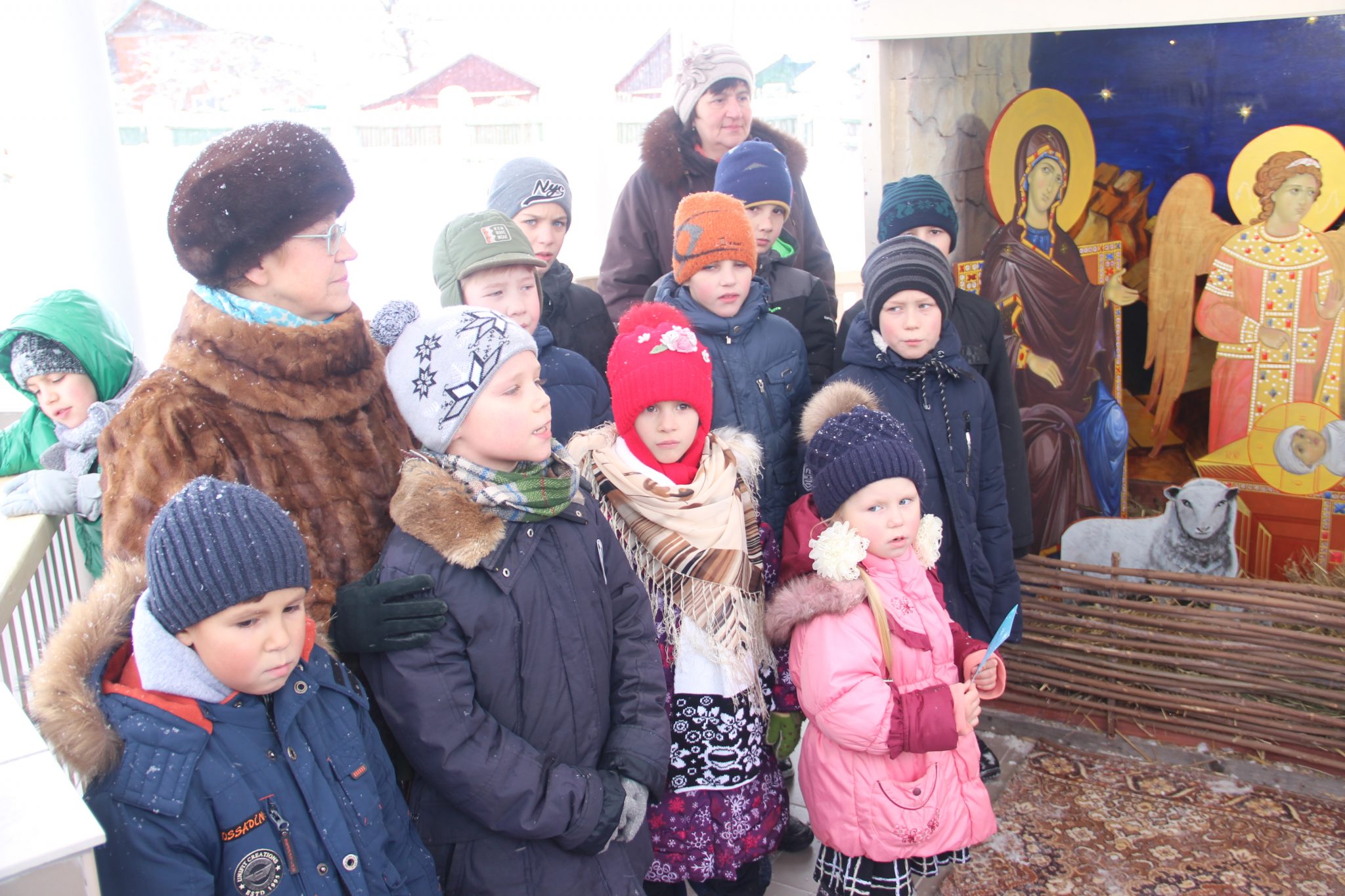 На открытии выступили воспитанники воскресной школы храма. Ребята читали стихи и исполняли песни посвященные Рождеству Христову.