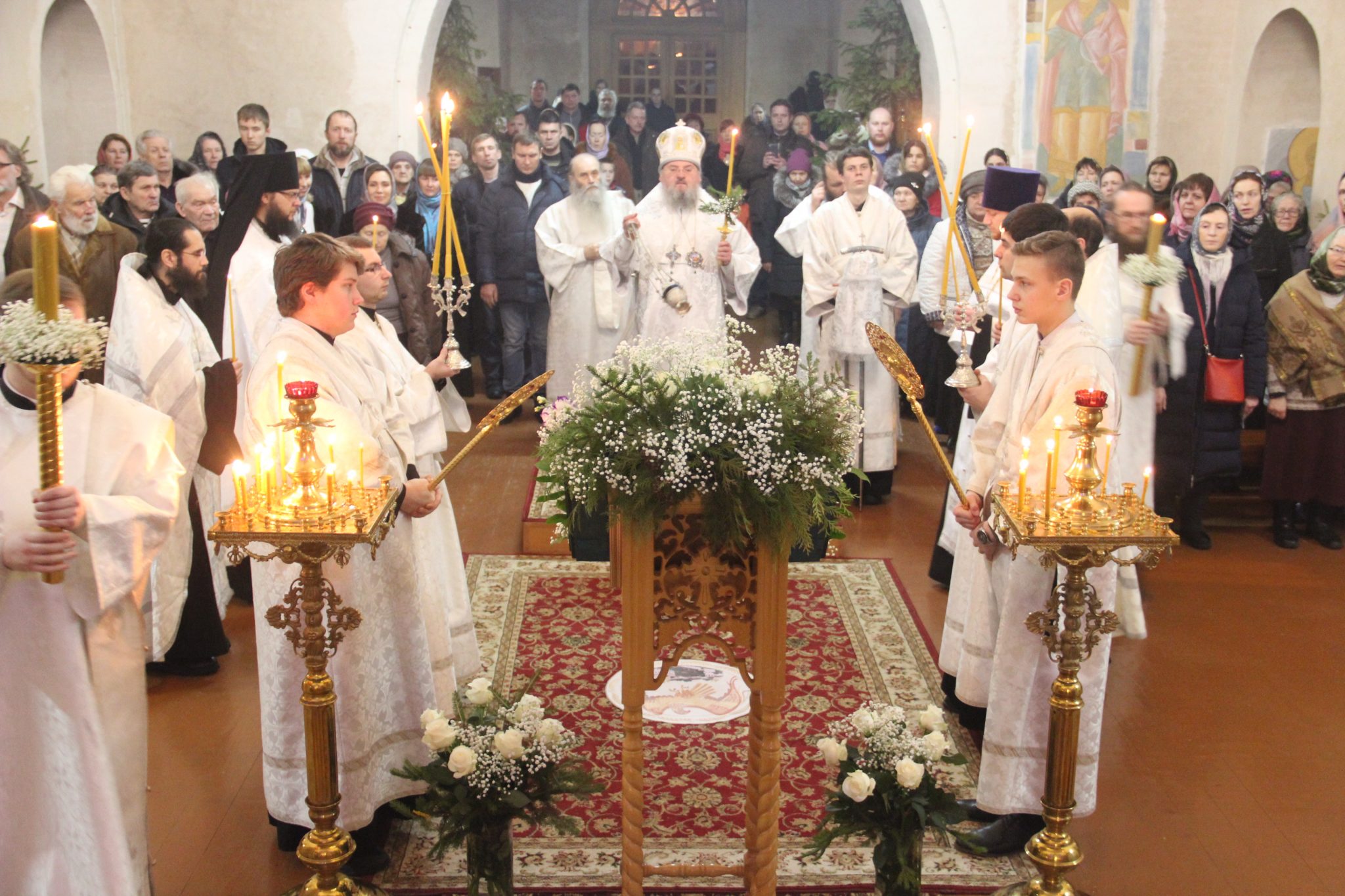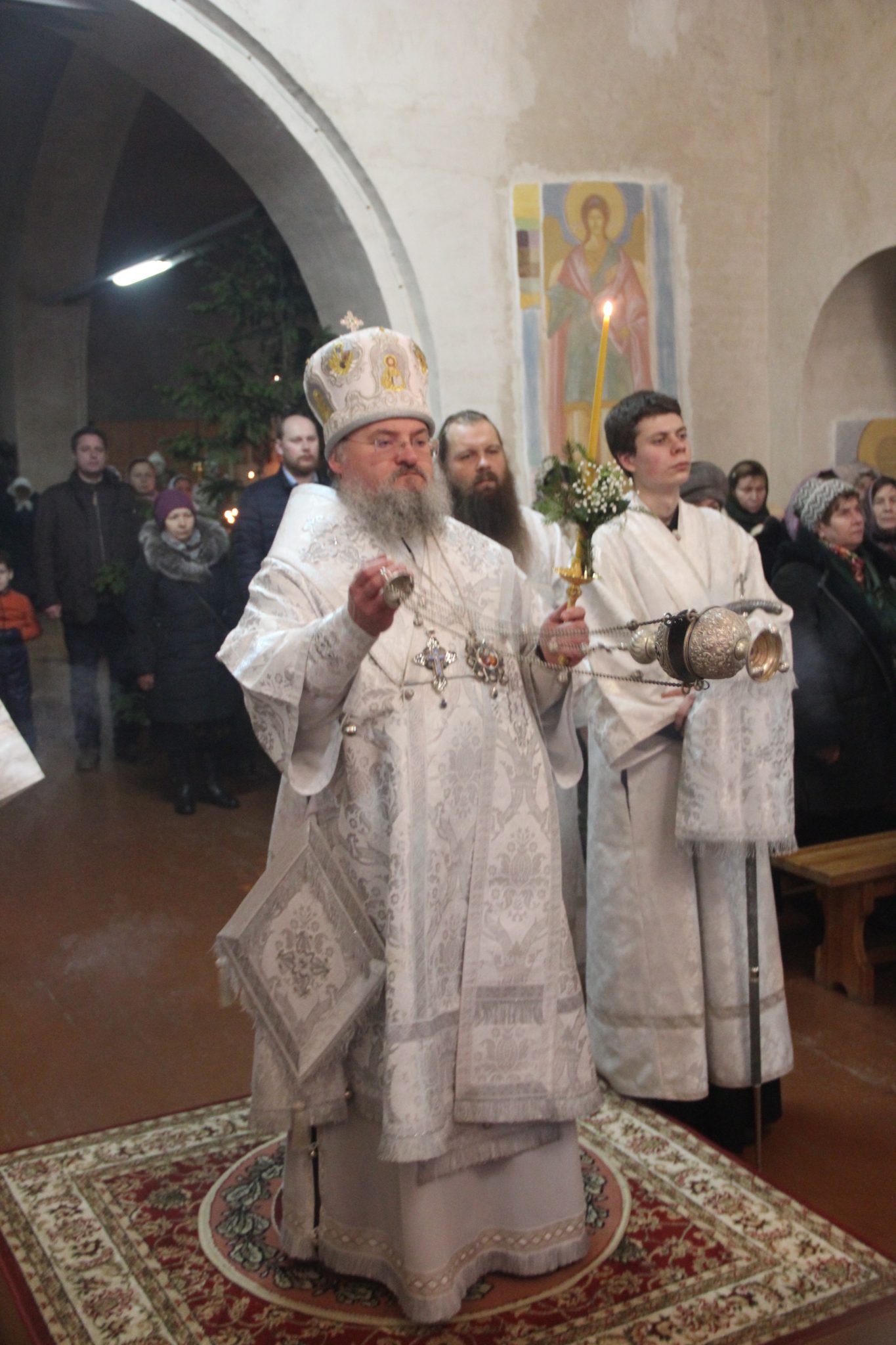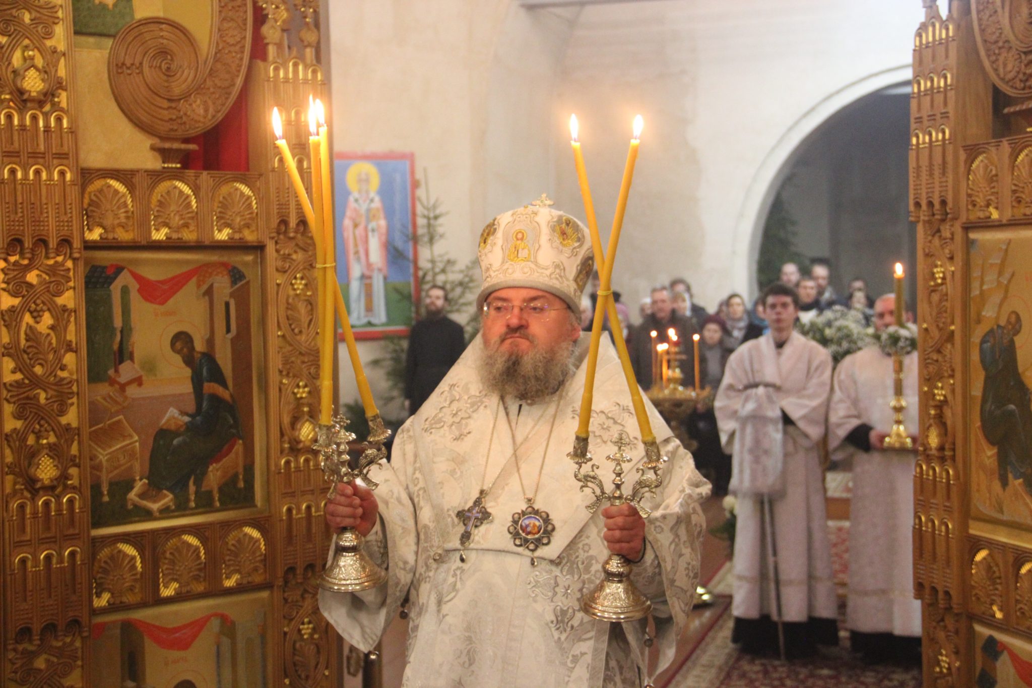 6 января, на кануне великого двунадесятого праздника Рождества Христова, епископ Козельский и Людиновский Никита в сослужении клириков храма совершил всенощное бдение в Успенском кафедральном соборе города Козельска.