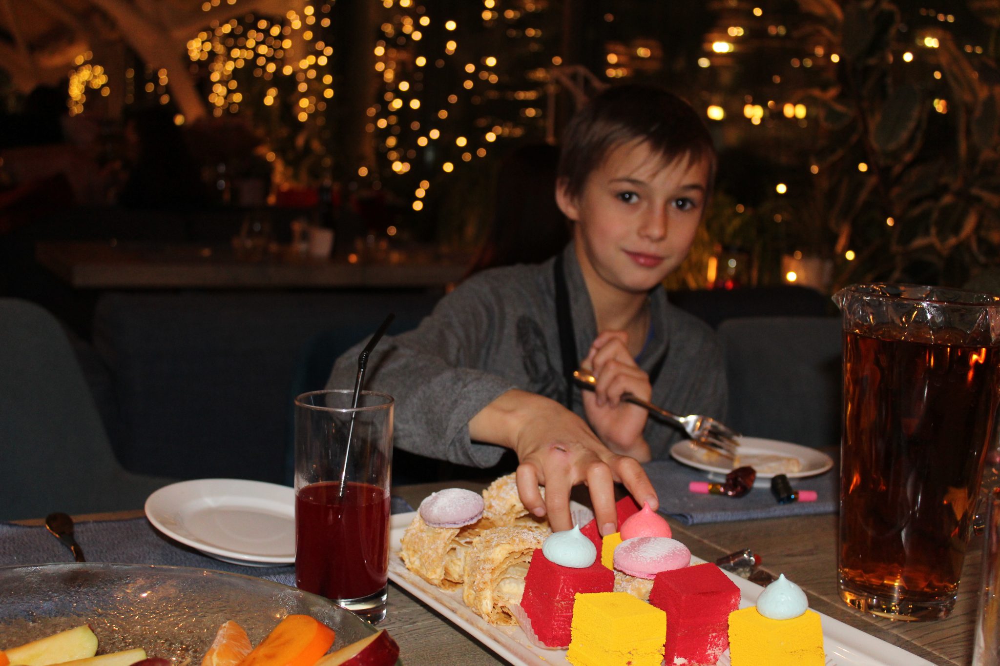 Но на этом сказочное великолепное действие не закончилось, путешествие козельчан продолжилось по Москве до Овчинниковской набережной, где им был оказан прием на высшем уровне в ресторане «Карлсон» с панорамным видом на Кремль. В празднично убранном зале детям был подан вкусный постный обед, фрукты, пирожные и напитки. Детей развлекал аниматор и была сделана фотосессия.