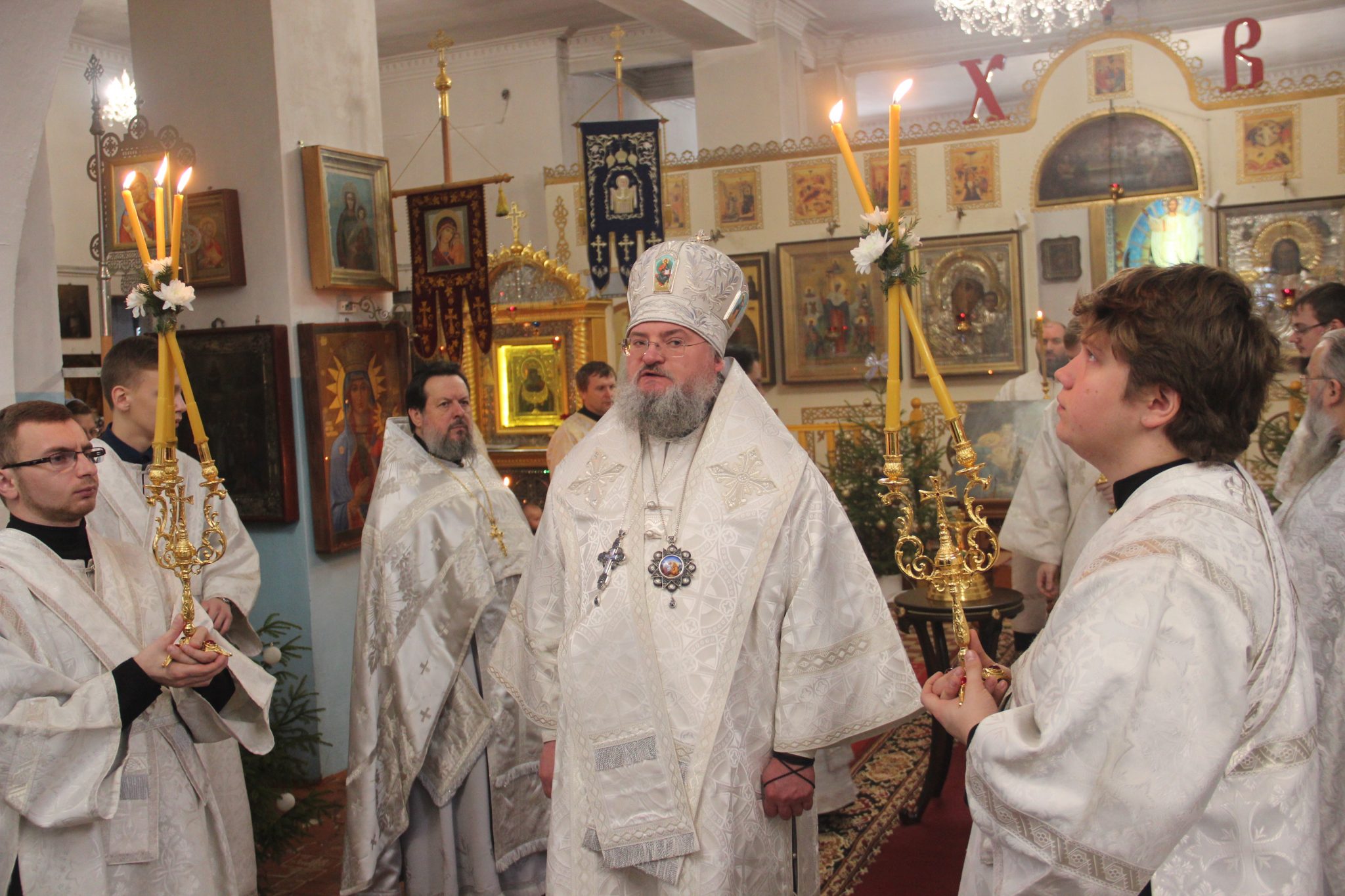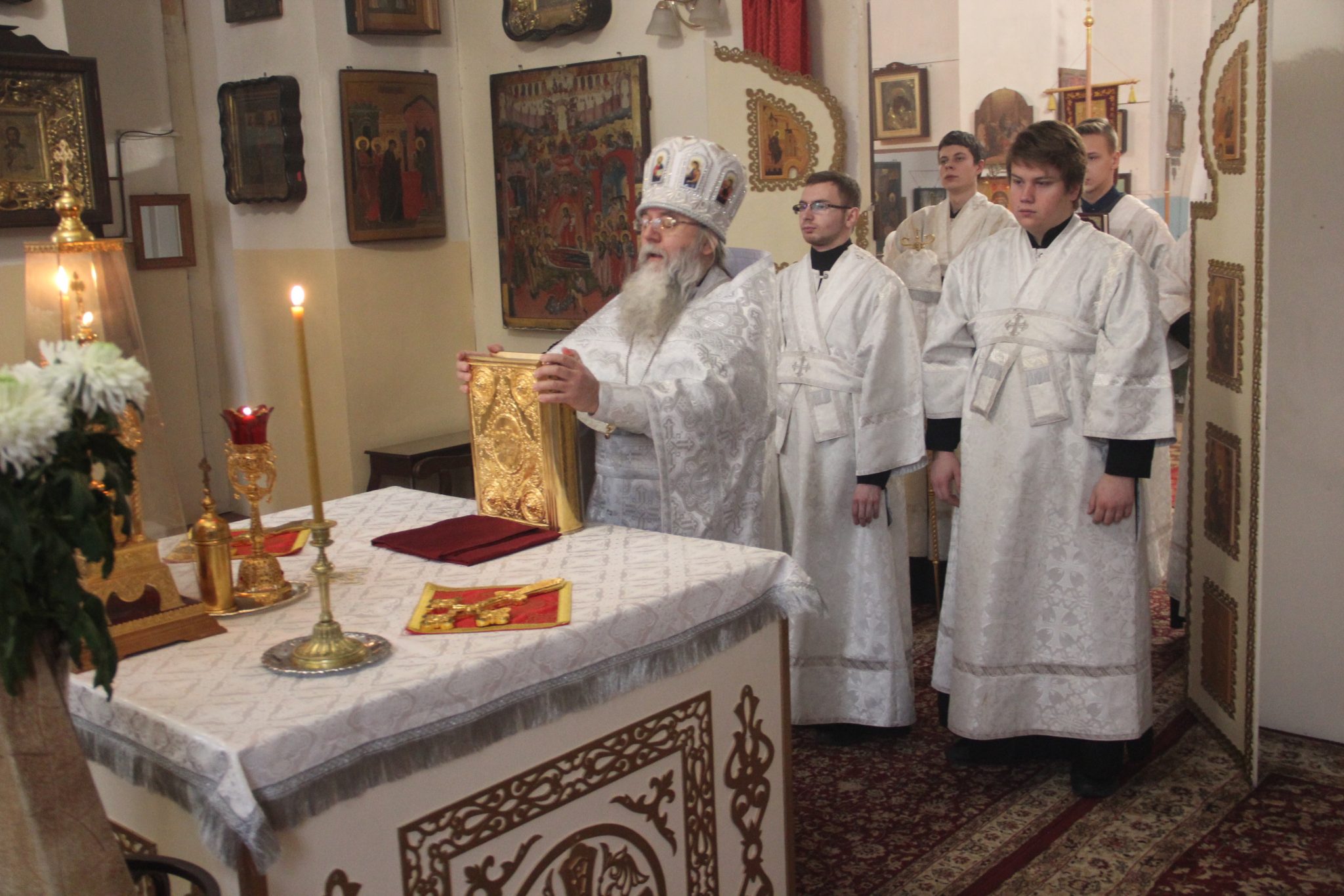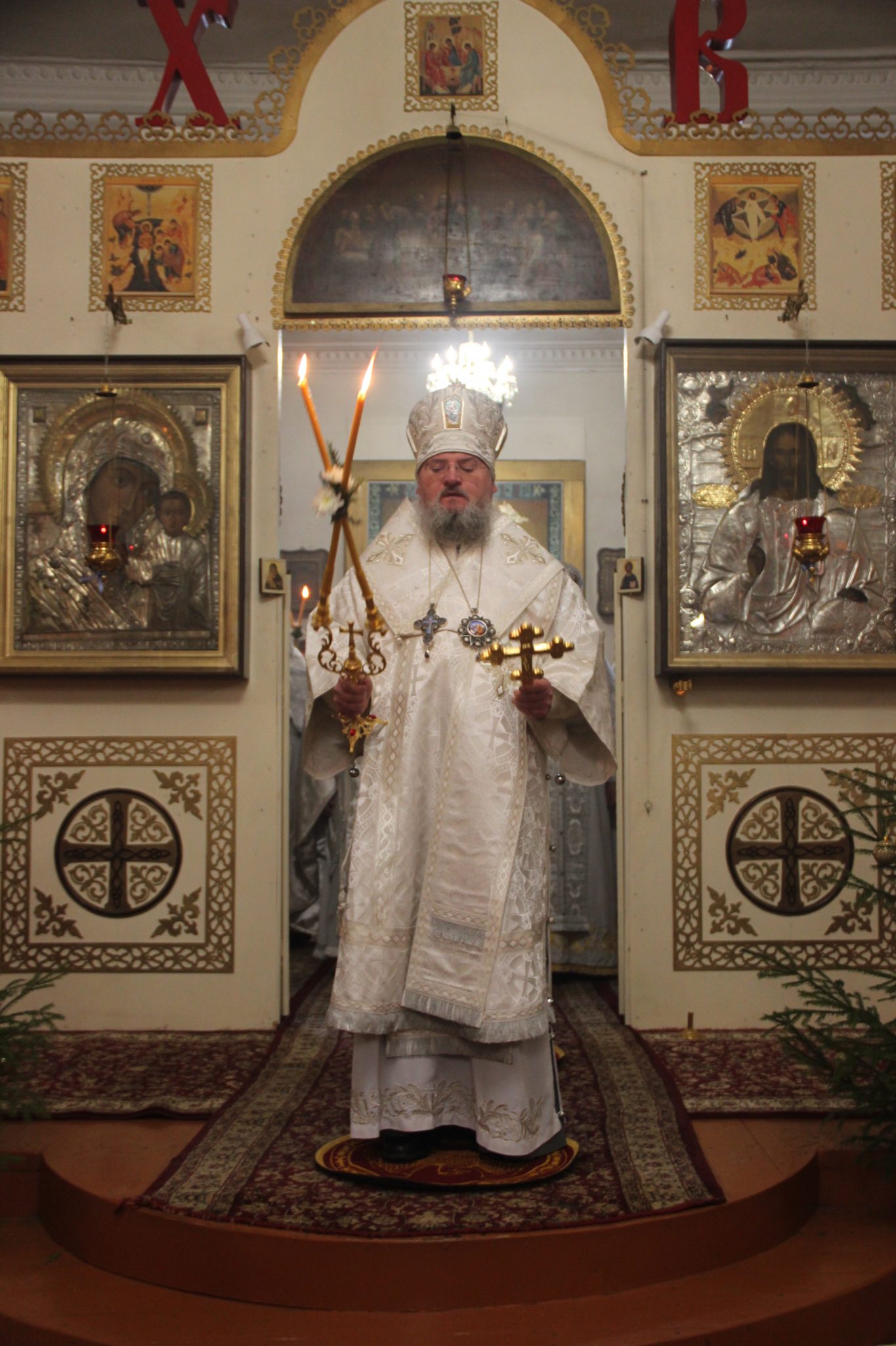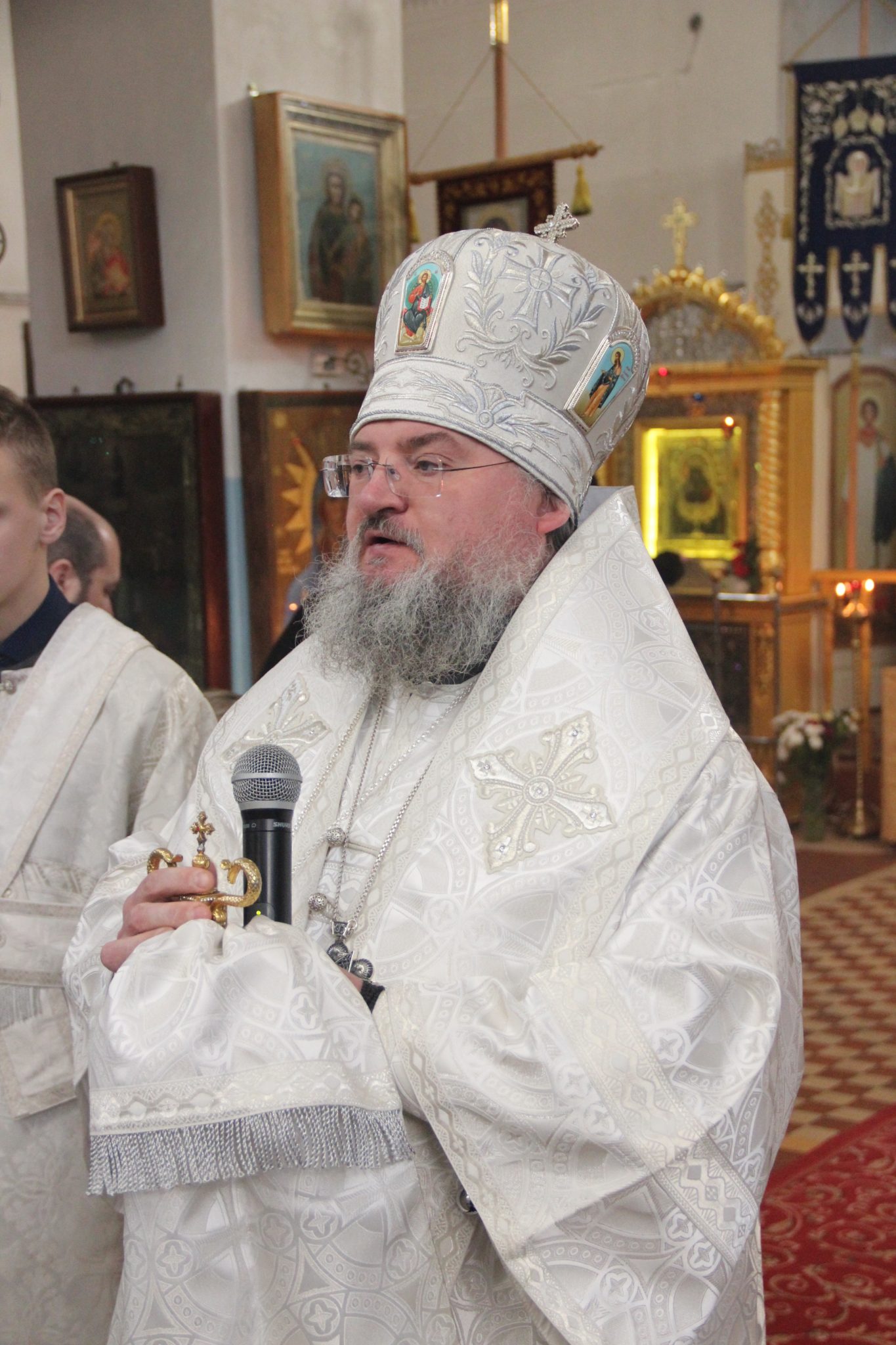Его Преосвященству сослужили: настоятель собора митрофорный протоиерей Алексий Жиганов, благочинный округа протоиерей Василий Биляк и клирики храмов благочиния.