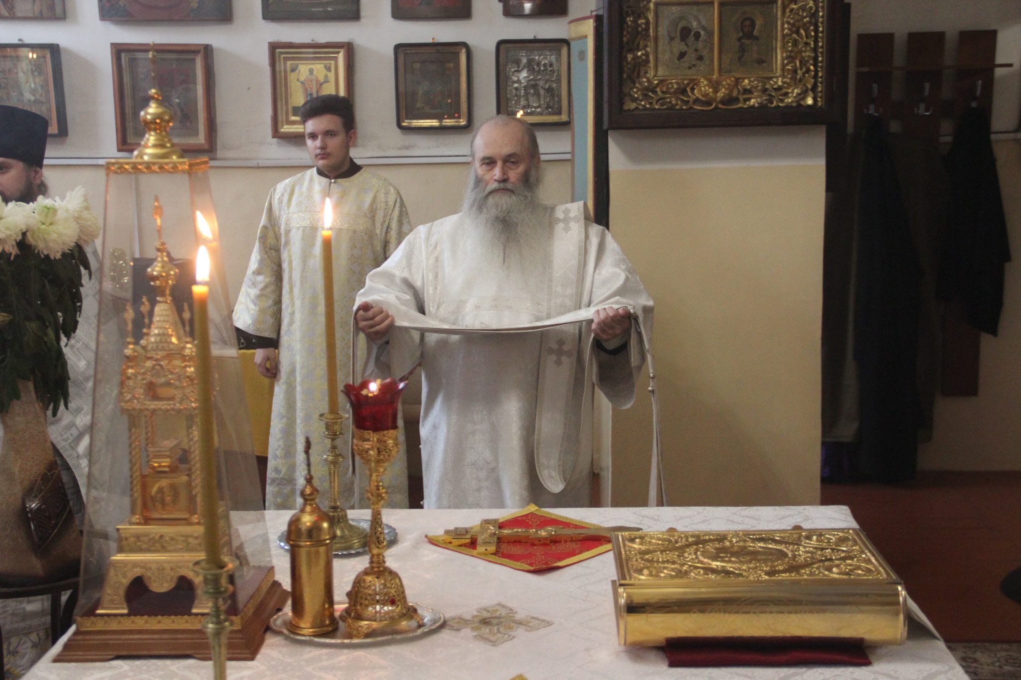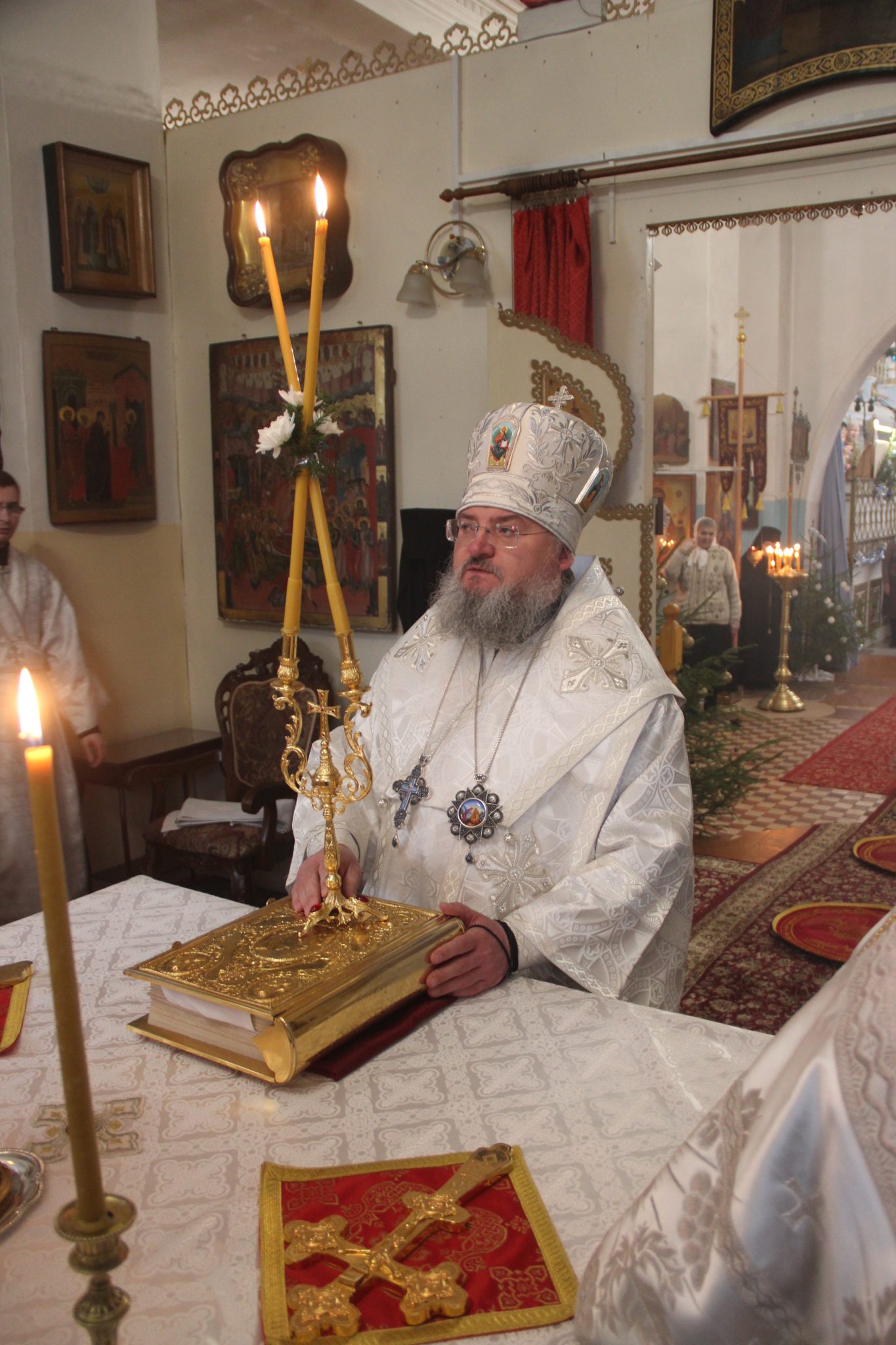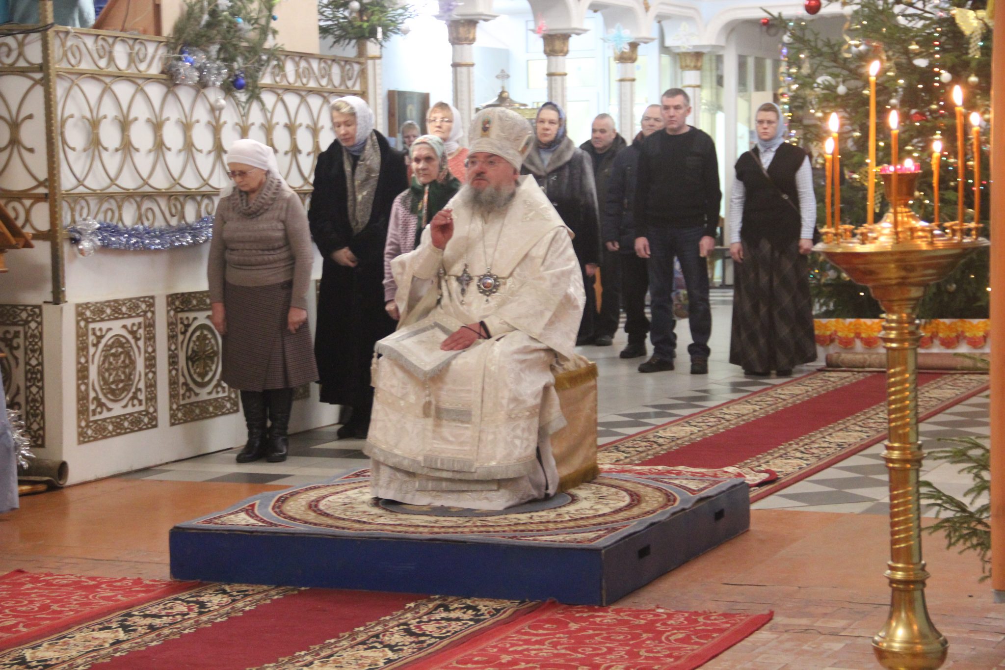 Его Преосвященству сослужили: настоятель собора митрофорный протоиерей Алексий Жиганов, благочинный округа протоиерей Василий Биляк и клирики храмов благочиния.