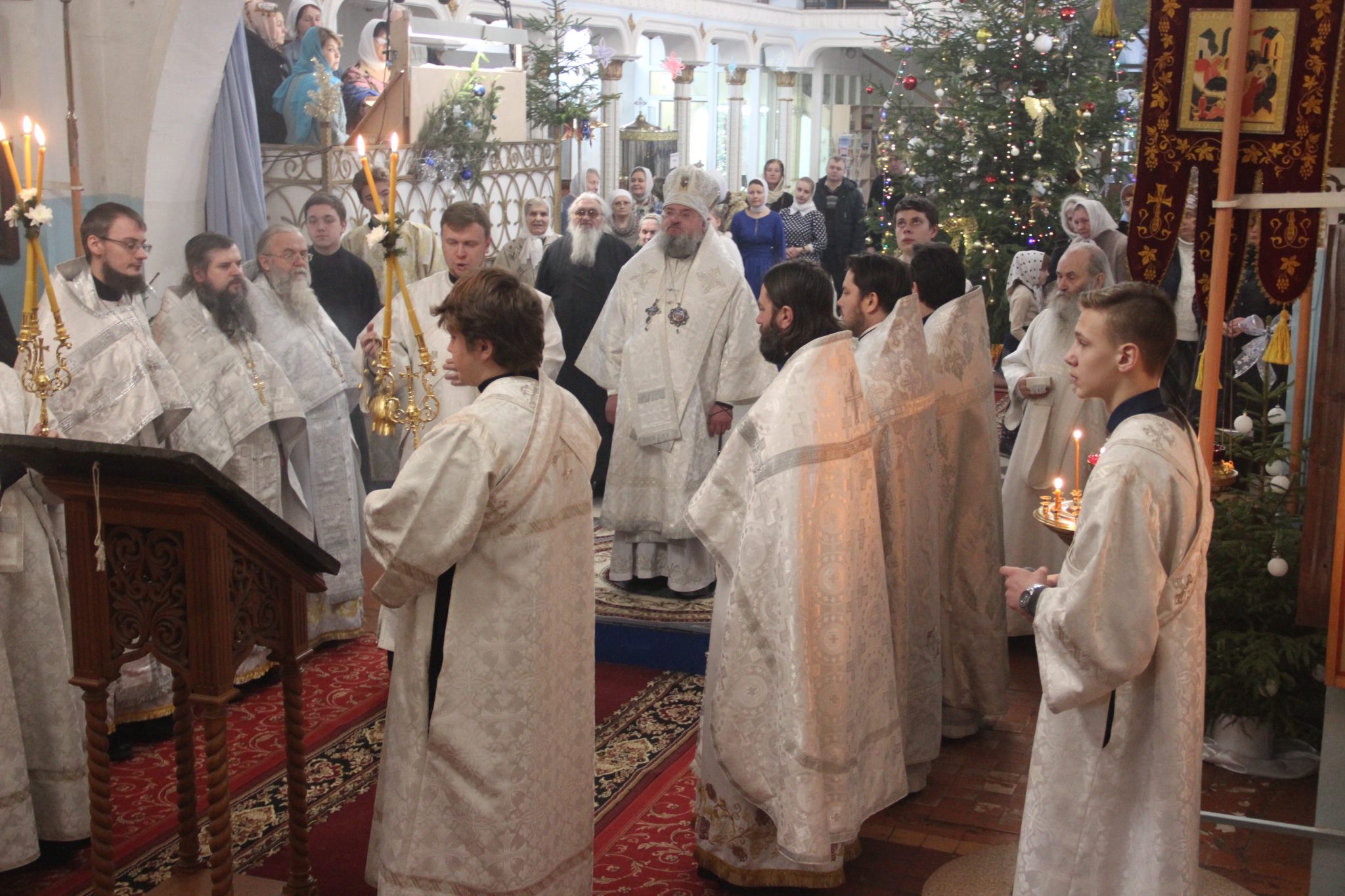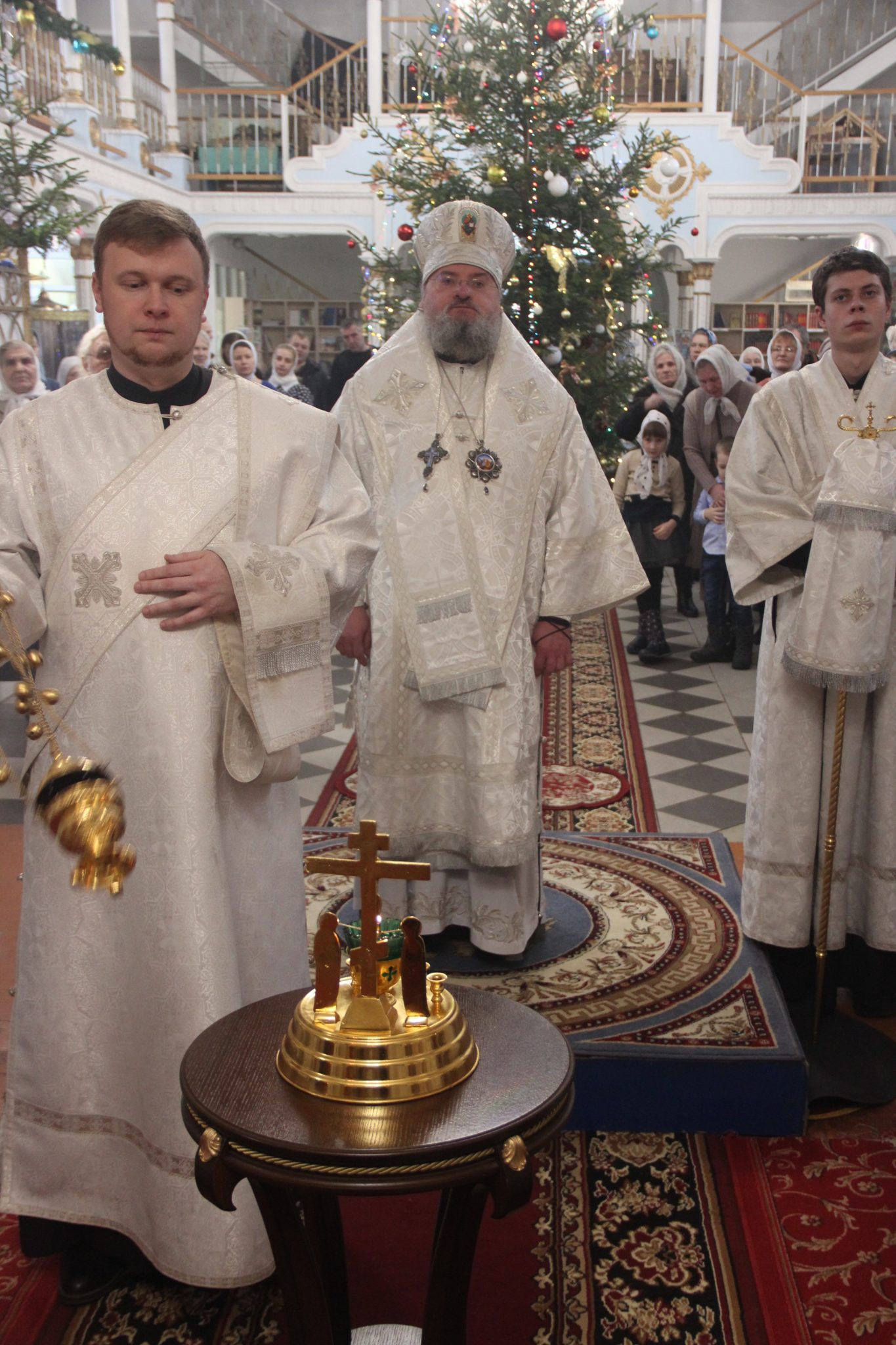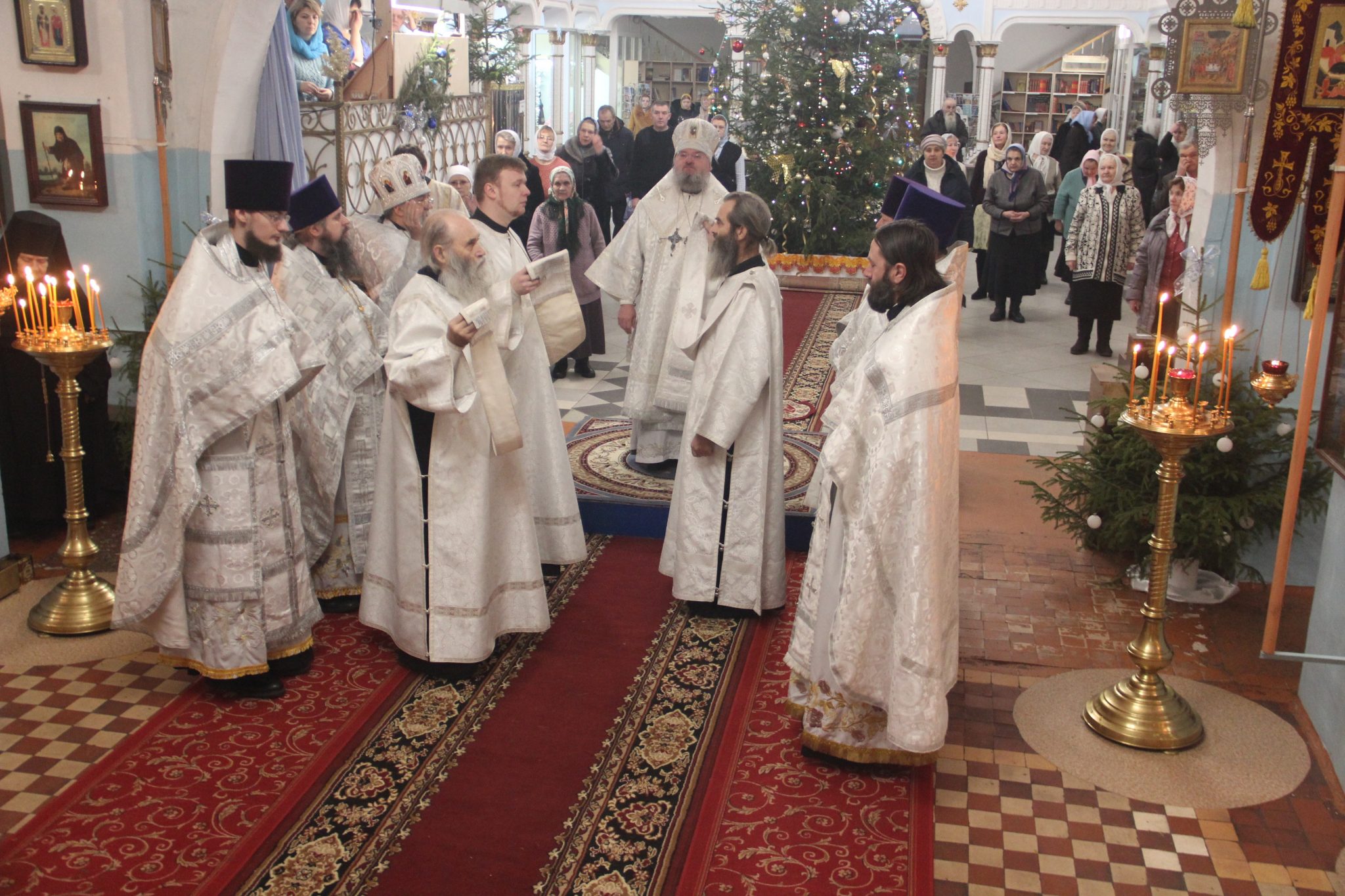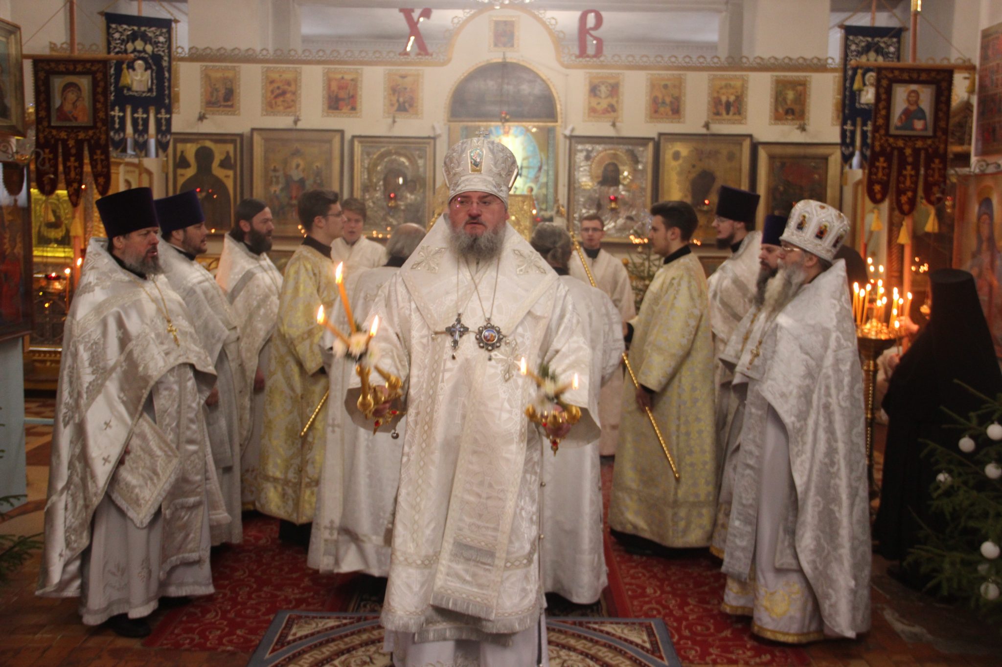 Его Преосвященству сослужили: настоятель собора митрофорный протоиерей Алексий Жиганов, благочинный округа протоиерей Василий Биляк и клирики храмов благочиния.