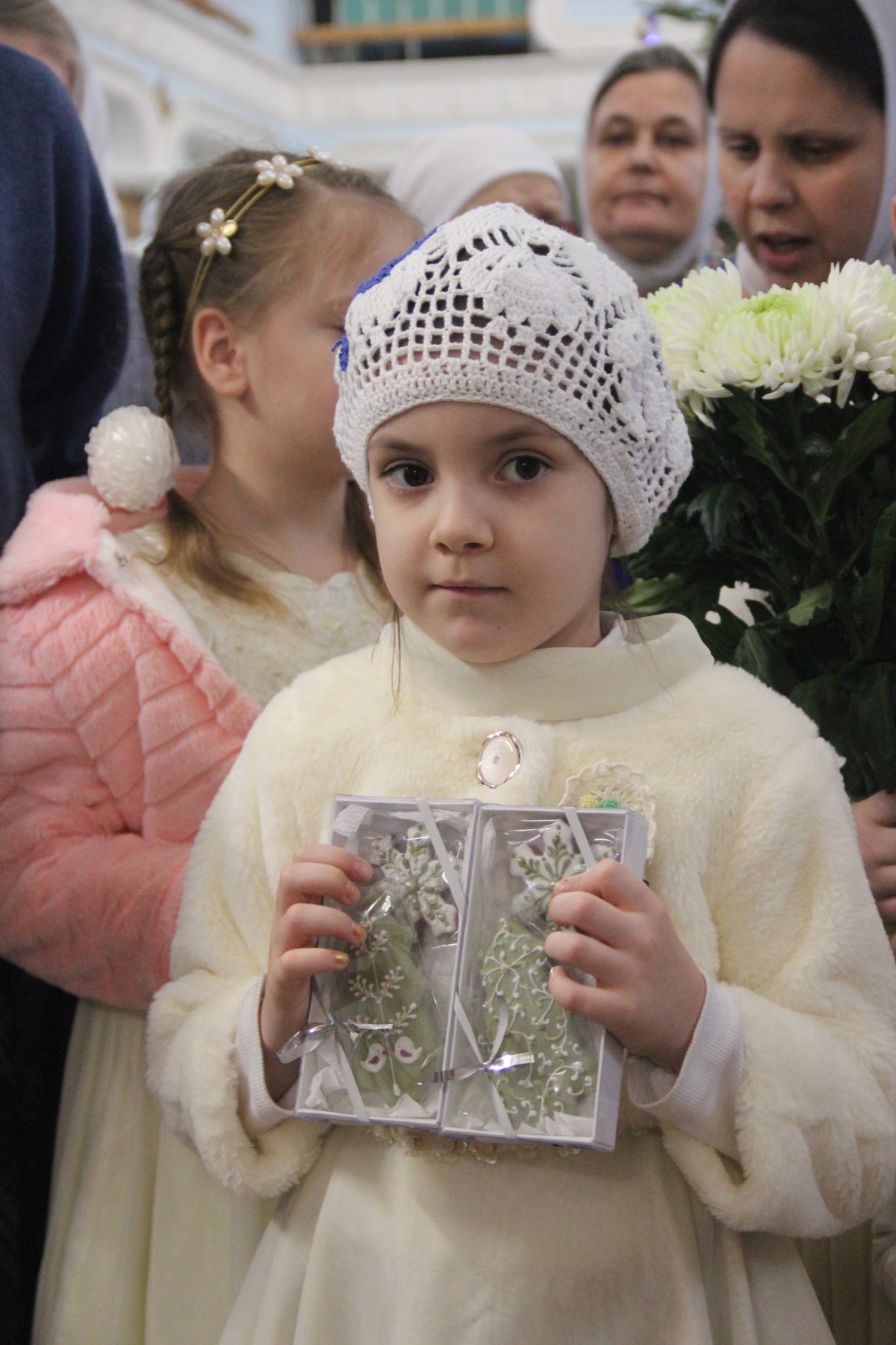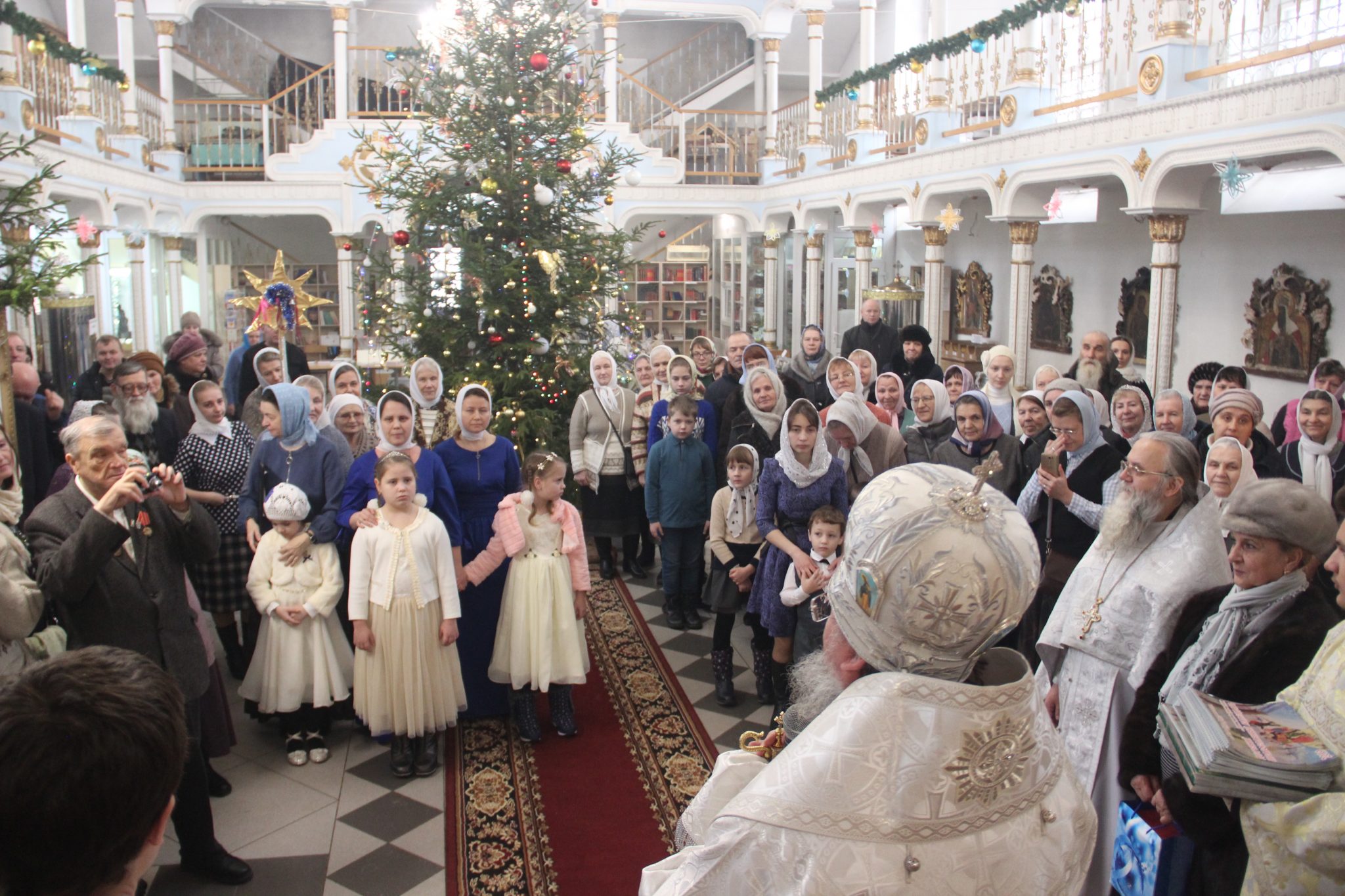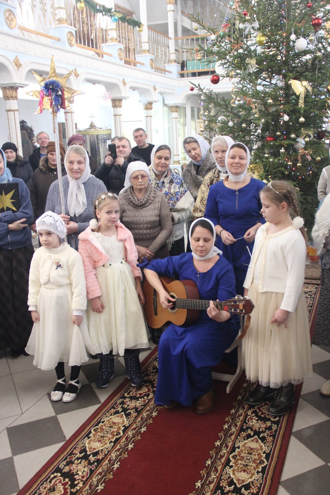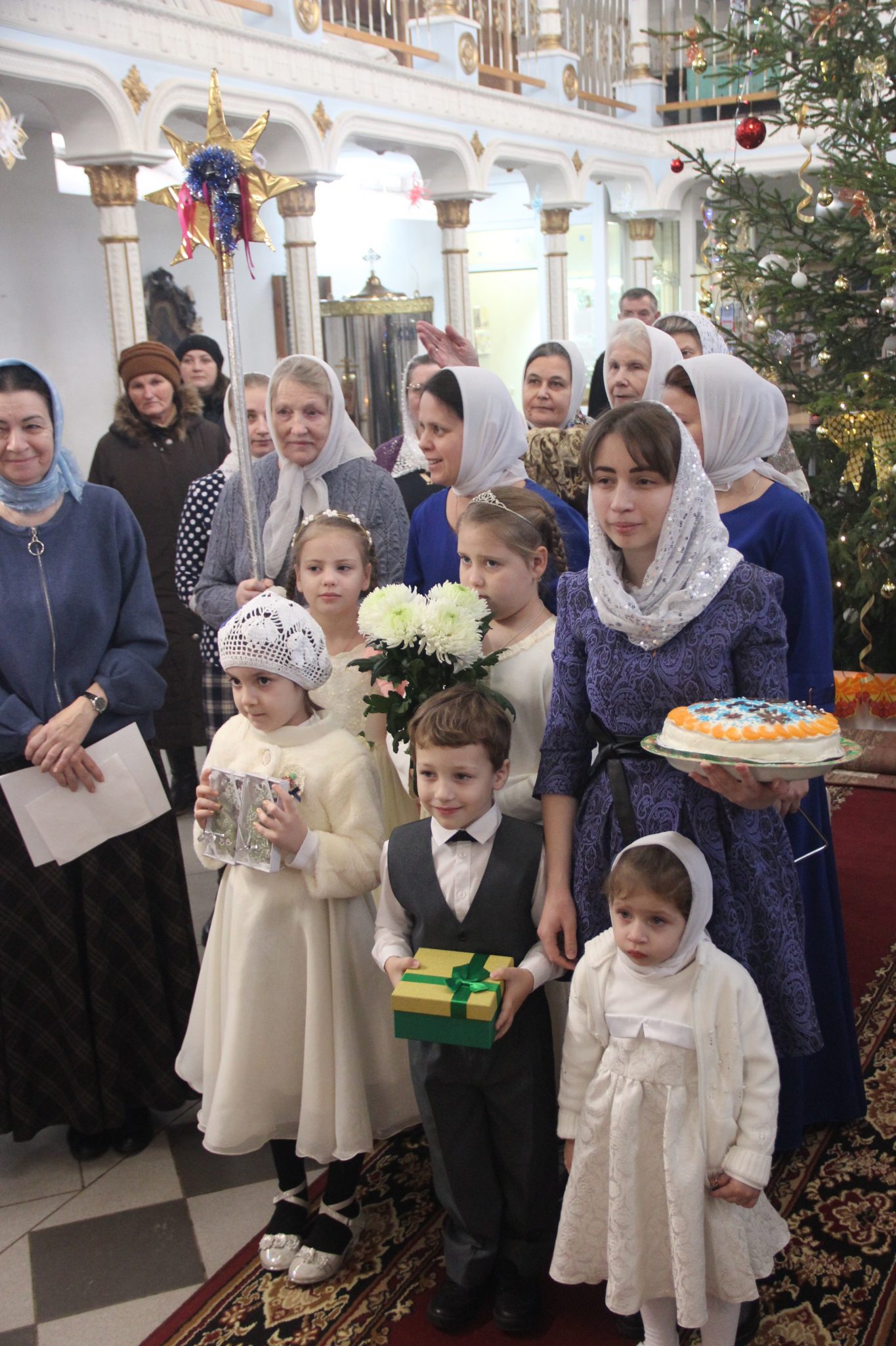 Творческий коллектив духовно-просветительского центра «Светоч» при соборе поздравил владыку, священнослужителей и прихожан с праздником Рождества Христова исполнением стихотворений и песнопений, посвященных великому празднику.