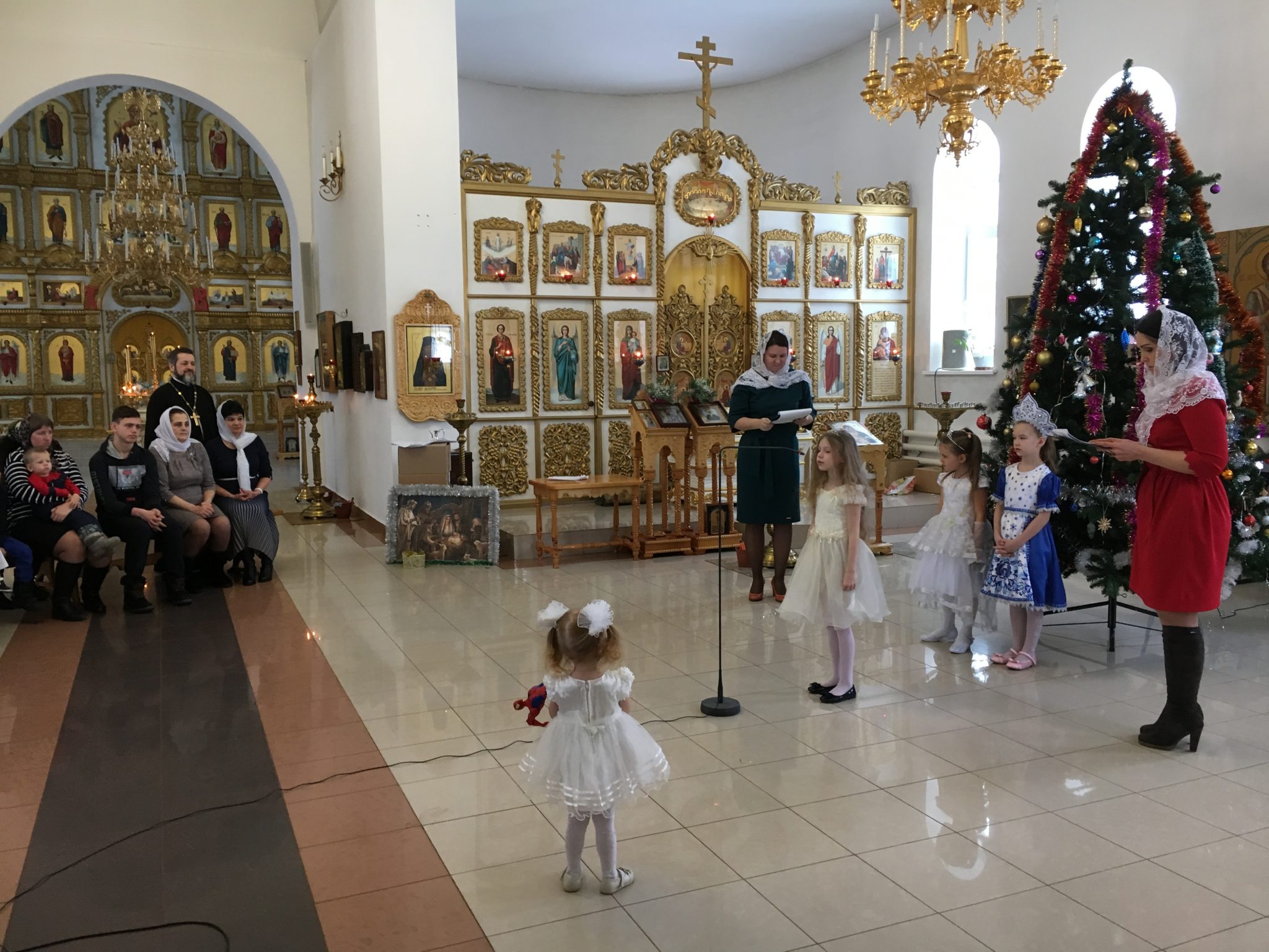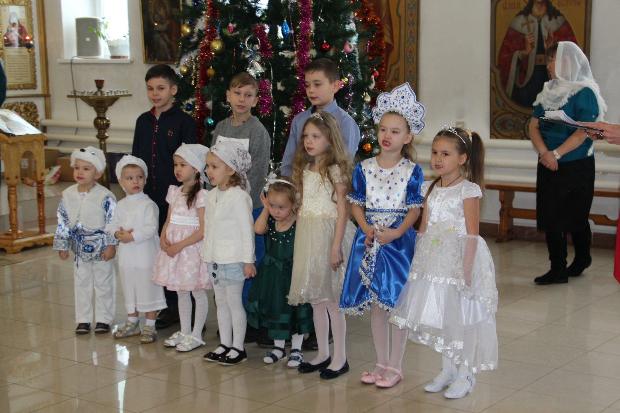 В начале праздничного представления настоятель храма протоиерей Иоанн Староста обратился с приветственным словом ко всем присутствующим, поздравил с праздником, рассказав о значении пришествия в мир Христа Спасителя. Ребята дошкольного и школьного возраста показали театрализованную постановку о Рождестве Христовом. Дети радовали взрослых не только театральным представлением, но и Рождественскими песнями и колядками. Батюшка поблагодарил выступающих, а также Саватееву Татьяну, Уварову Наталию и Черкезову Антонину Николаевну за подготовку к празднику.