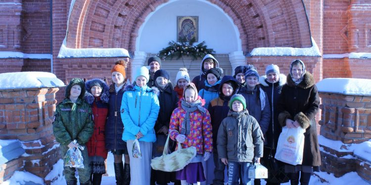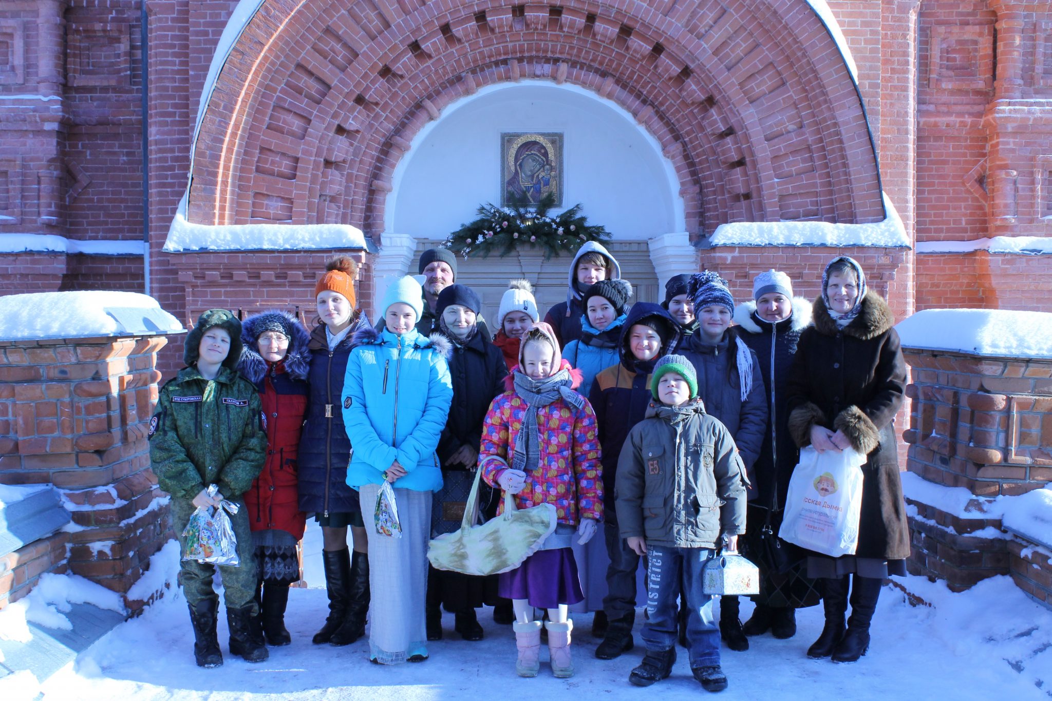 7 января дети воскресной школы прихода выступили с рождественскими колядками в женском монастыре Казанская Амвросиевская пустынь села Шамордино и в храме Преображения Господня села Нижние Прыски.