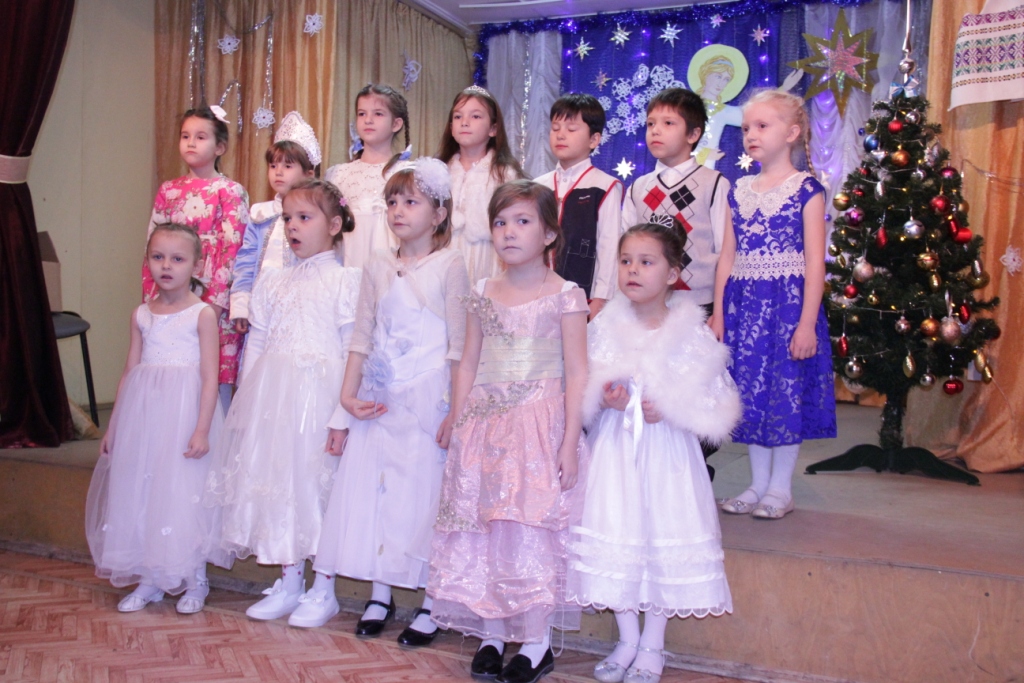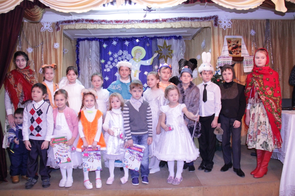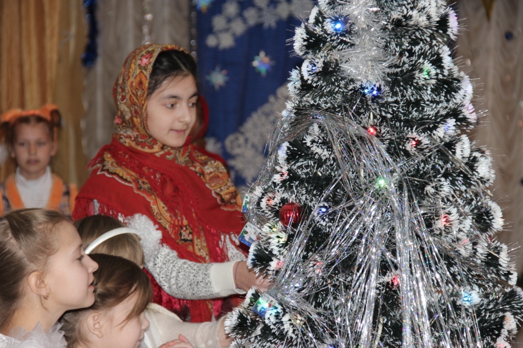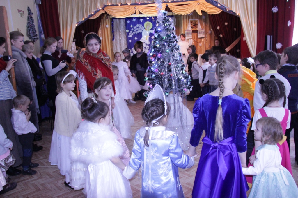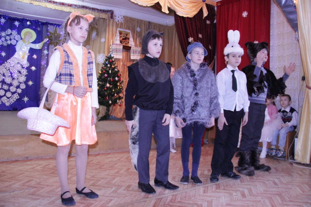 Театральная студия  «Образ» (руководитель Буканова Л.И.)  показала сказку «Рождественская ёлочка». На протяжении всего праздничного мероприятия воспитанники Центра в нарядных костюмах водили вокруг ёлочки хороводы, танцевали, отгадывали загадки и играли в игры. За лучшие костюмы ребята получили призы. А в завершении праздника всем участникам вручили сладкие подарки.