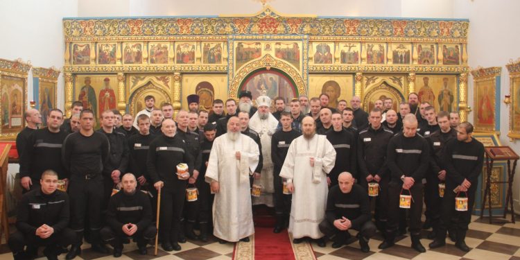 Епископ Козельский и Людиновский Никита посетил Исправительную Колонию №5 города Сухиничи. Владыка совершил Божественную литургию с храме Всех святых в земле Российской просиявших на территории исправительного учреждения.