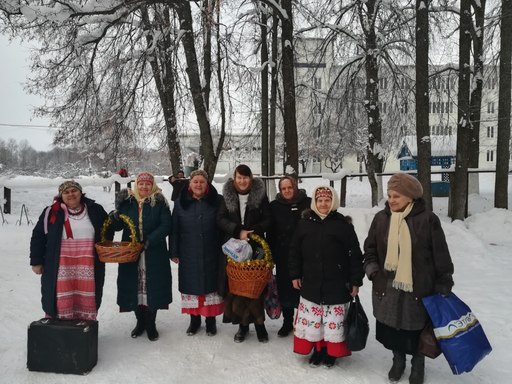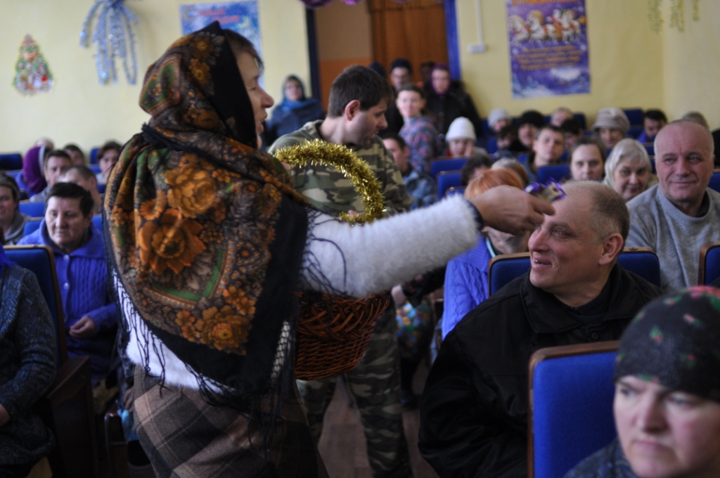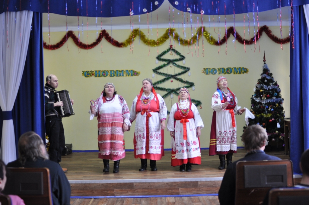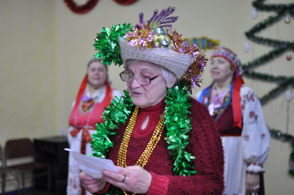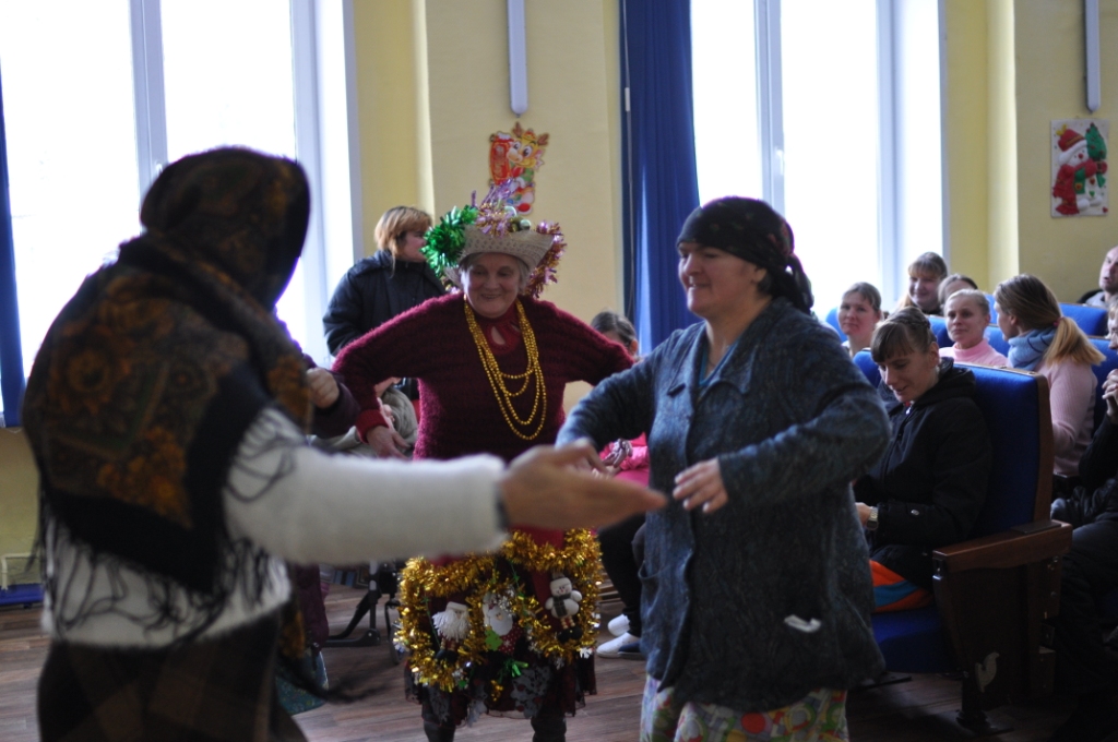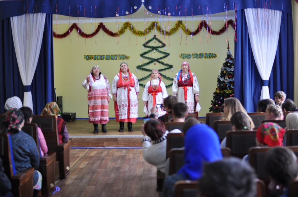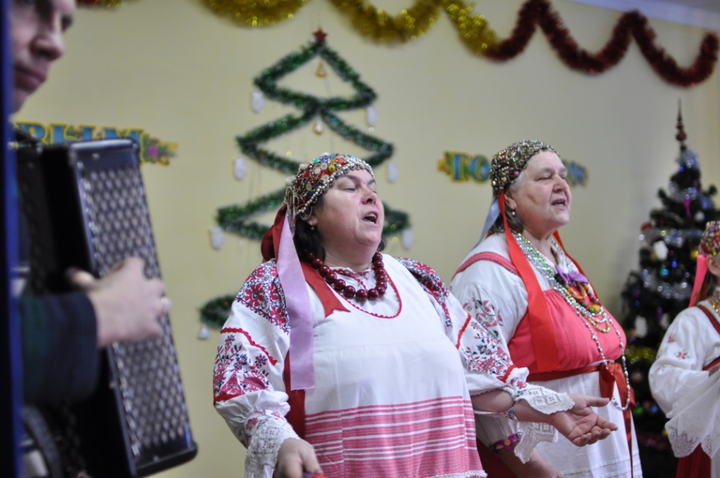 Поздравить жителей дома-интерната приехали из Казанского собора города Людиново волонтеры социальной службы и фольклорный ансамбль «Черновцы». Атмосфера праздника создалась очень дружелюбная и радостная. Артисты весело исполняли колядки и старинные песни Калужской земли. Волонтеры Алла и Людмила спели красивую колядку «А в Иерусалиме рано зазвонили». Лариса Ивановна прочитала стихотворение о Рождестве Христовом, написанное специально для мероприятия. К завершению концерта самые смелые вышли под аккорды баяниста Сергея и закружили хоровод у сцены зала.