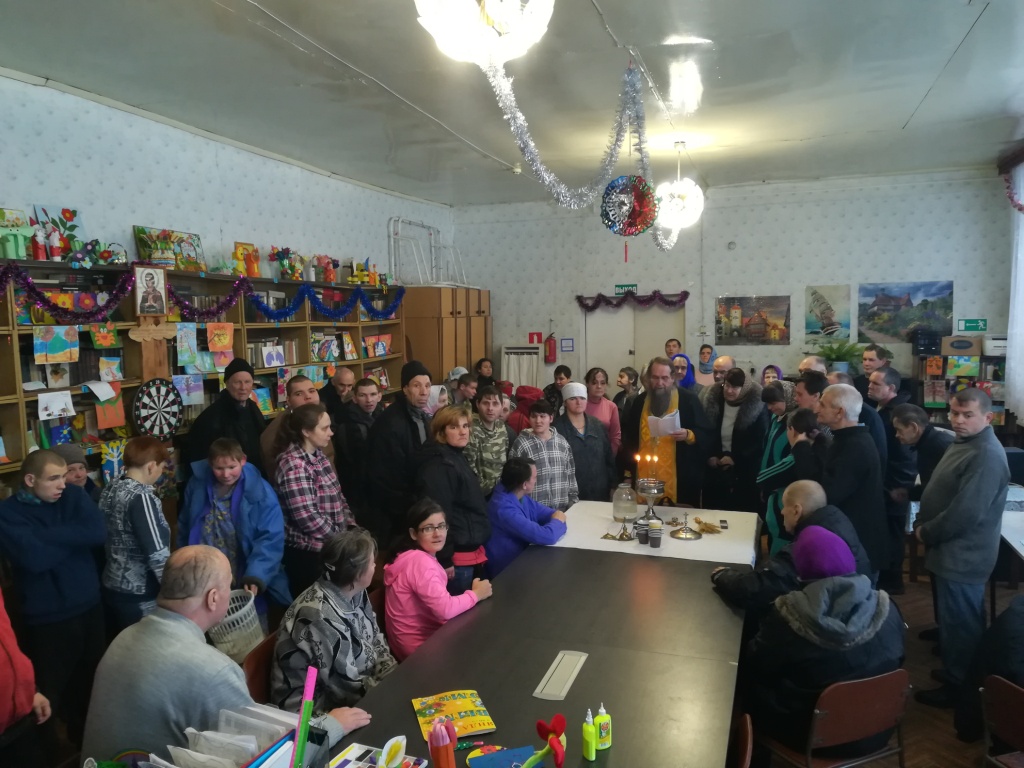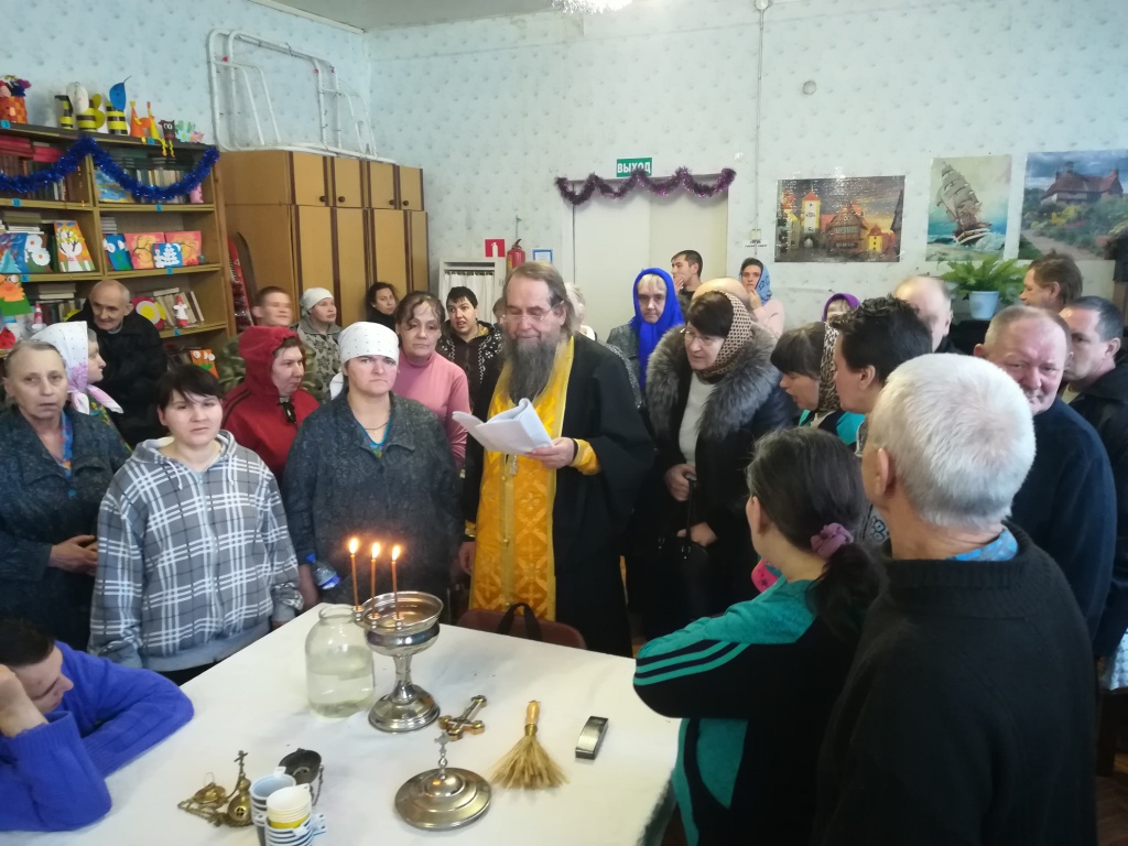 Праздник в психоневрологическом интернате города Жиздра начался торжественным, в честь Рождества Христова, молебном, который совершил клирик Жиздринского благочиния иеромонах Сергий (Тимофеев).