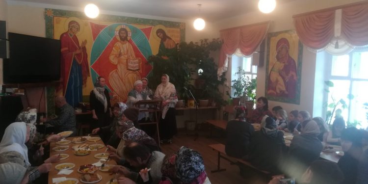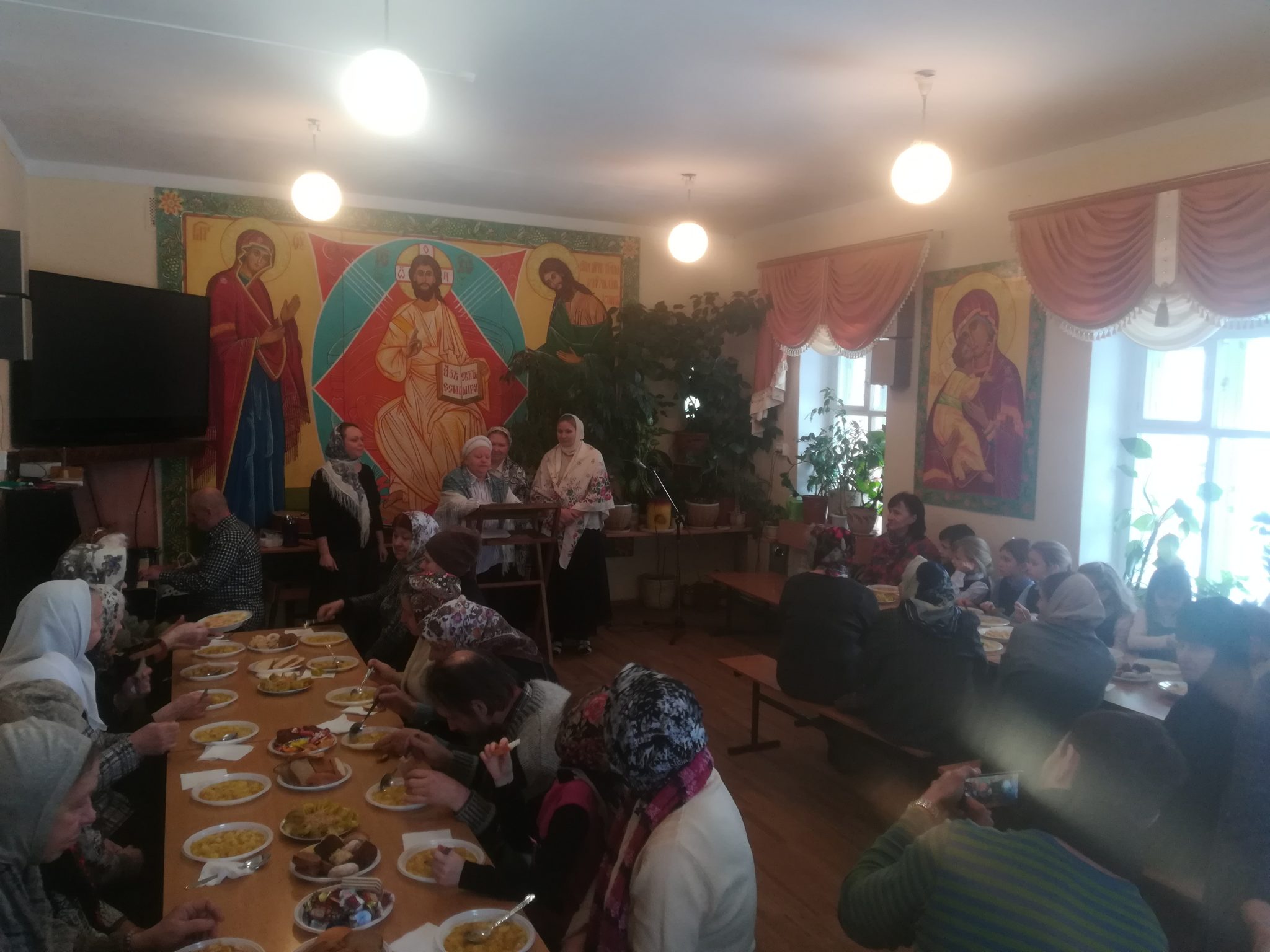 13 января в день отдания праздника Рождества Христова. Коллектив «Русская песня» при храме Благовещения Пресвятой Богородицы города Козельска подготовил для прихожан трапезу и праздничное мероприятие. Вначале мероприятия с приветственным словом обратился настоятель храма иерей Сергий Барыкин, а затем  коллектив выступил с пением Рождественских колядок, народных песен и стихов. Во время выступления гости подпевали всем известные песни, это создало радостную и дружескую атмосферу.