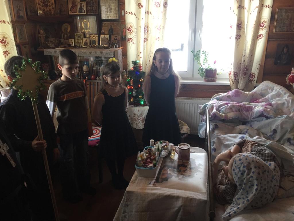 Воспитанники воскресной школы посетили престарелых обитателей богодельни