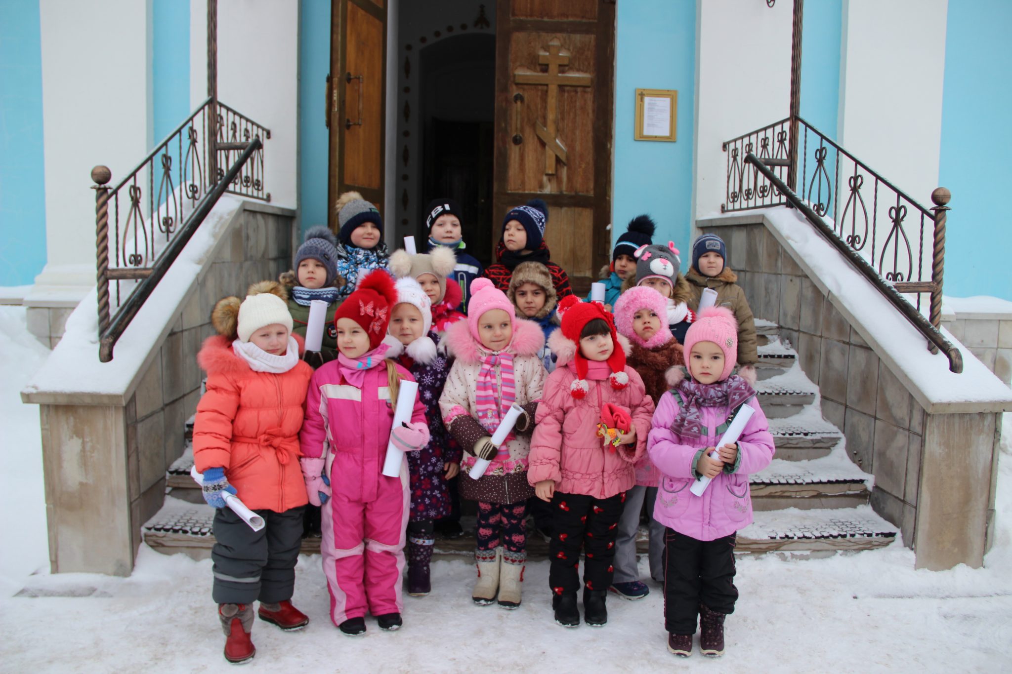 16 января в храме в честь Смоленской иконы Божией Матери города Сухиничи прошла экскурсия для маленьких воспитанников детского сада «Солнышко». Ребята посетили храм вместе с воспитателями Сокольской О.А. и Нестеровой Ю.Ю. Экскурсию для малышей провела директор Воскресной школы Сковородникова Е. В. Много нового о  храме, иконах , об истории праздника Рождества Христова и его православных традициях узнали ребята в этот день.