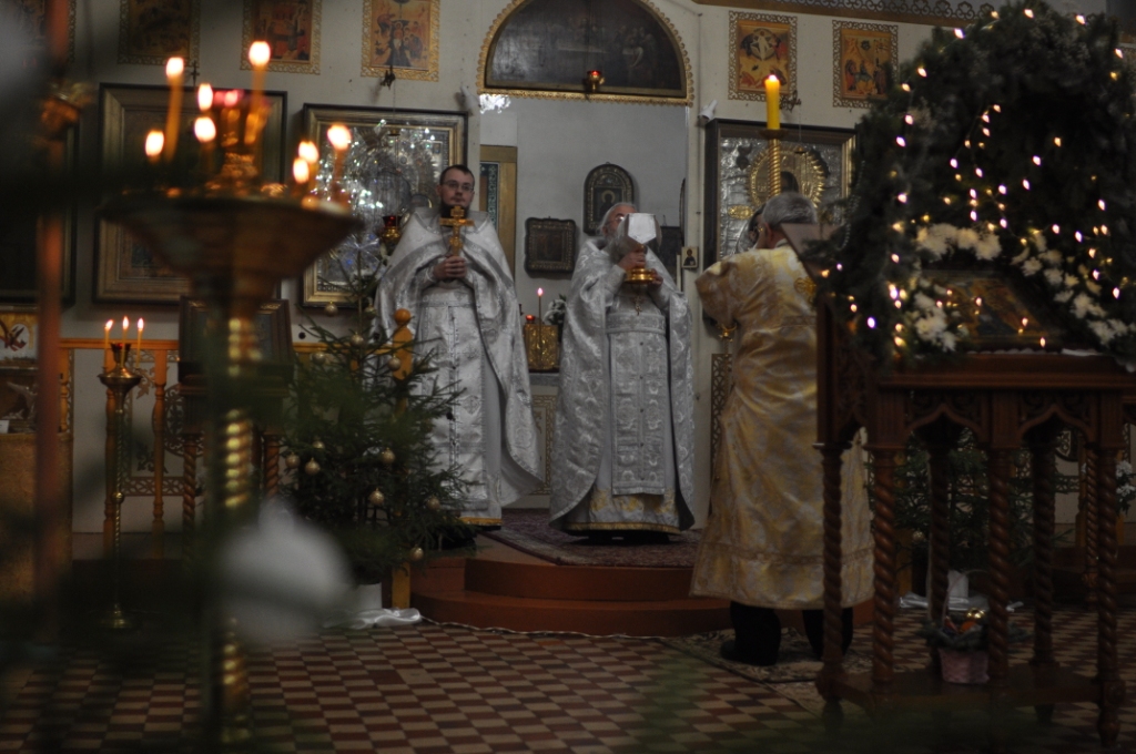 18 января, в навечерие праздника Святого Богоявления, настоятель храма протоиерей Алексий Жиганов в сослужении клириков собора совершил Царские часы и великую вечерню с литургией святителя Василия Великого в Казанском соборе г. Людиново.