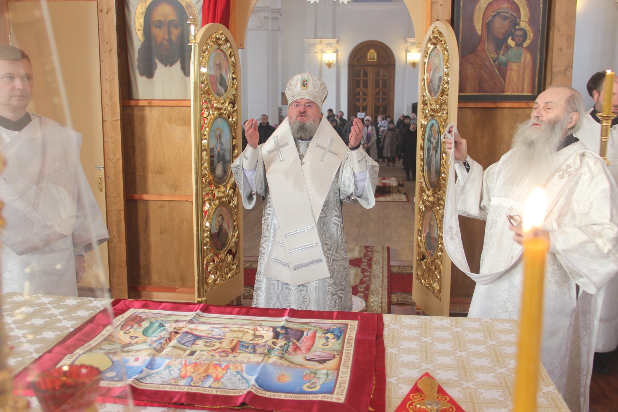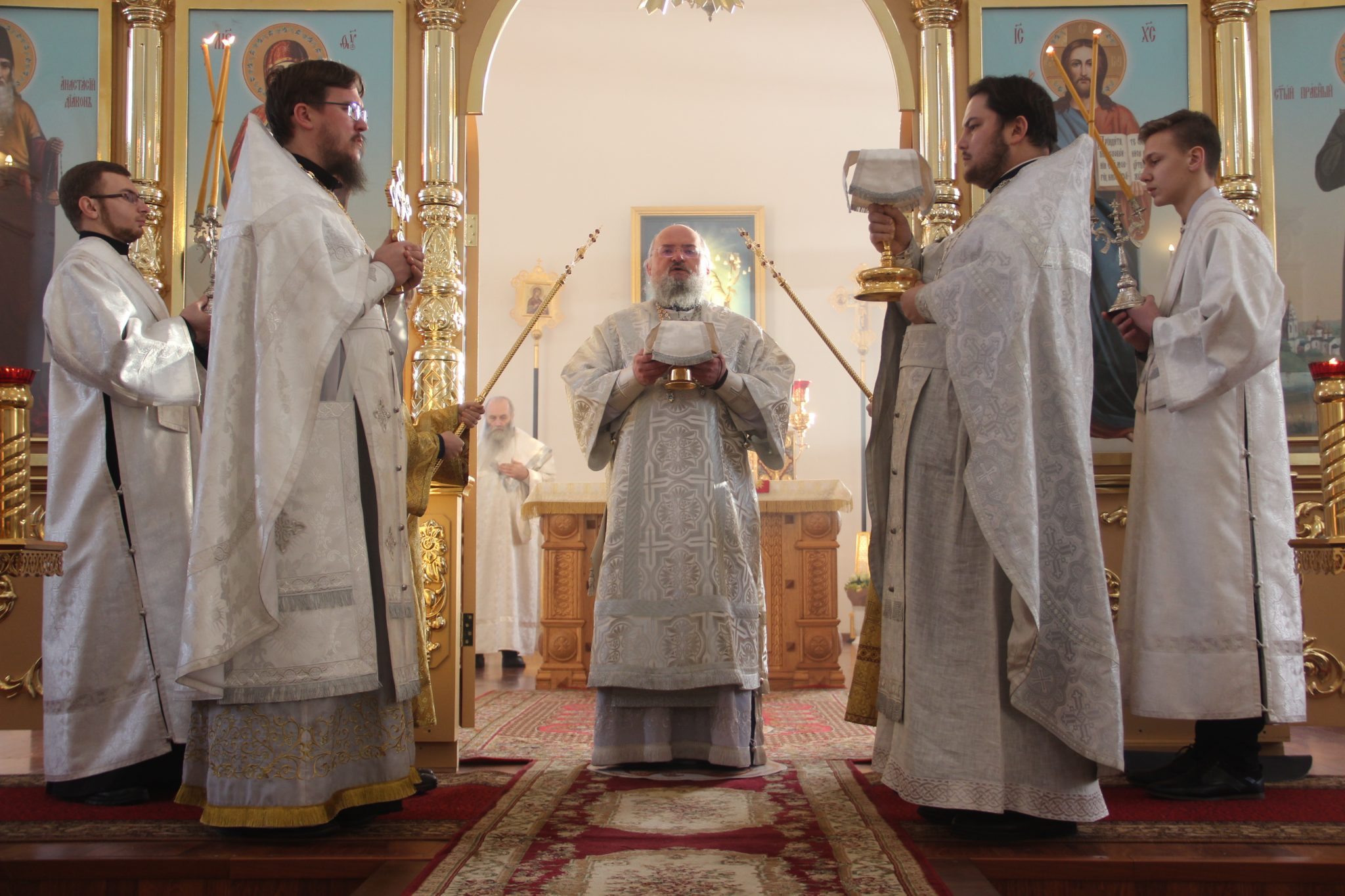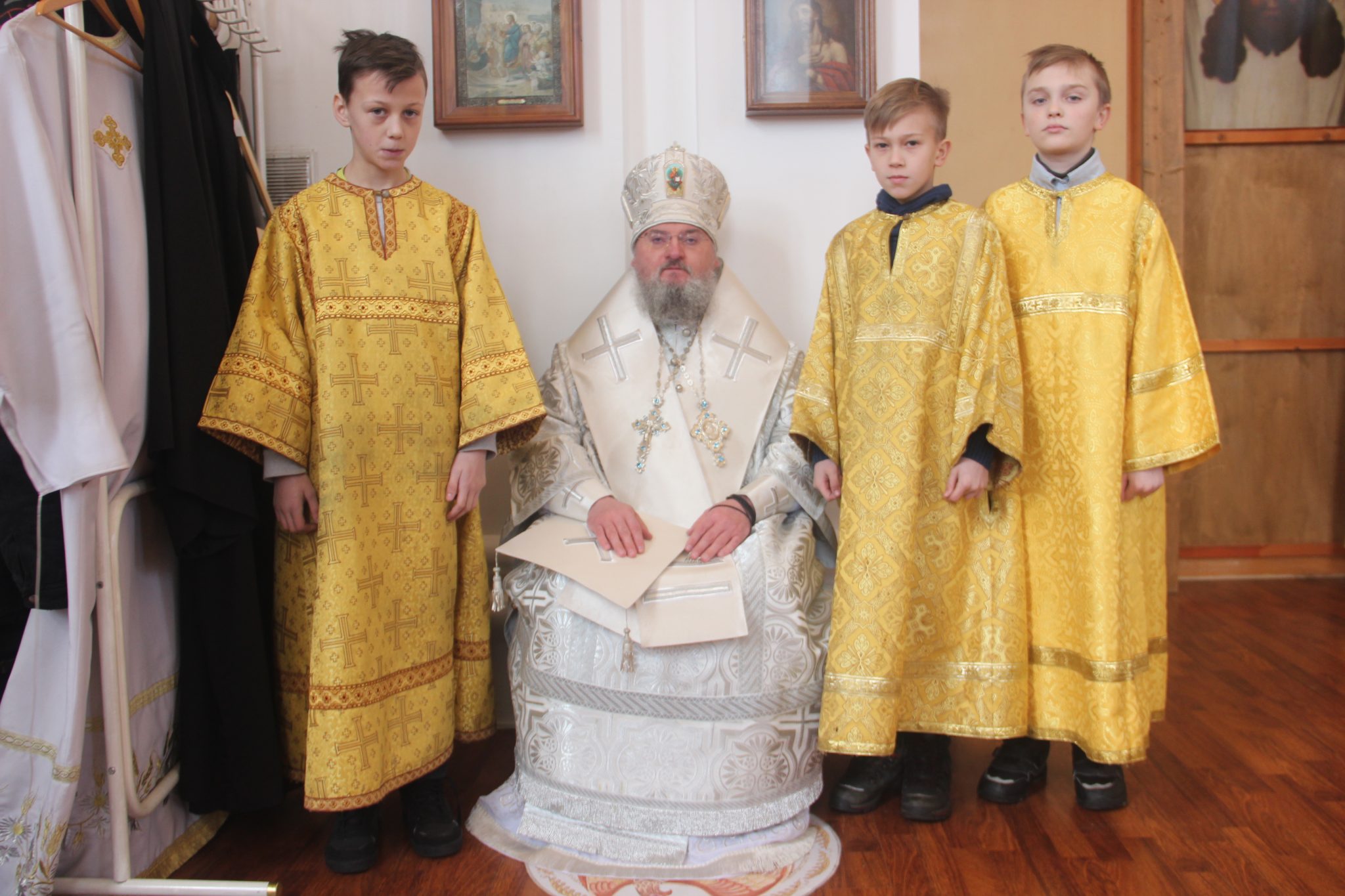 Его Преосвященству сослужили: протоиерей Антоний Хатунцев, иерей Дионисий Куваев – настоятель храма, диакон Евгений Ковригин и иеродиакон Виталий (Павленко).