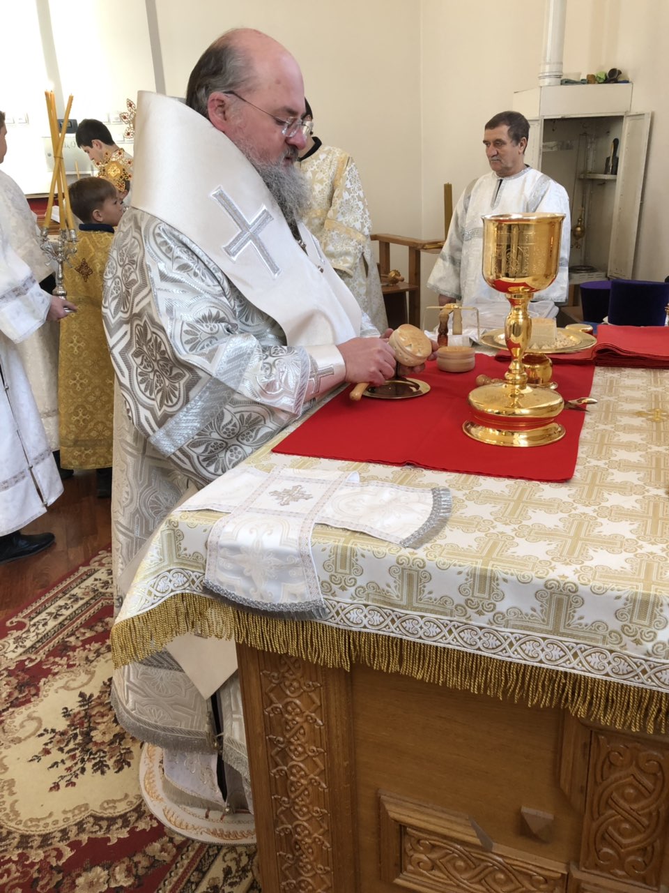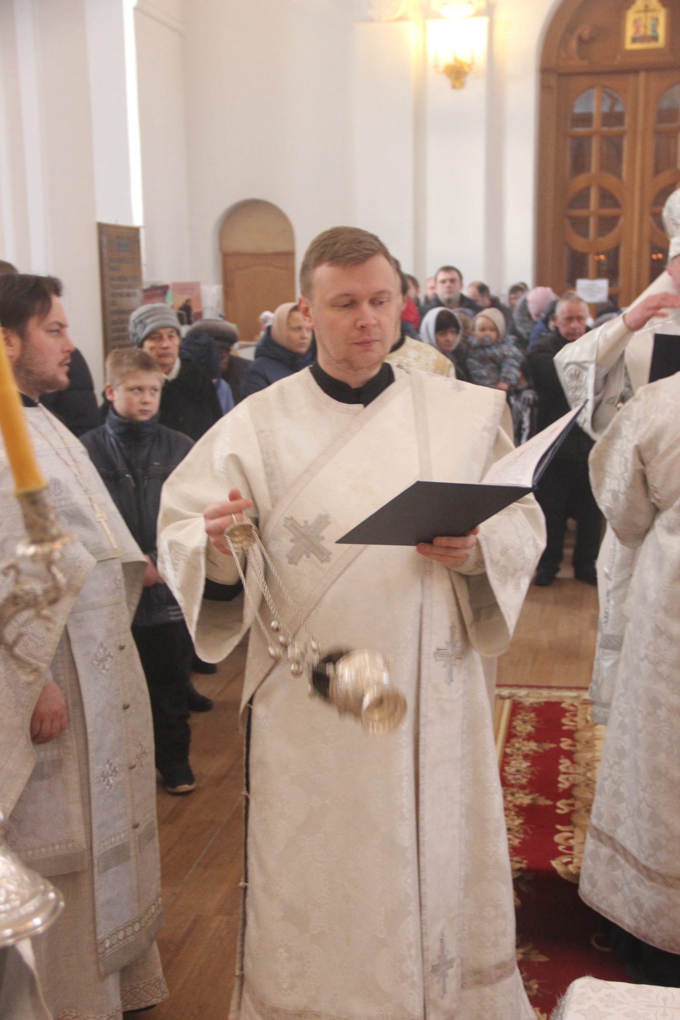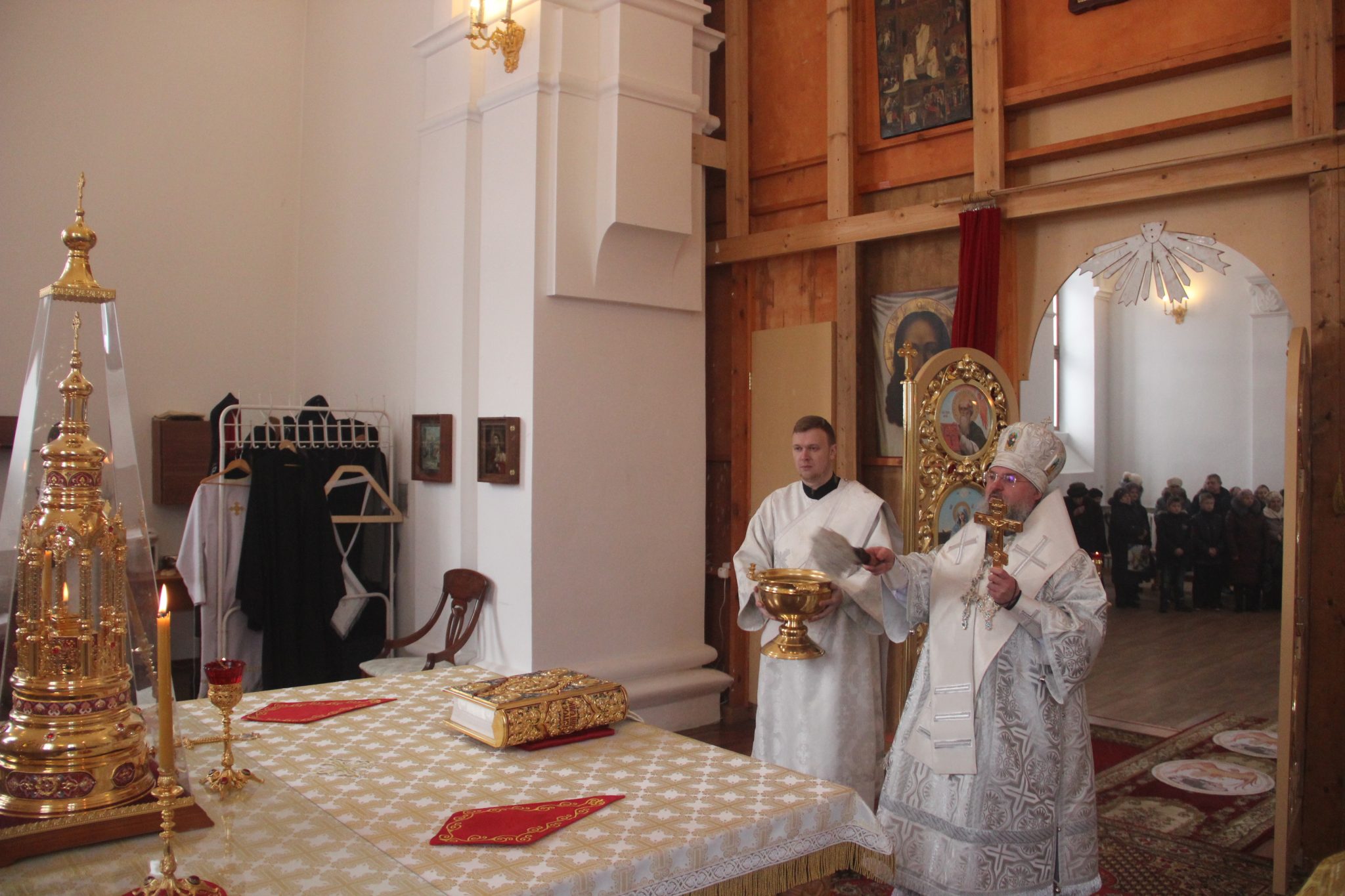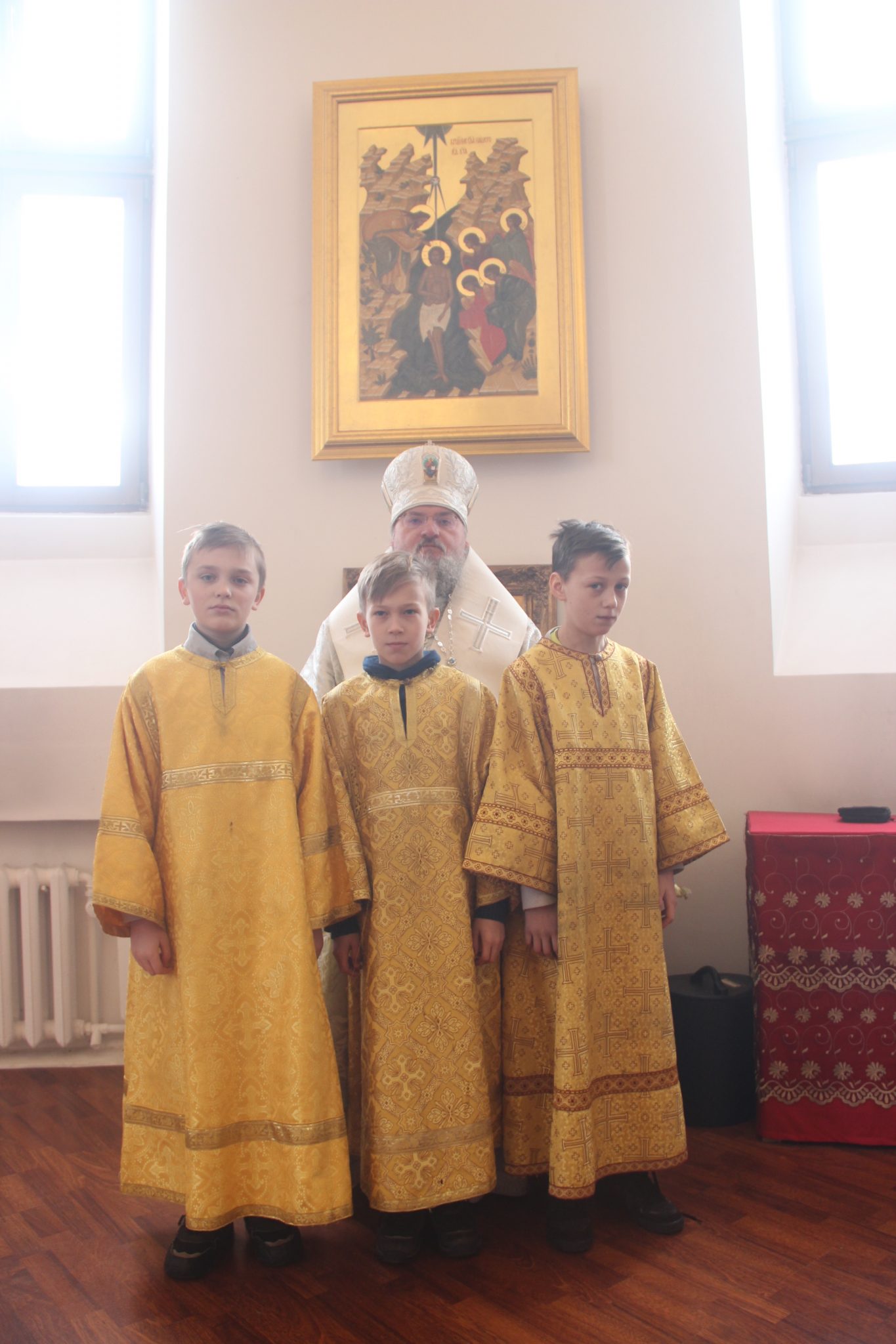 Его Преосвященству сослужили: протоиерей Антоний Хатунцев, иерей Дионисий Куваев – настоятель храма, диакон Евгений Ковригин и иеродиакон Виталий (Павленко).