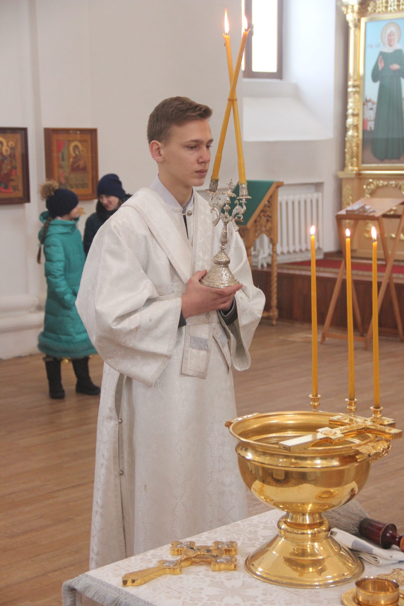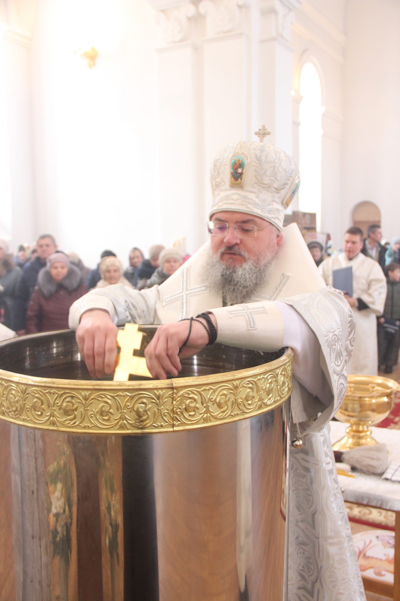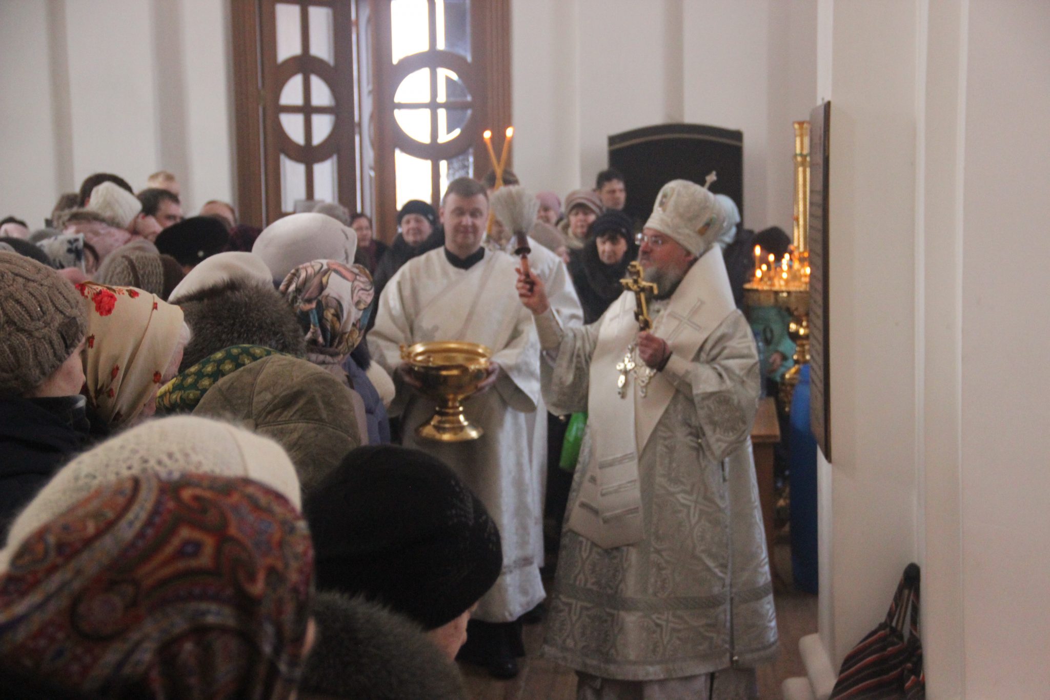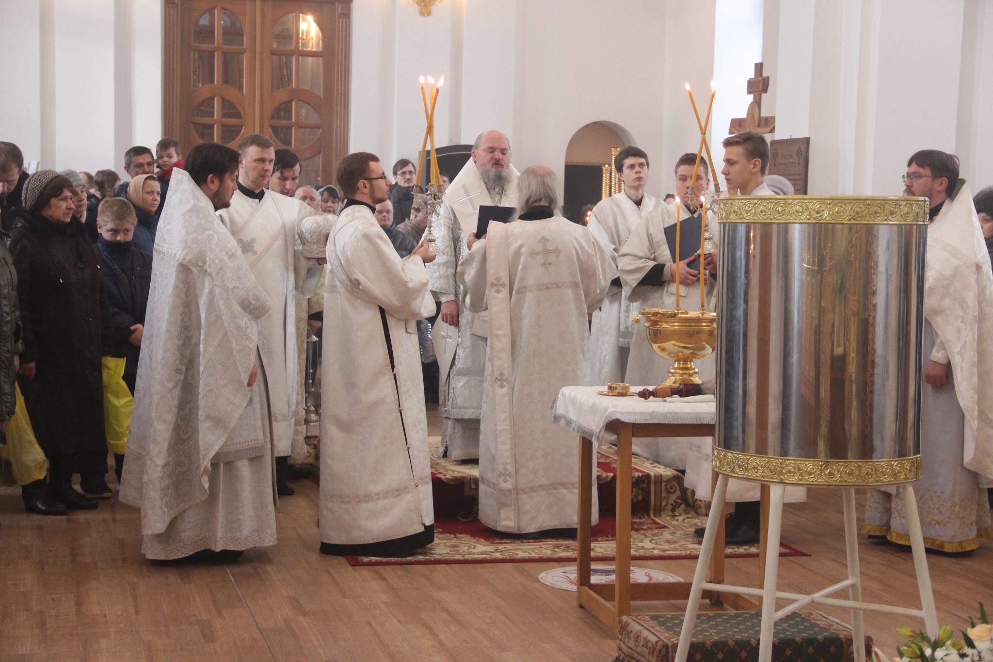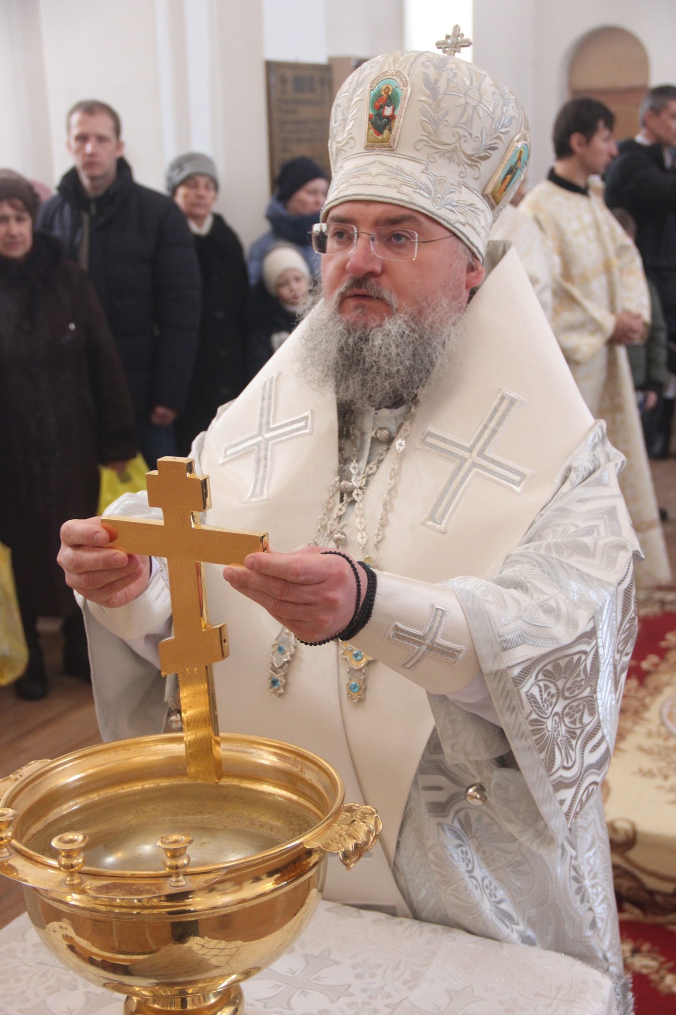 После заамвонной молитвы священнослужители совершили чинопоследование великого освящения воды, а затем владыка обратился к богомольцам с проповедью.
