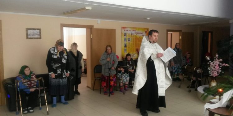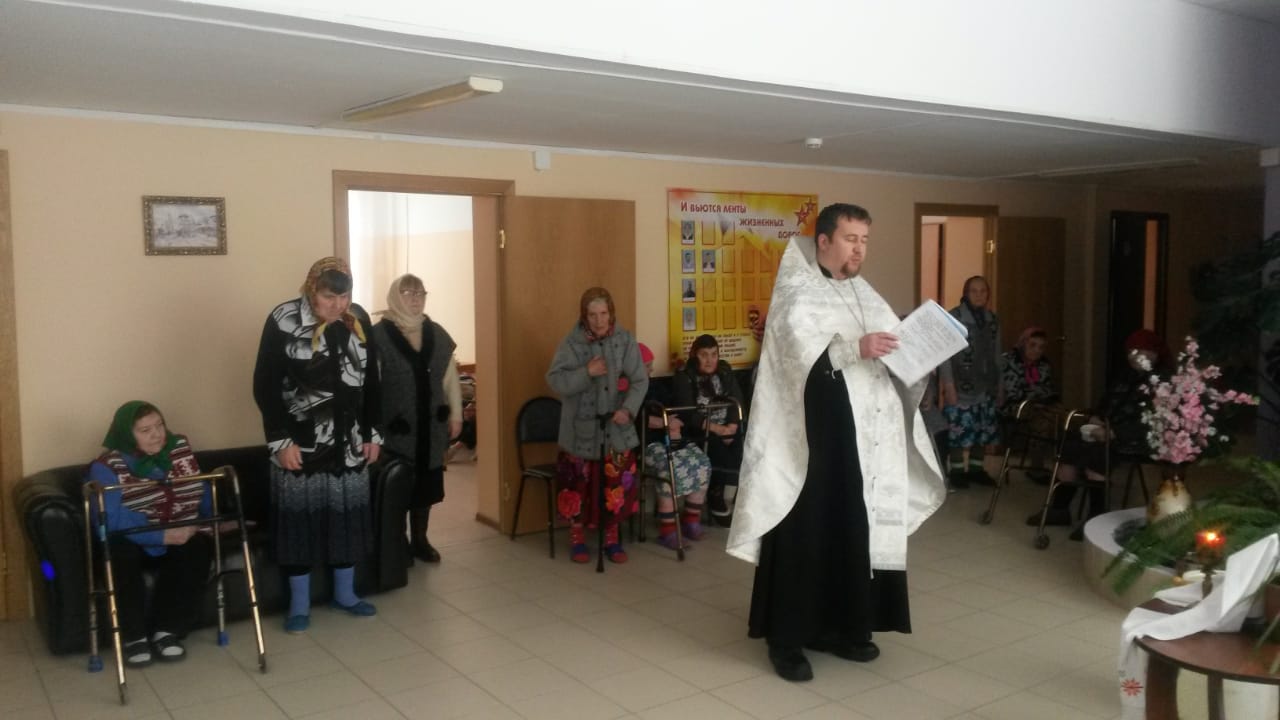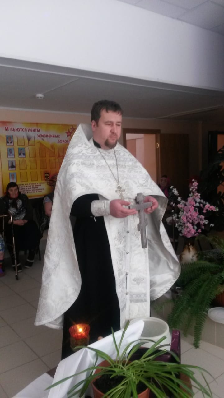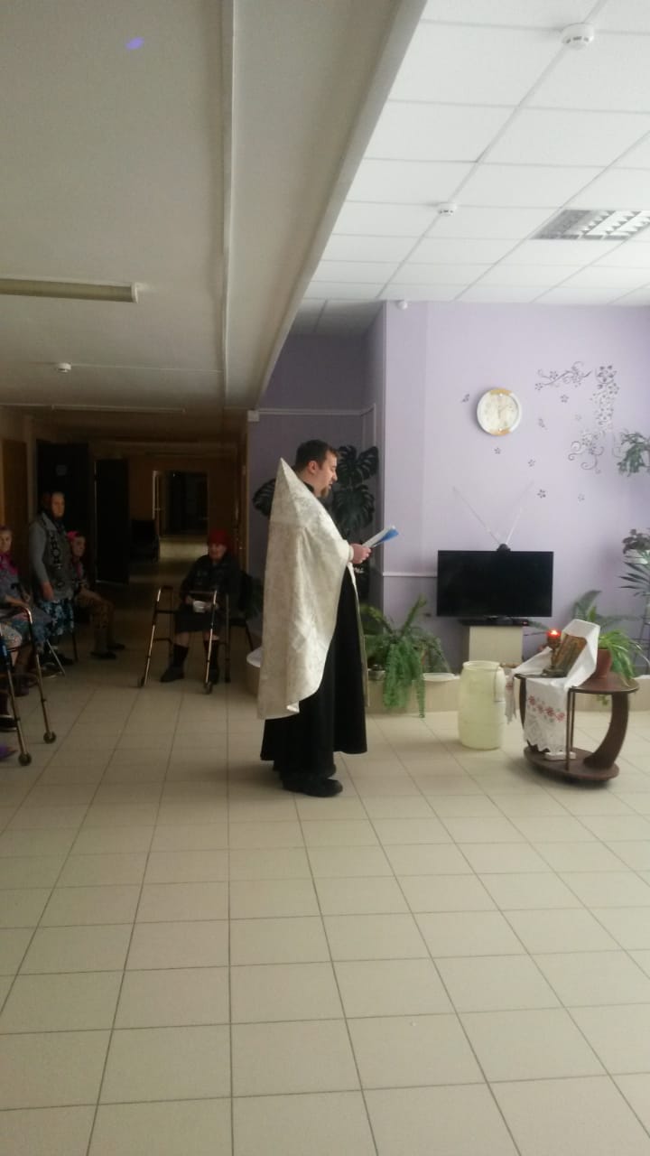 18 января в Крещенский сочельник в доме ветеранов и инвалидов «Милосердие» поселка Еленский Хвастовичского района настоятелем храма в честь Калужской иконы Божией Матери иереем Павлом Мещеряковым было совершено великое освящение воды, по окончании которого священник поздравил всех собравшихся с наступающим праздником Богоявления Господня.