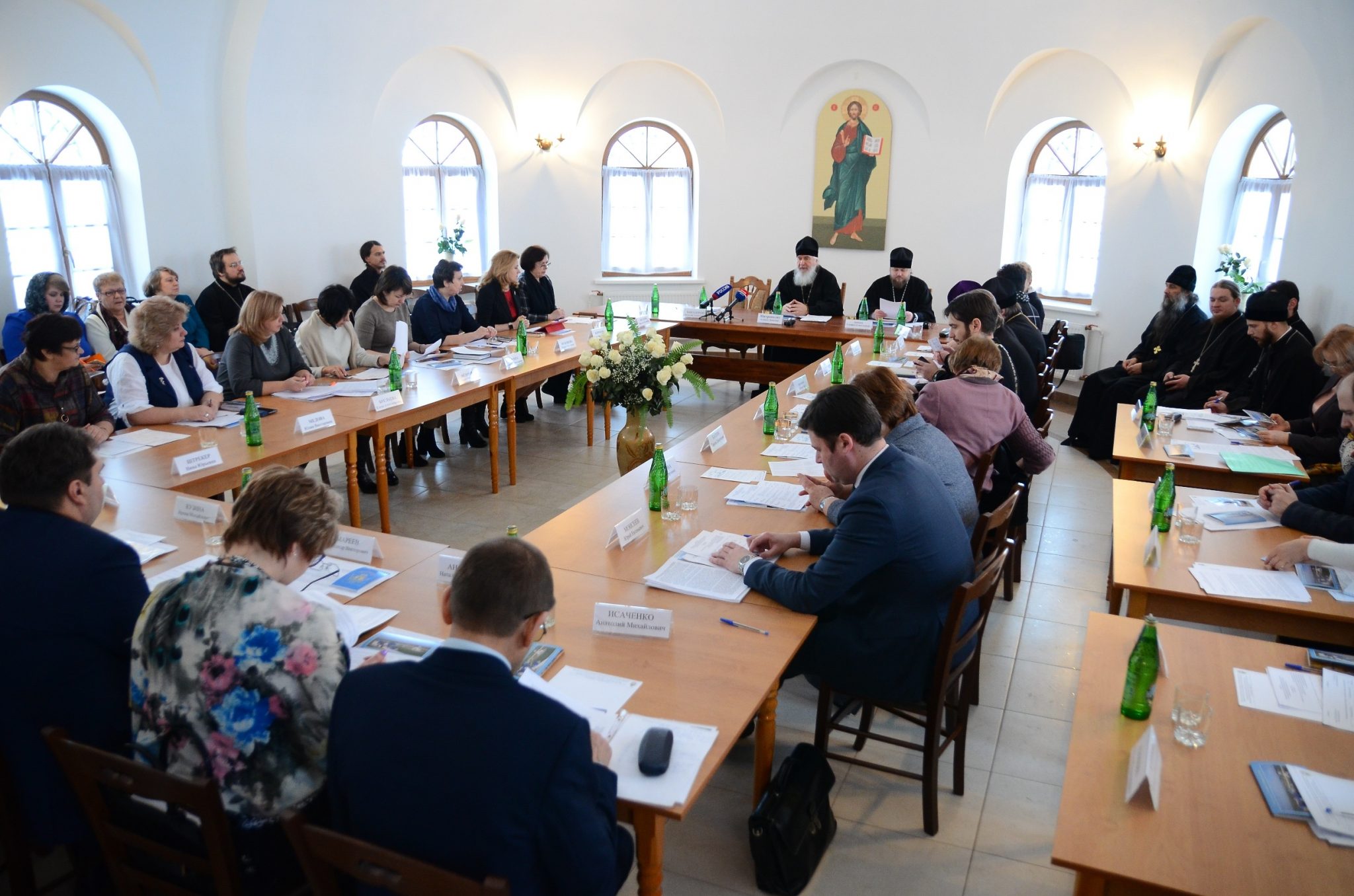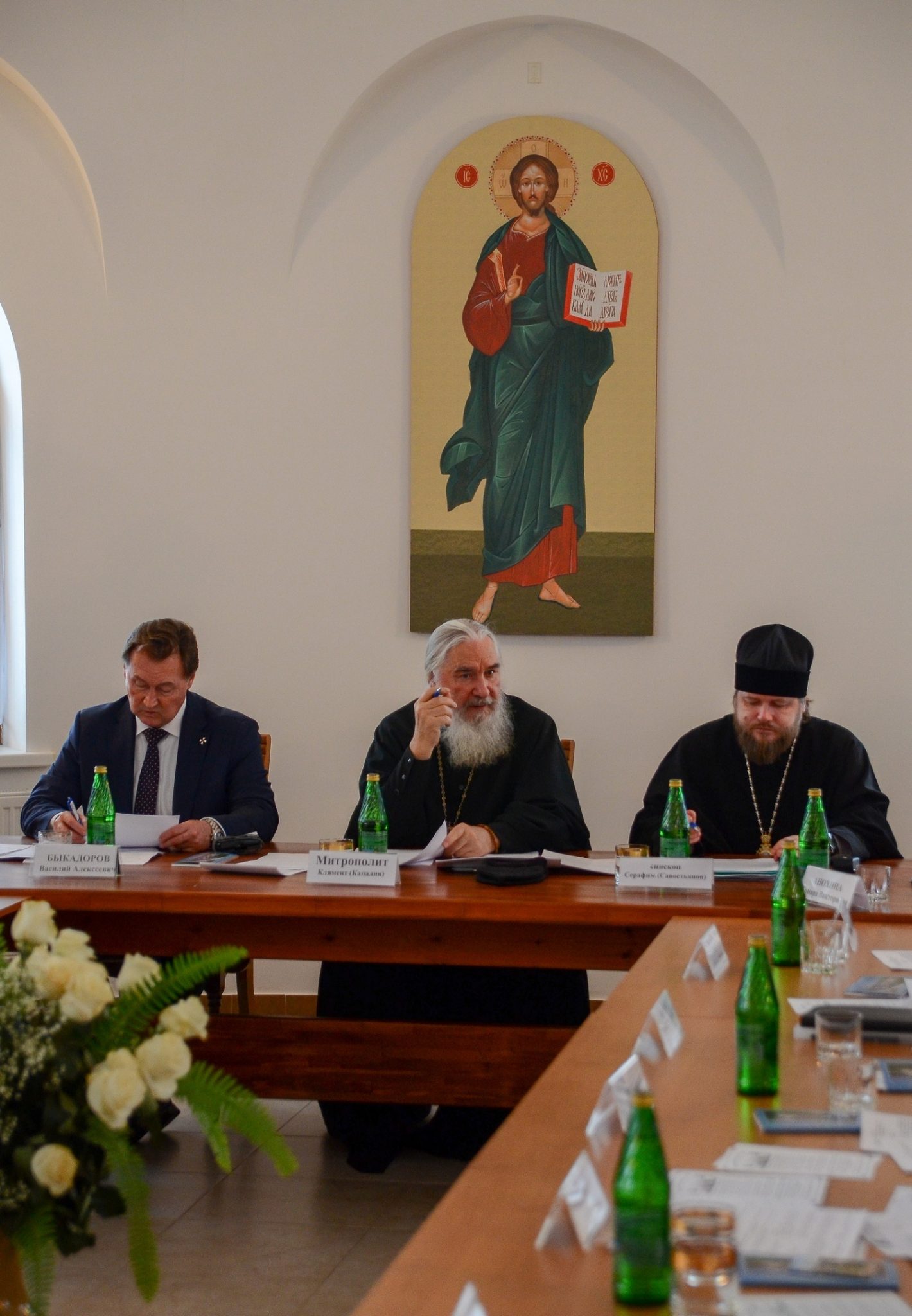 Работу заседания возглавили митрополит Калужский и Боровский Климент, заместитель губернатора Калужской области Быкадоров Василий Алексеевич и епископ Тарусский Серафим, викарий Калужской епархии.