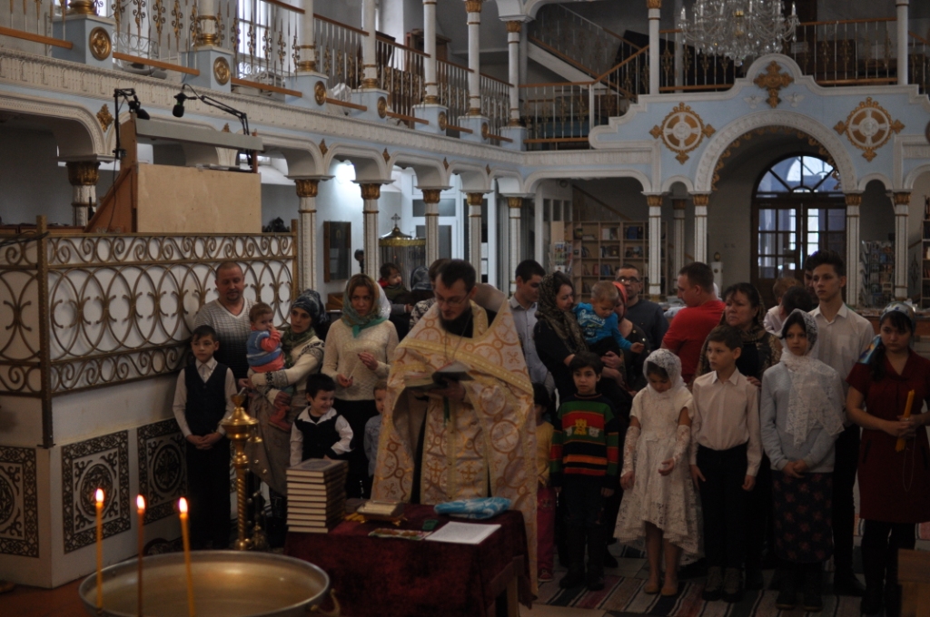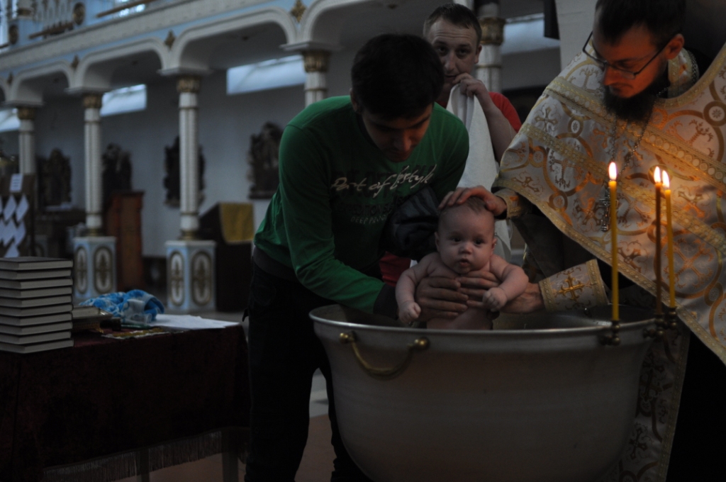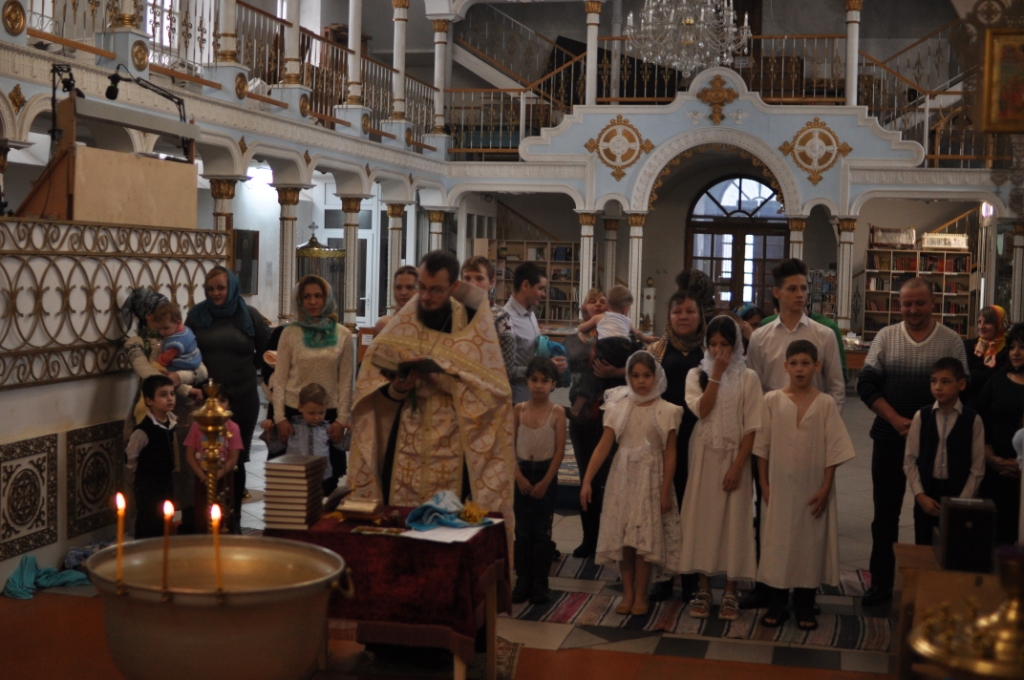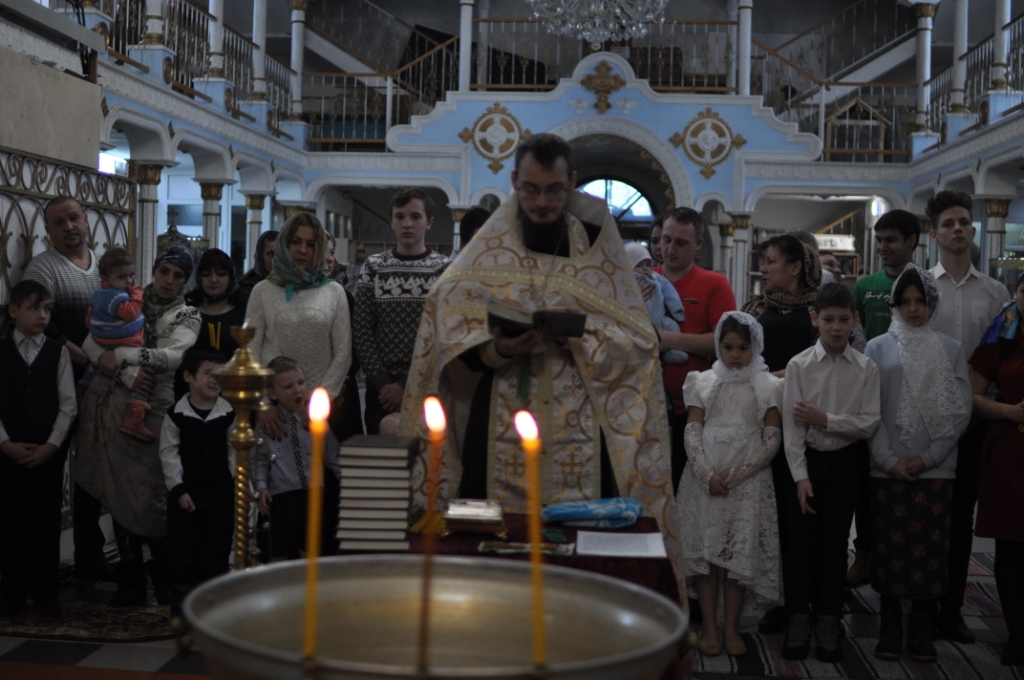 В Казанском кафедральном соборе города Людиново иереем Алексием Сначёвым совершено таинство Крещения младенцев и отроков. 17 подопечных социальной службы храма из многодетных семей приняли святое крещение.