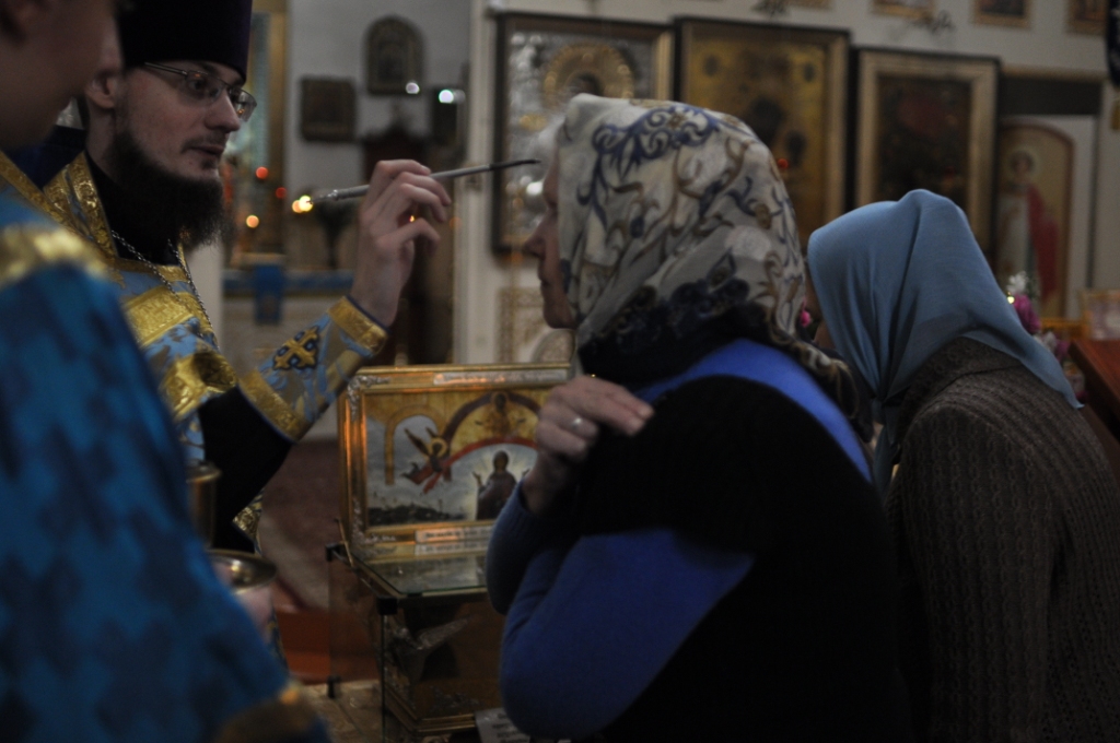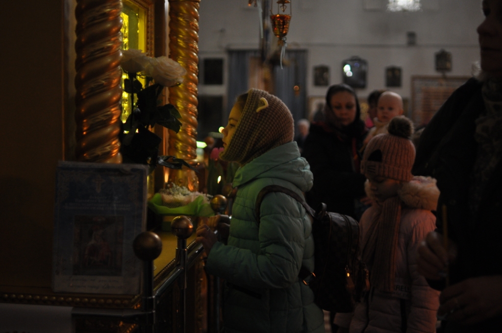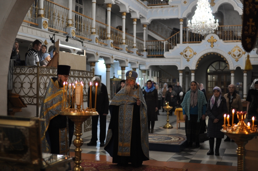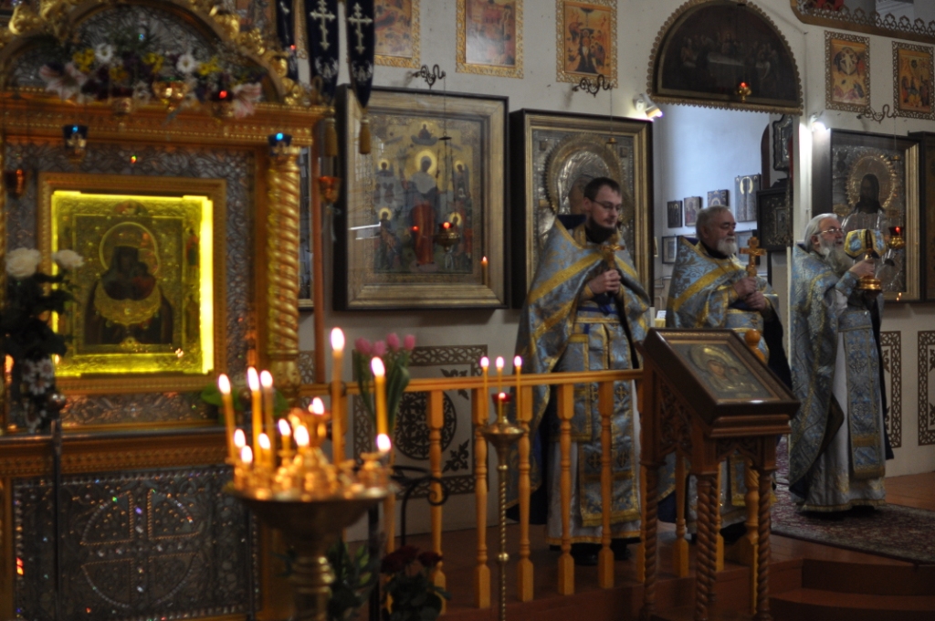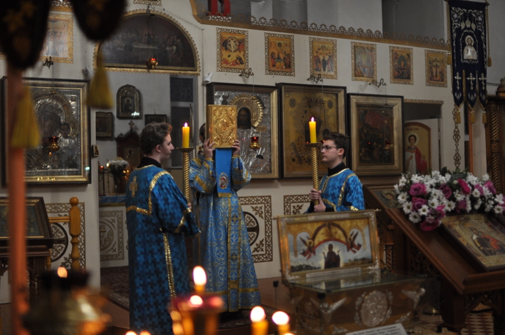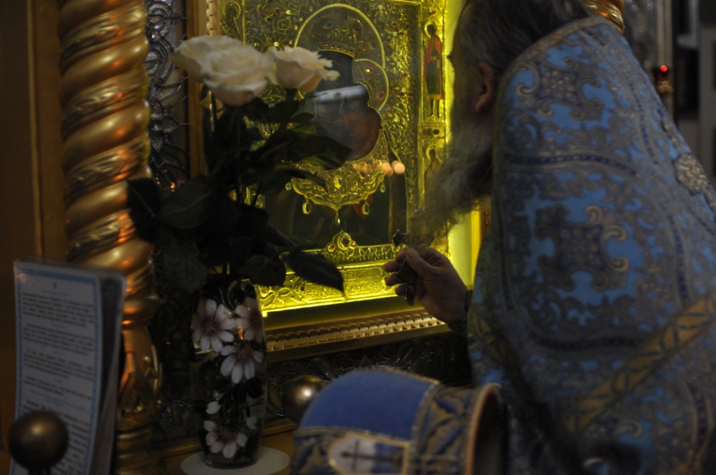 За бденной службой настоятель протоиерей Алексий Жиганов рассказал прихожанам о ещё одном старинном образе Божией Матери «Избавление от бед страждущих», который появился в соборе накануне праздника. Этот образ передал в храм епископ Великолукский и Невельский Сергий (Булатников).