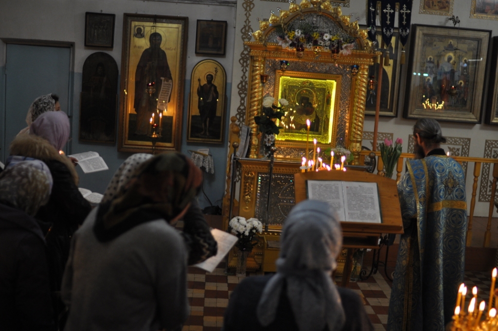 В Казанском кафедральном соборе города Людиново совершили молебен с акафистом Божией Матери перед чудотворным образом и Божественную литургию.